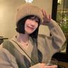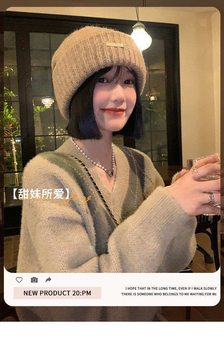 Gorro de lana para mujer, otoño e invierno, estilo coreano, combina con todo, pequeño gorro de punto con protección para las orejas, estilo rojo, para Internet, para cabeza grande y cálido.