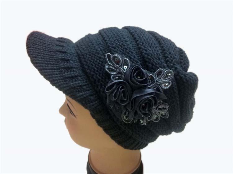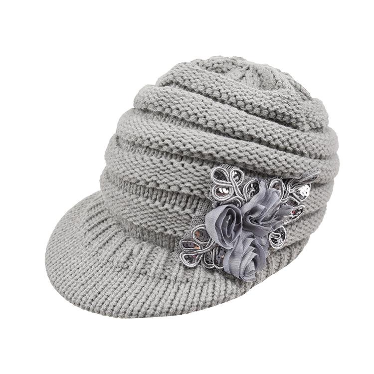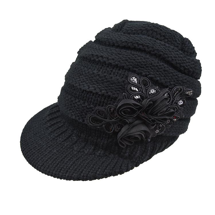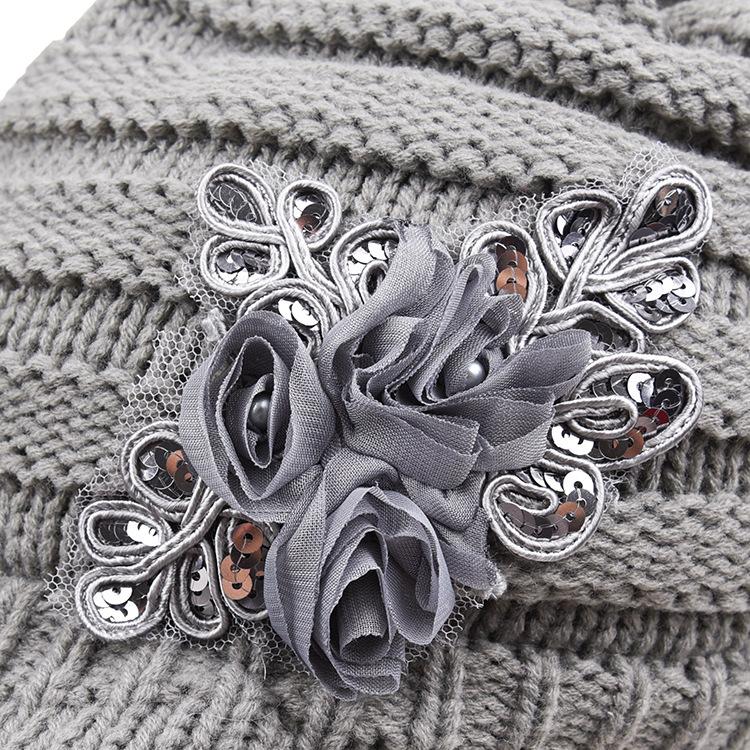 Sombreros de Otoño e Invierno para Mujer Populares de Moda Europeos y Americanos Ala Lentejuela Aplique Protección para las Orejas Boina Sombrero de Lana Tejido