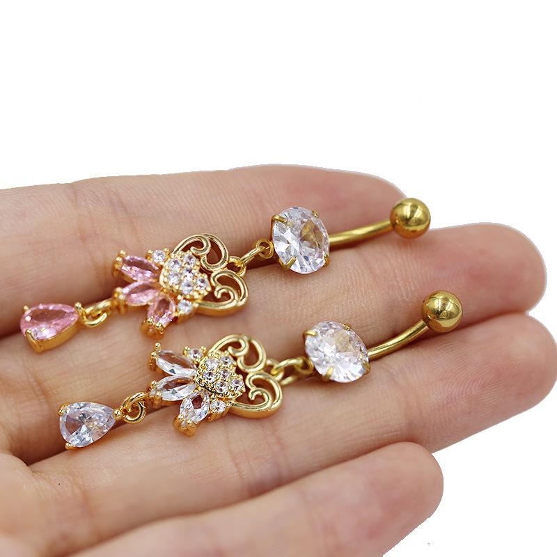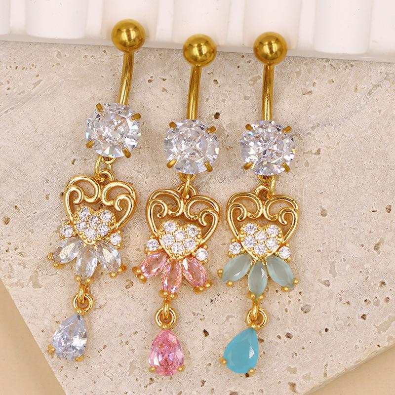 Gaibei Europa y Estados Unidos transfronterizo hueco amor ombligo botón ojo de caballo circón piercing anillo ombligo joyería