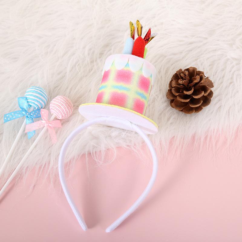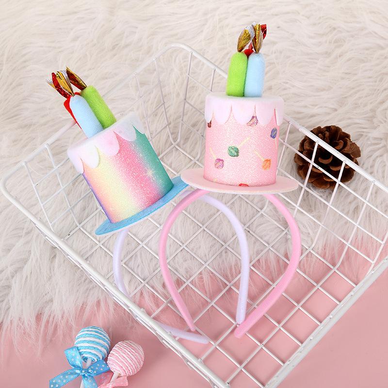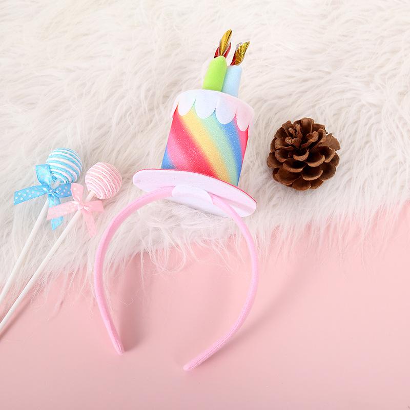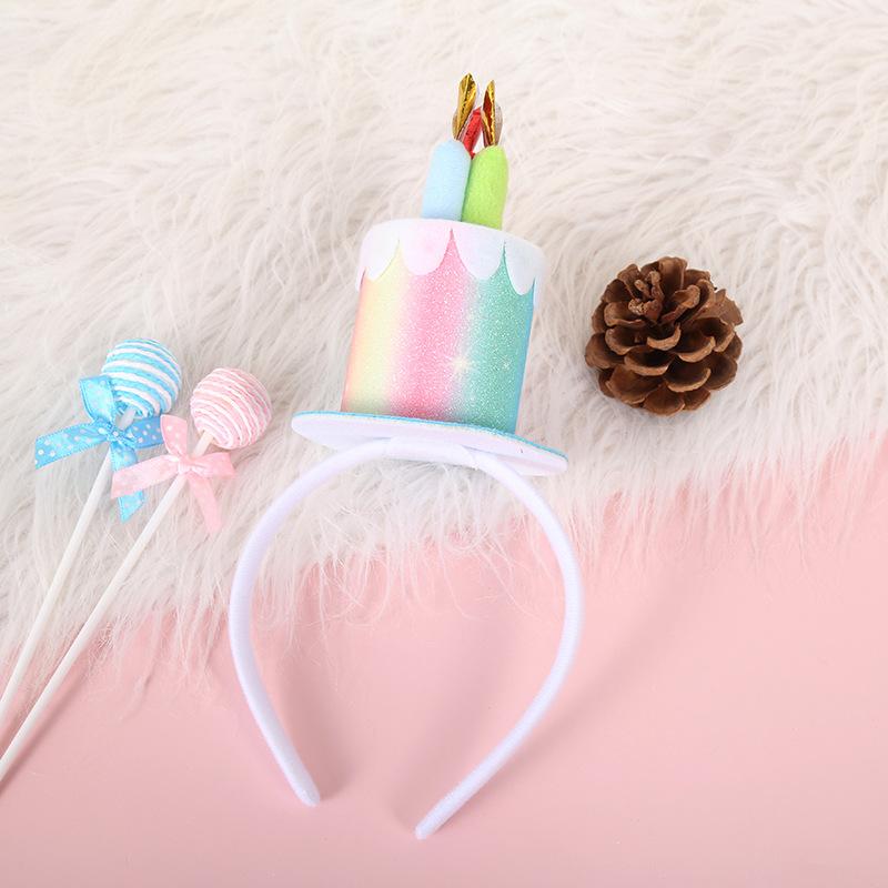 Pastel de cumpleaños de cuero brillante europeo y americano color degradado colorido diadema para el cabello de niños fiesta festiva fiesta exquisitos accesorios para el cabello
