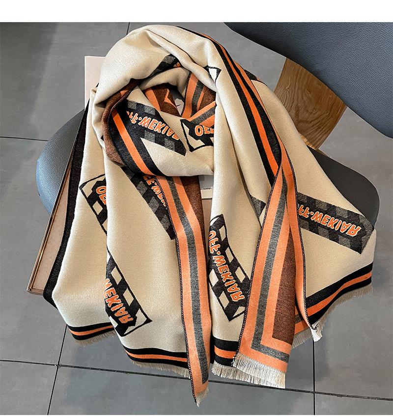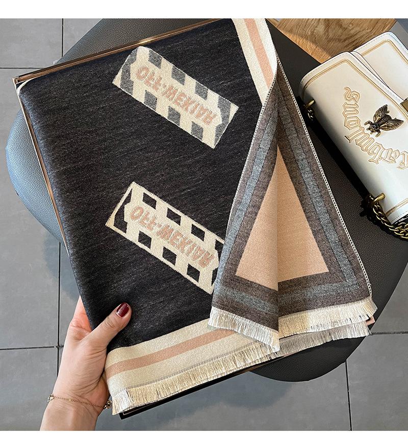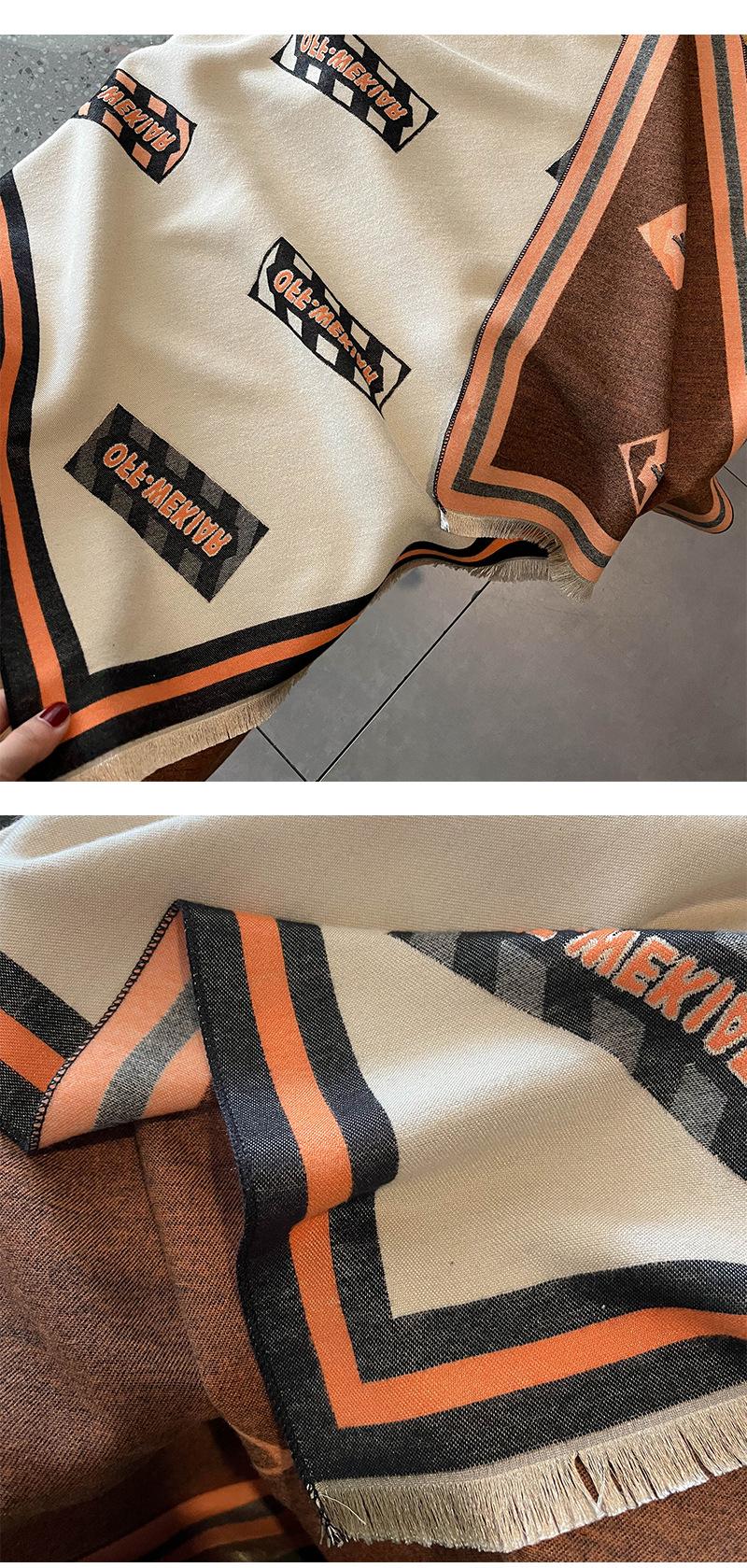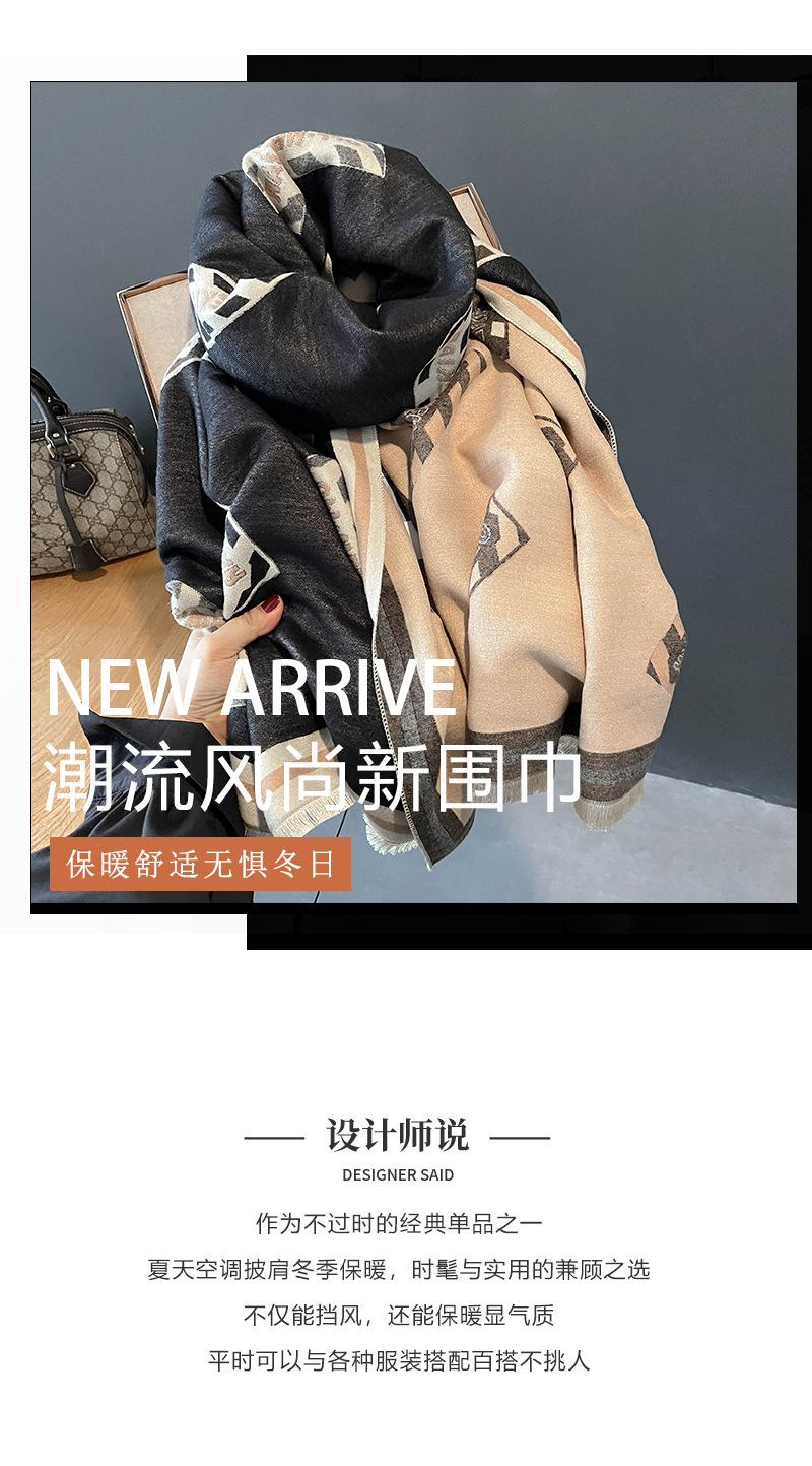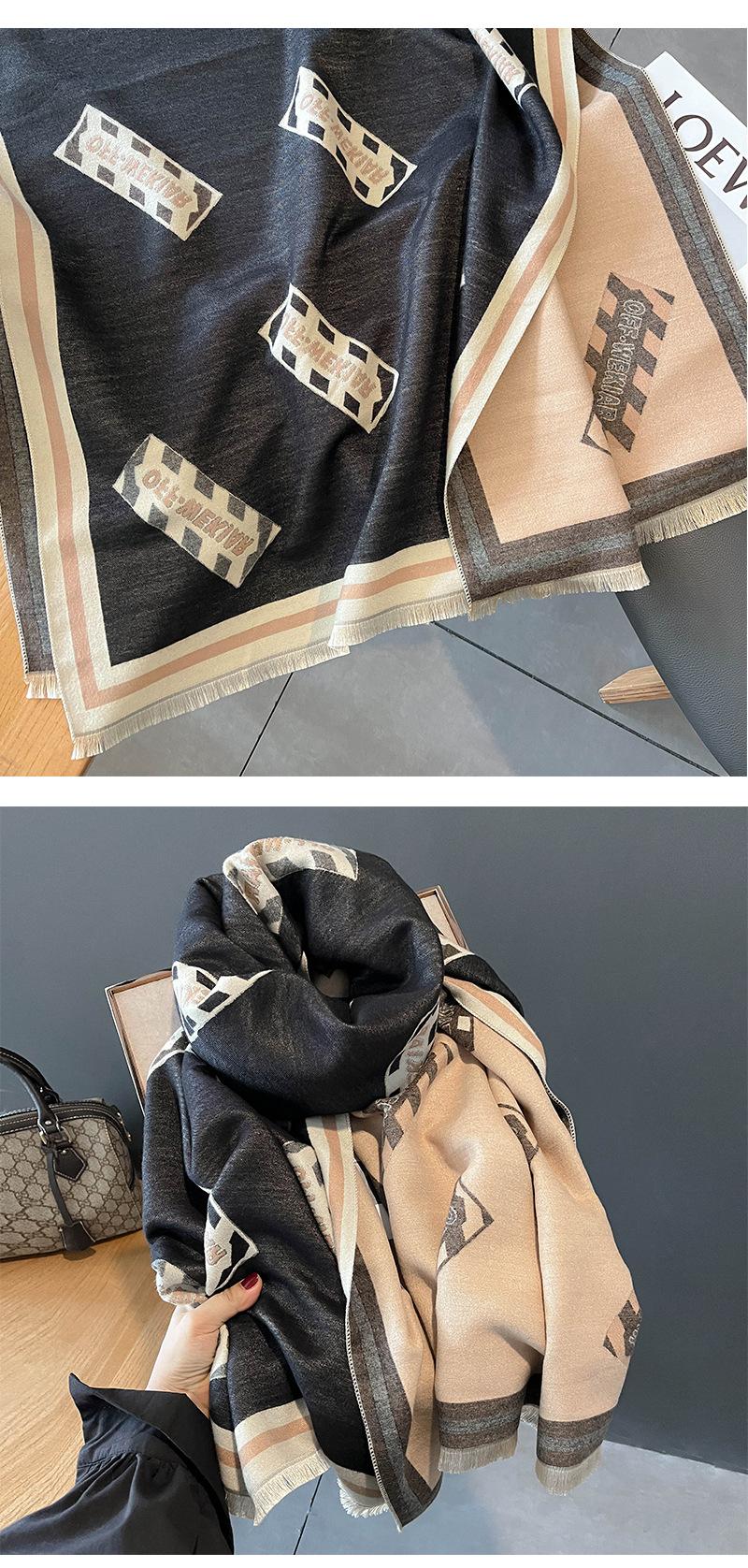 | Bufanda cálida nueva de otoño e invierno con letra H a juego de colores para mujer, chal largo grueso y cálido de doble cara de imitación de cachemira |