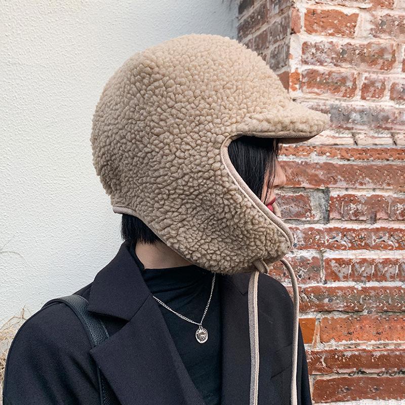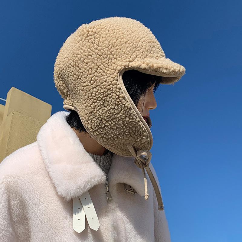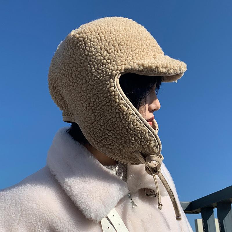 Sombrero de Mujer Japonés Invierno Cálido Grueso Lana de Cordero con Cordones Sombrero Lei Feng para Mujer a Prueba de Frío y Viento Orejeras Sombrero de Aviador