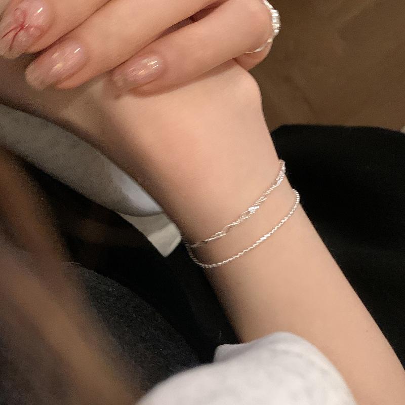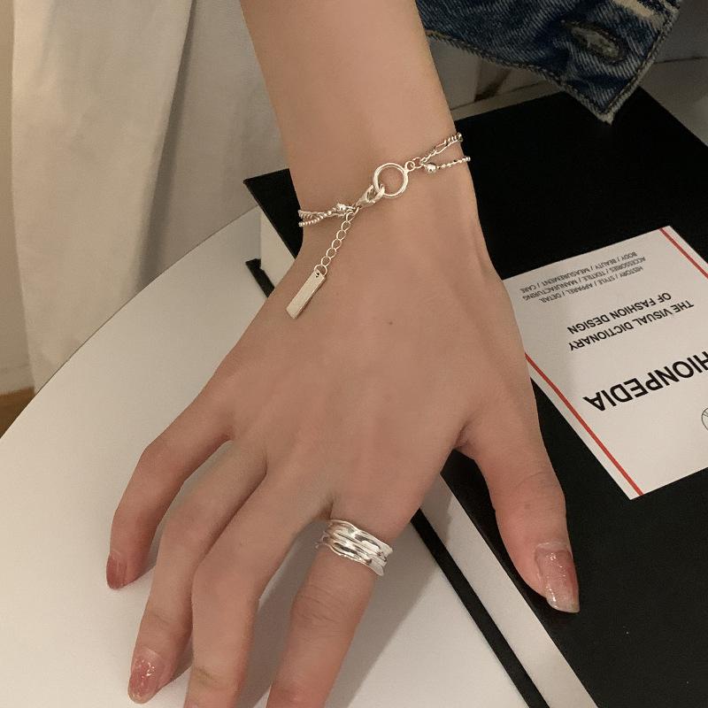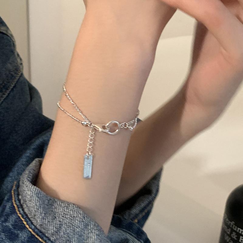 Pulsera de Anillos Cuadrados Coreanos de Doble Capa para Mujer, Moda Personalizada de Lujo Ligero Nicho Diseño Exquisita Pulsera 2024 Nuevo