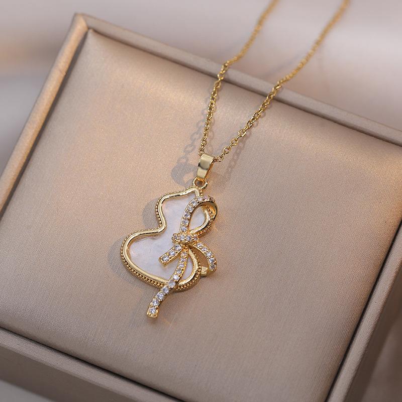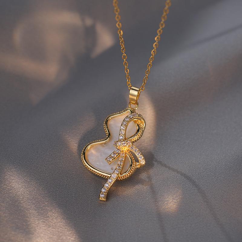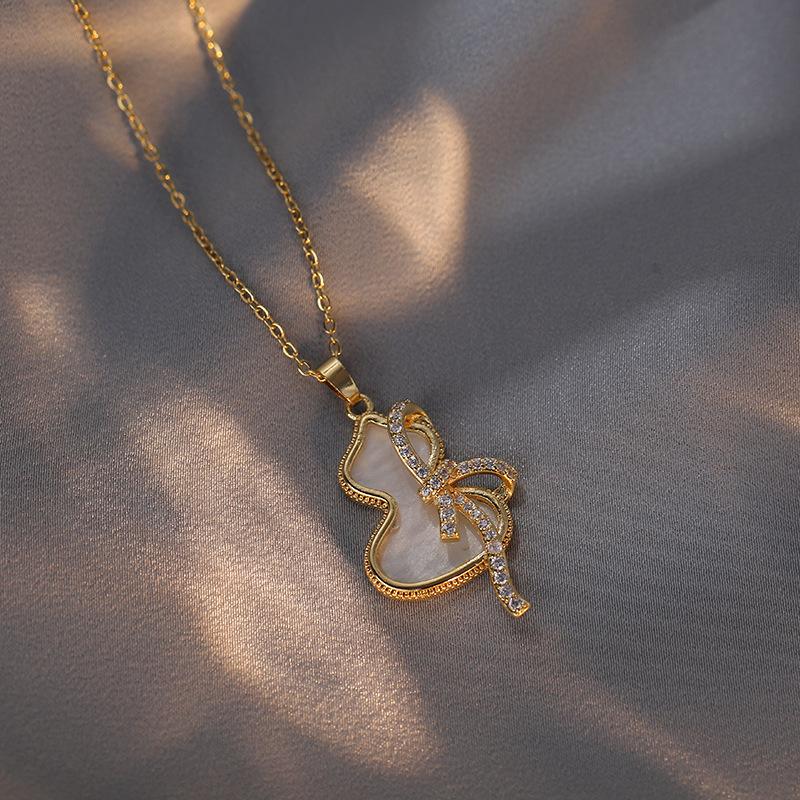 X1733 Zircon Gourd Bow Necklace {Pendant Together}