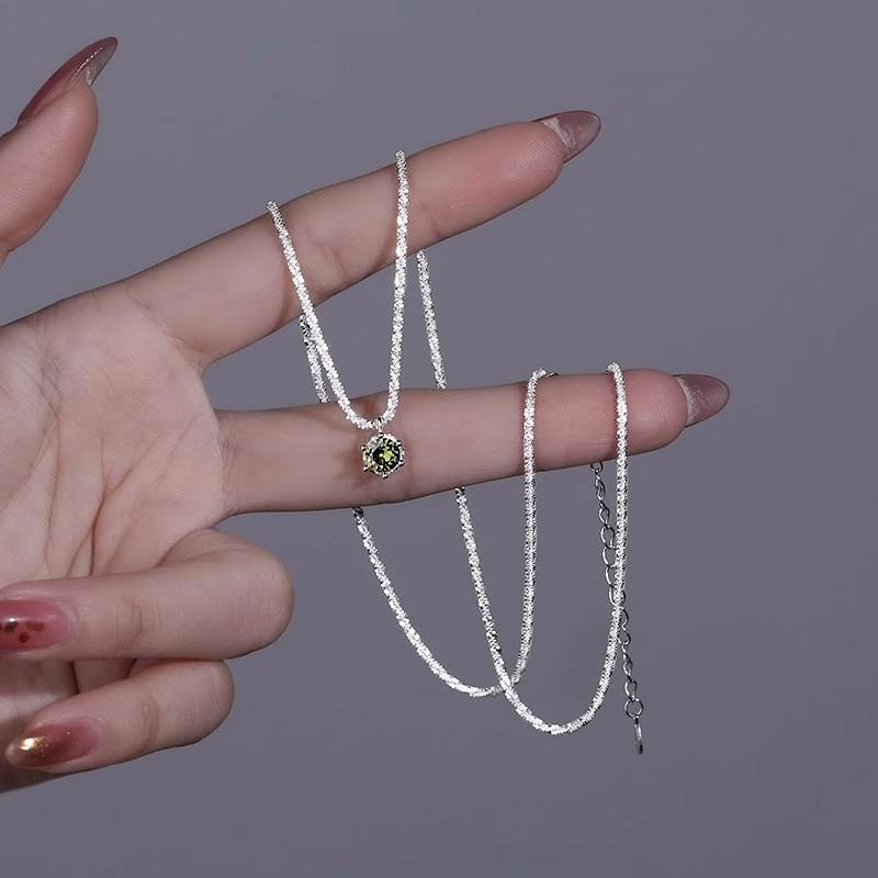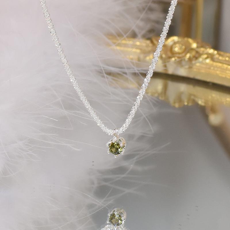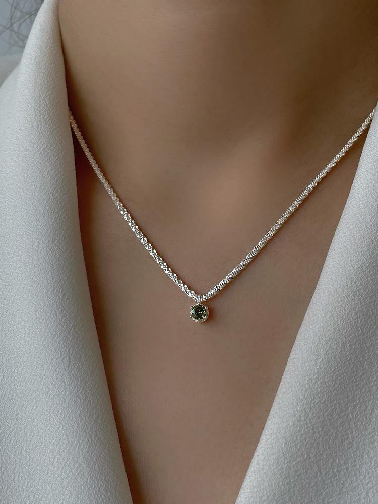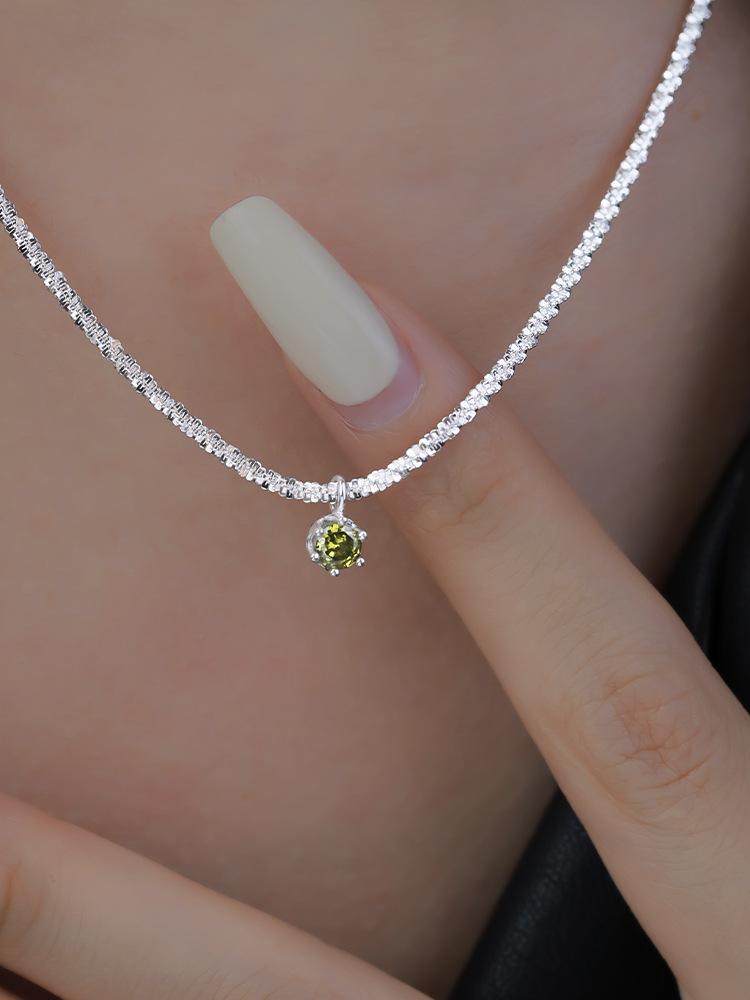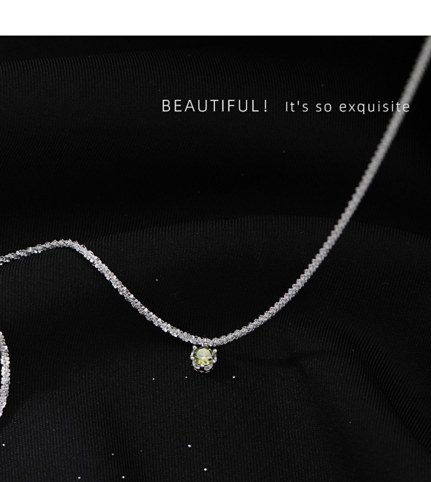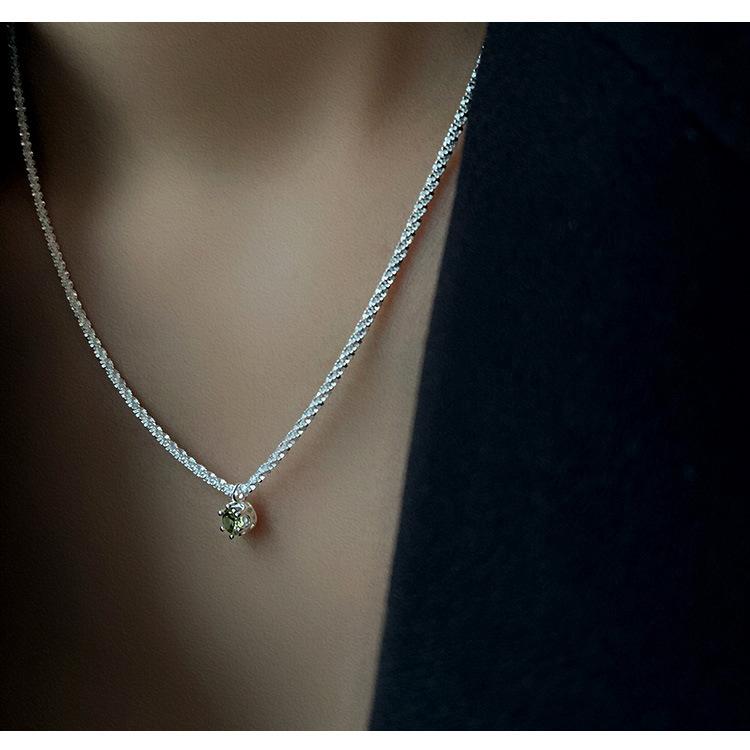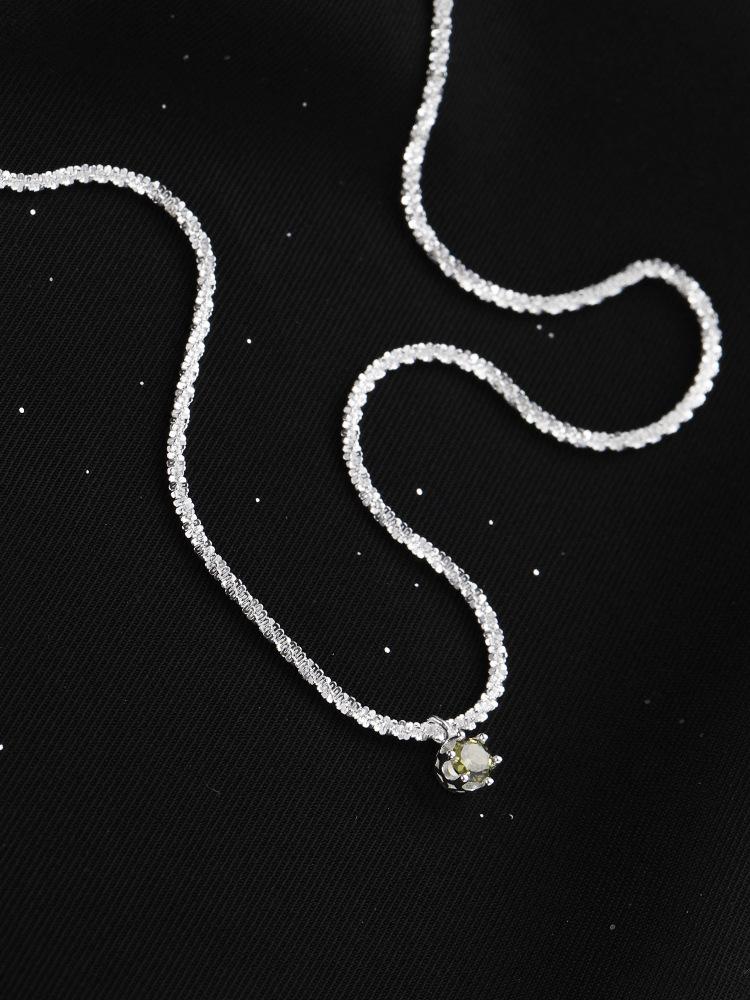 Starry olive green necklace-Silver