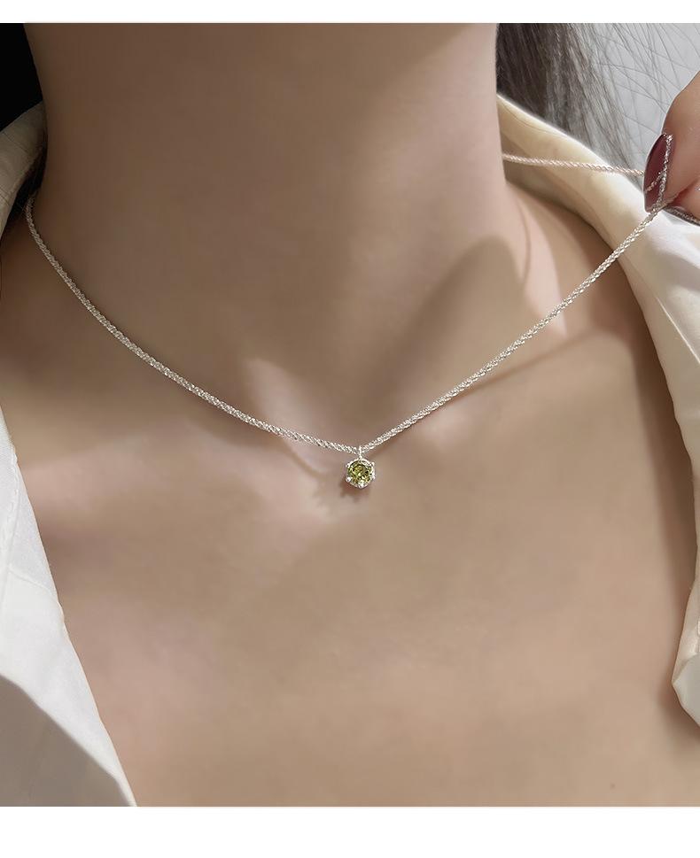 Collar de plata de ley 925 con forma de estrella y diamantes verdes para mujer, con un dulce nicho y brillantes circonitas verde oliva.