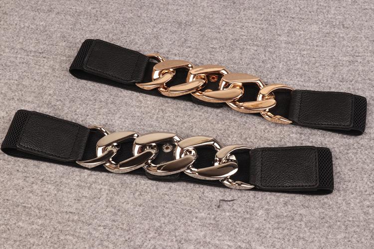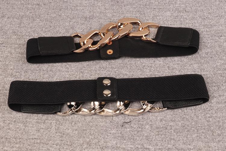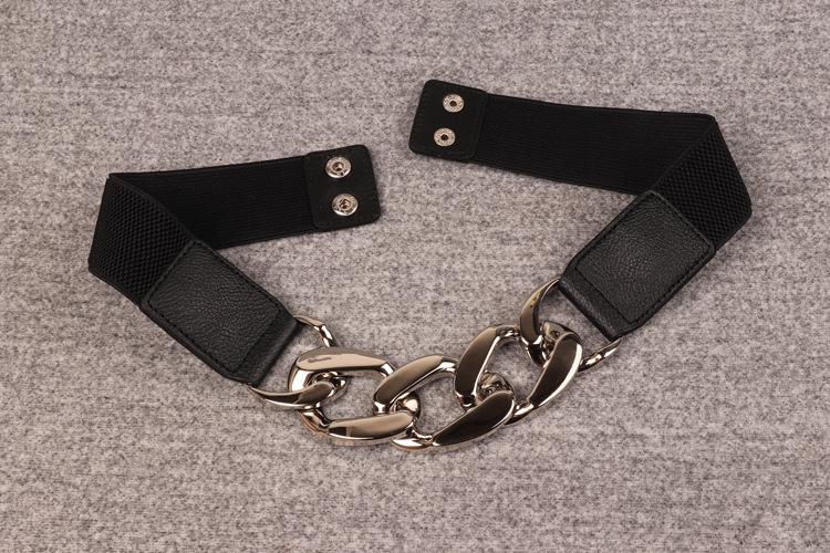 Cinturón ancho elástico para mujer, vestido de verano, traje decorativo, cinturón negro, cadena, accesorios de moda