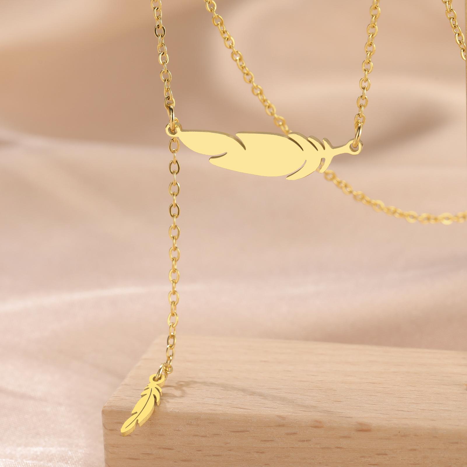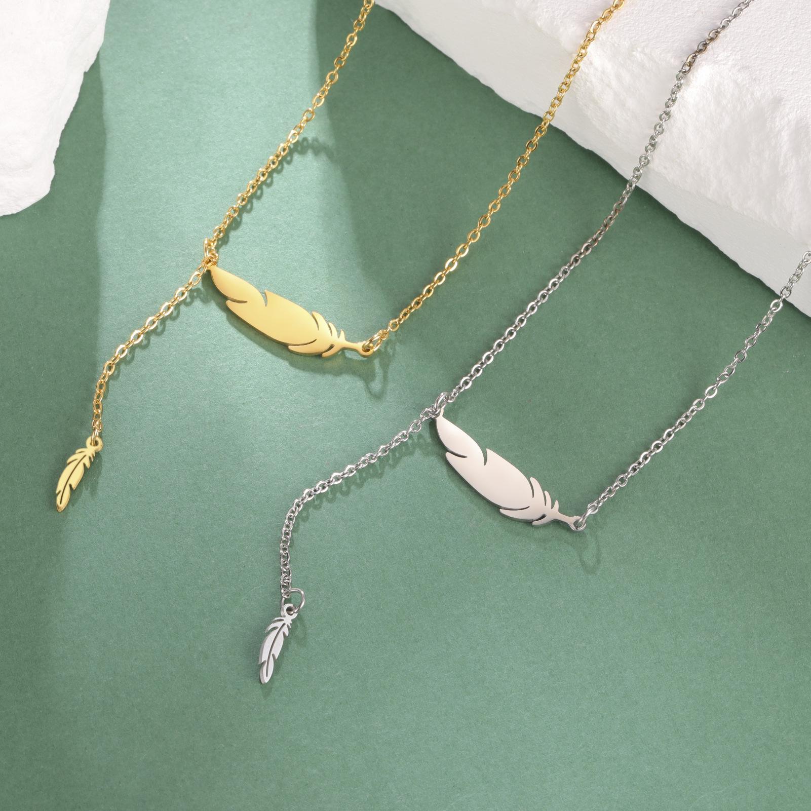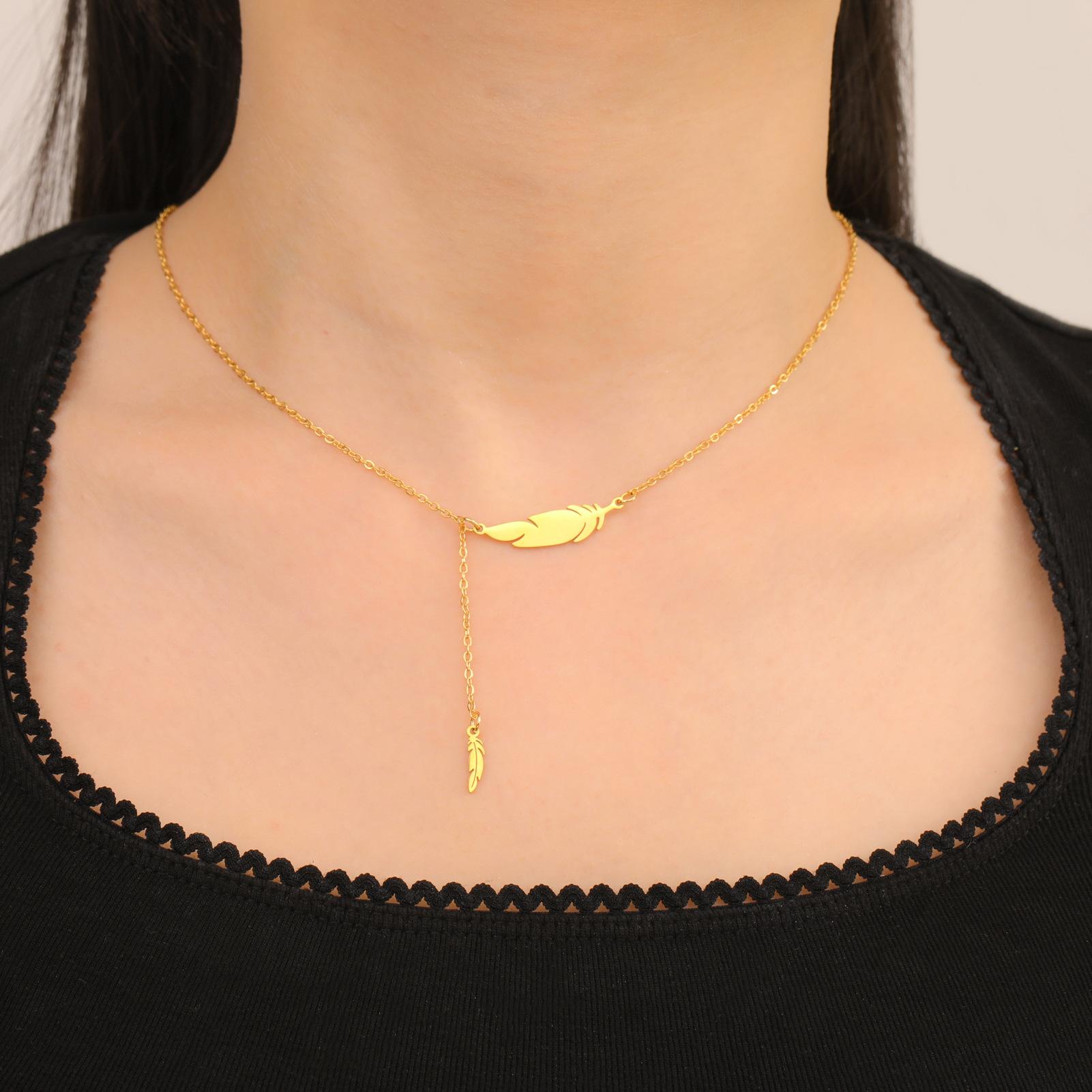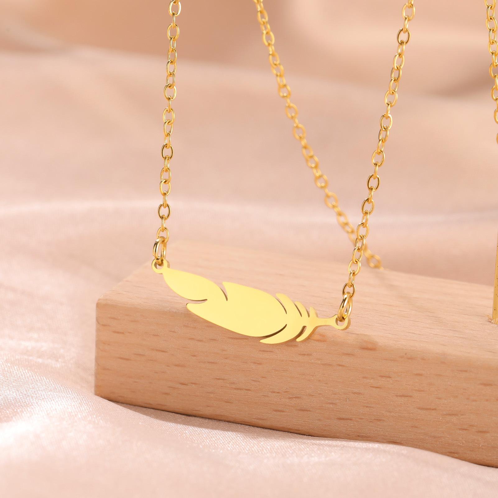 Collar con colgante de plumas para mujer, acero inoxidable 304, oro auténtico de 18 quilates, joyería de moda, regalo de cumpleaños, venta al por mayor