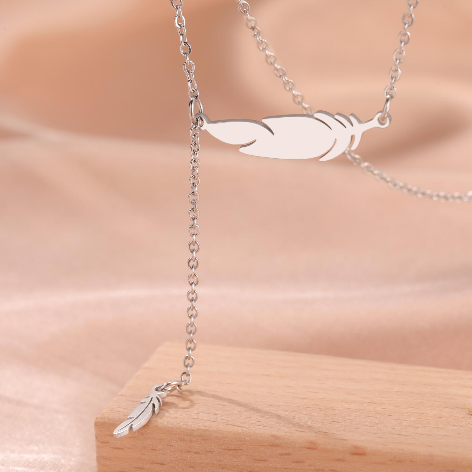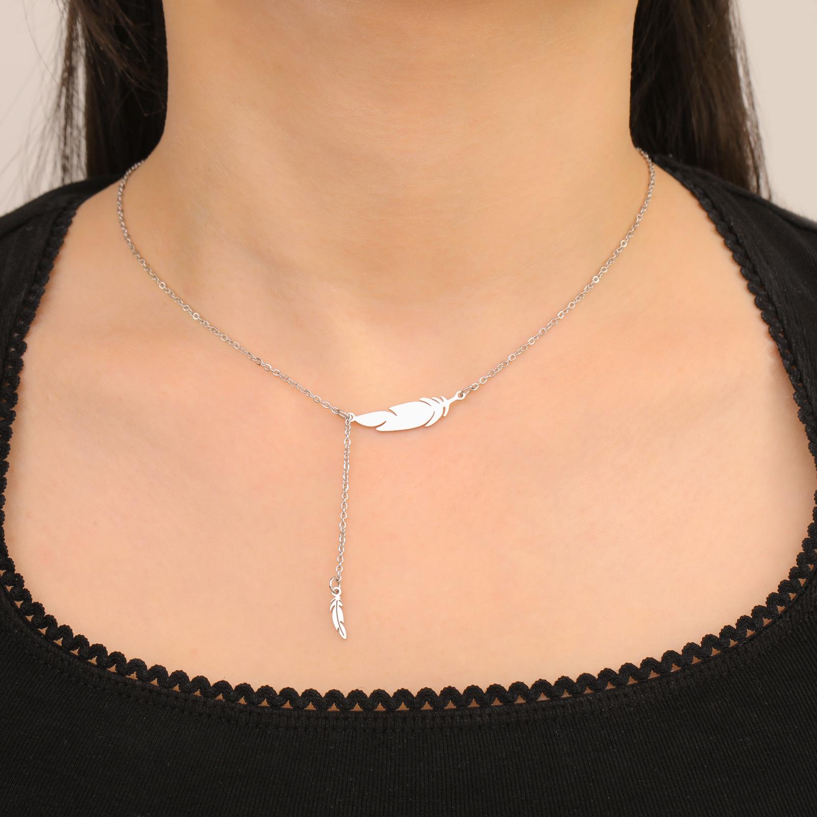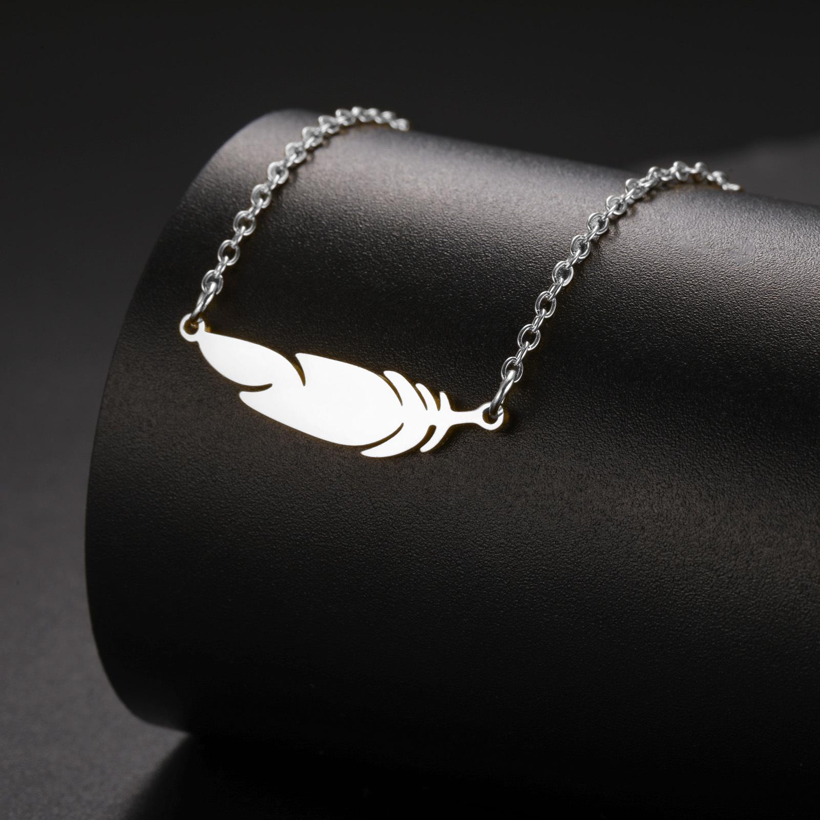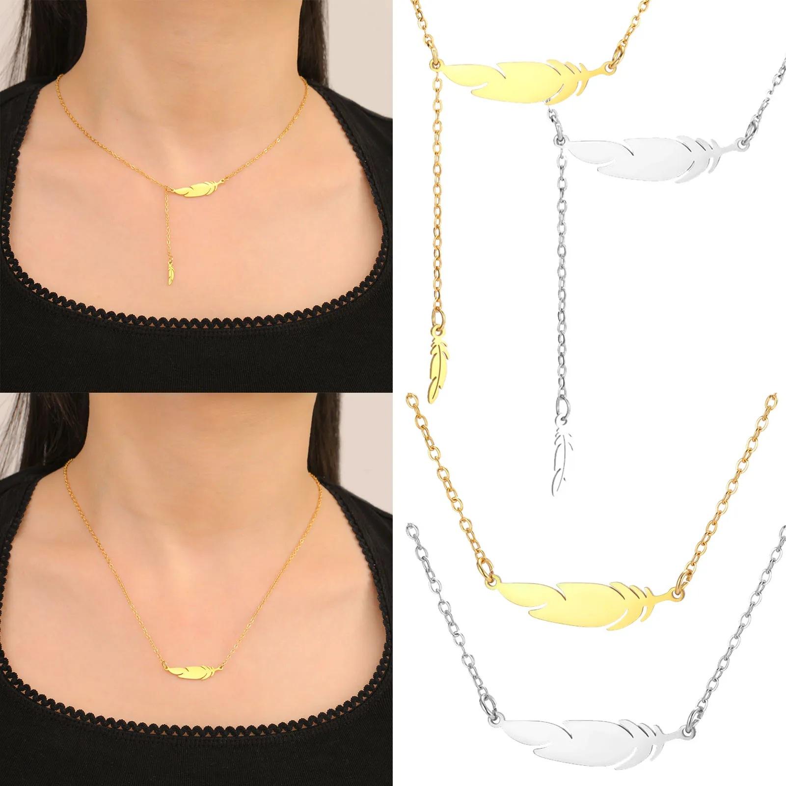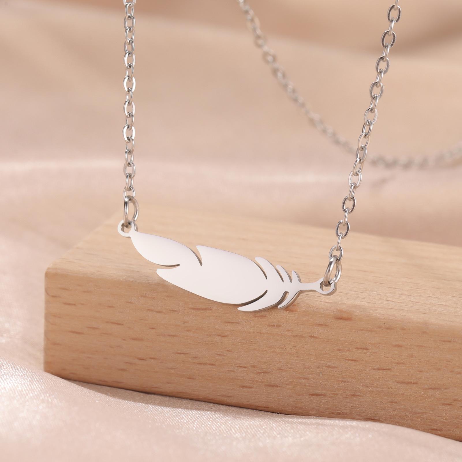 Collar con colgante de plumas para mujer, acero inoxidable 304, oro auténtico de 18 quilates, joyería de moda, regalo de cumpleaños, venta al por mayor