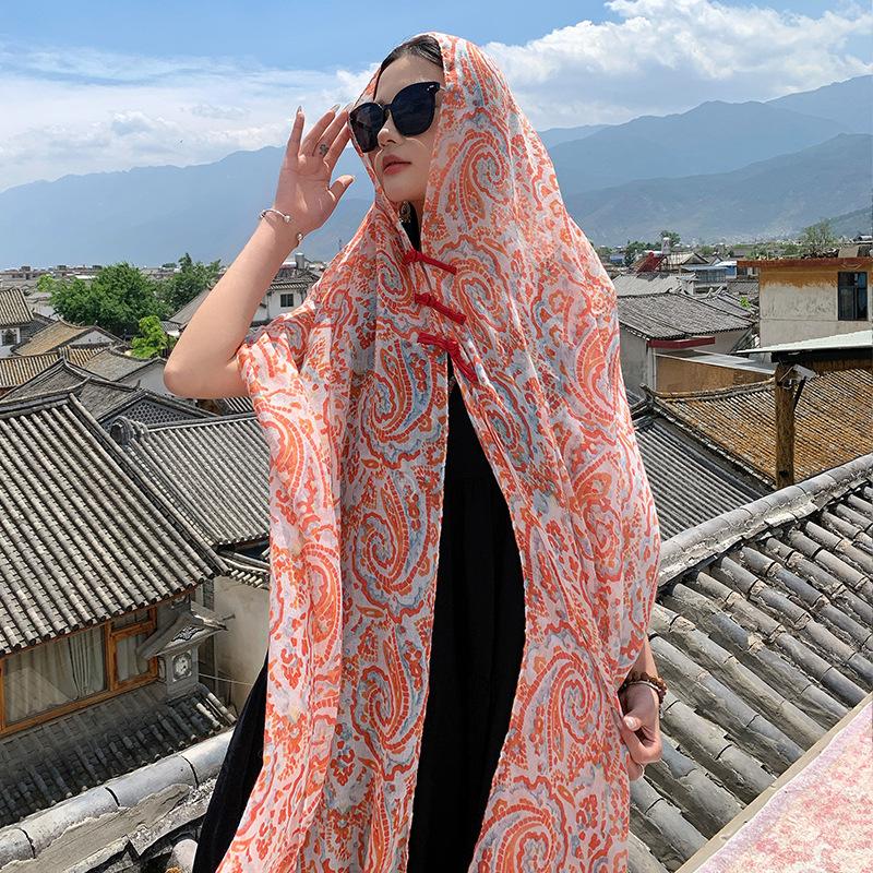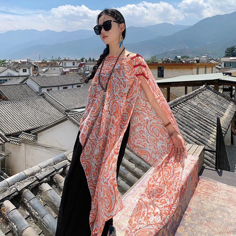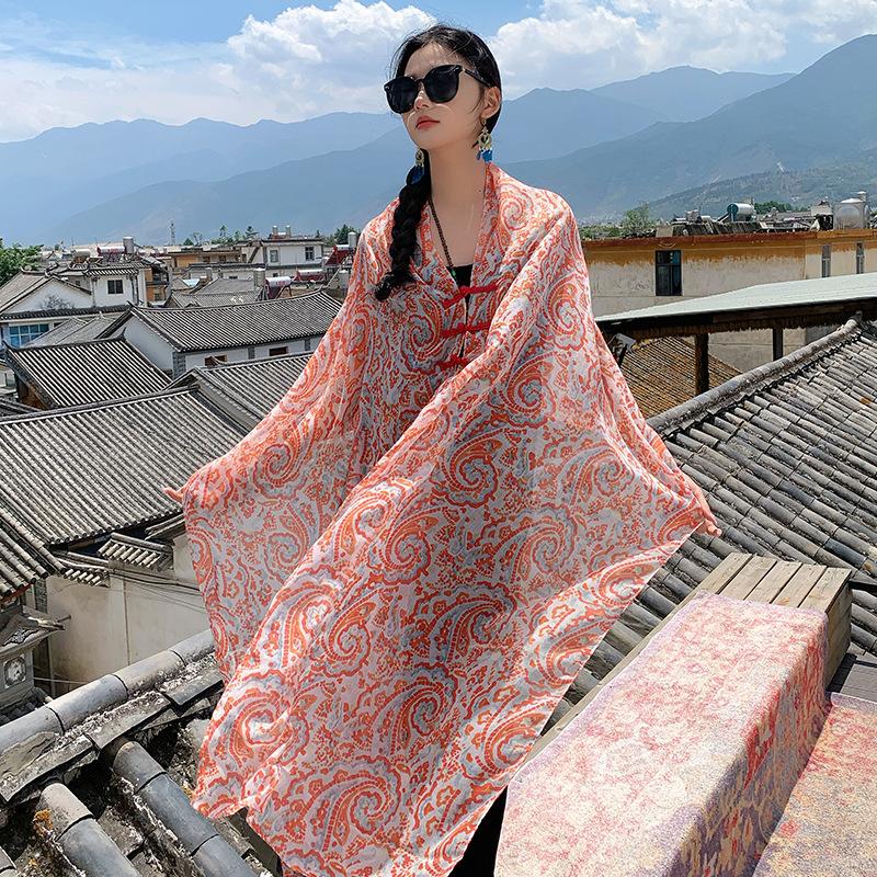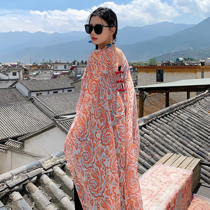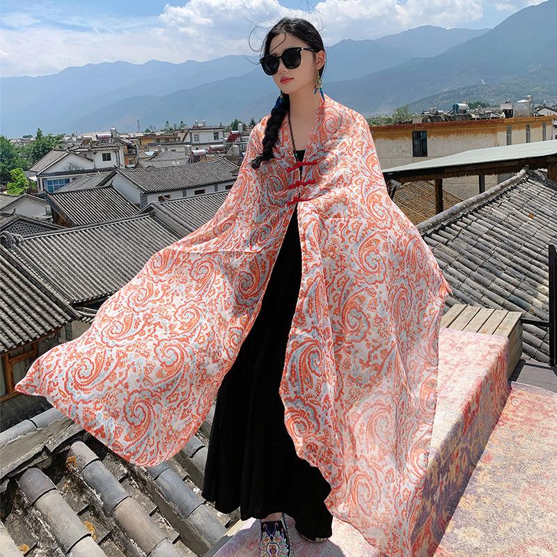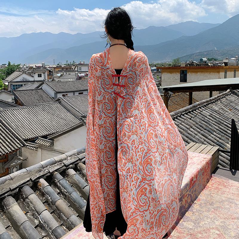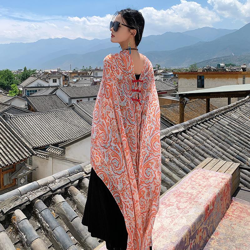Play Casual Versátil Chal Hebilla Distintiva Vintage Étnico Patrón Espiral Capa Exterior Pulóver Transpirable Chal Grande