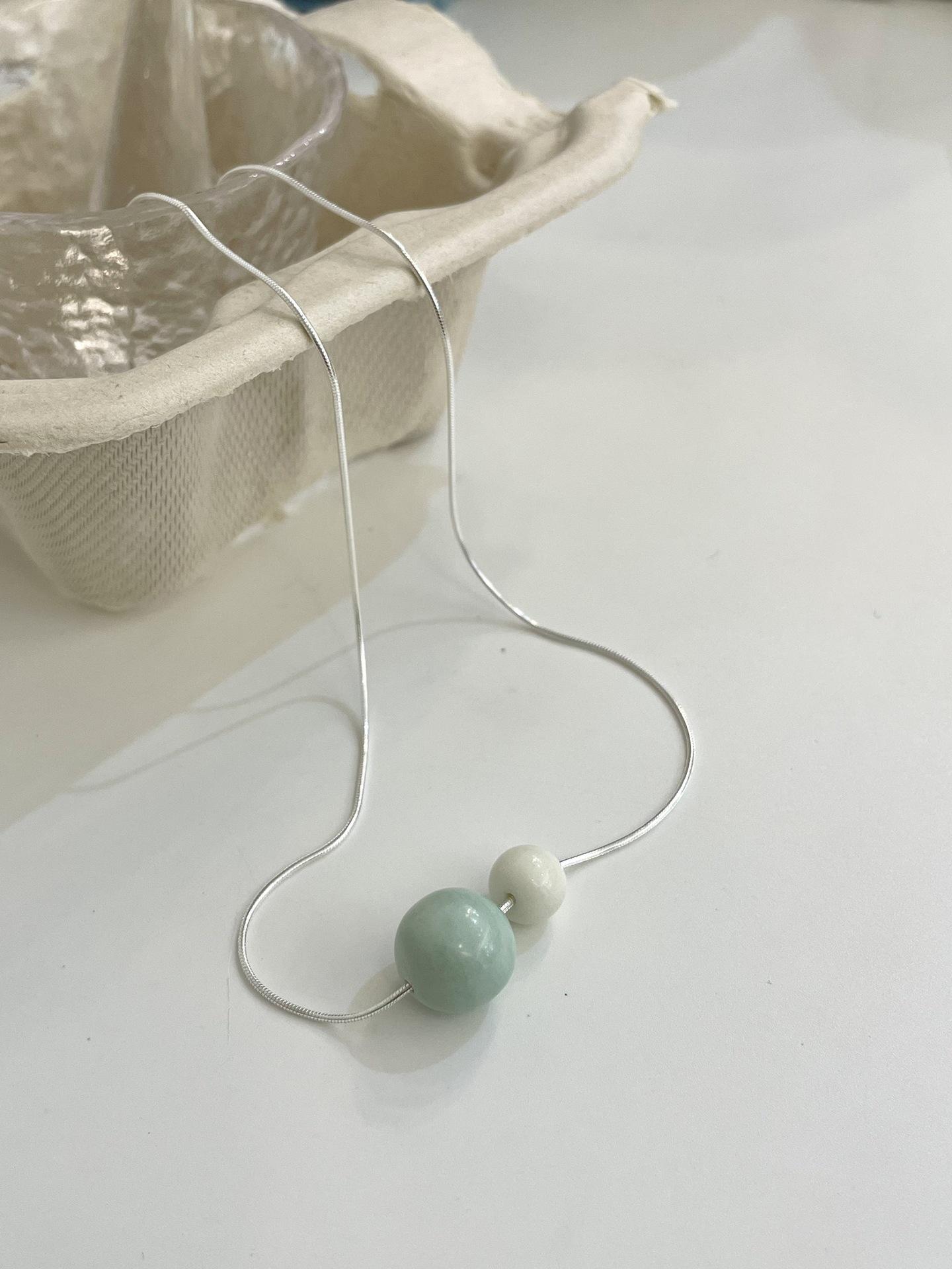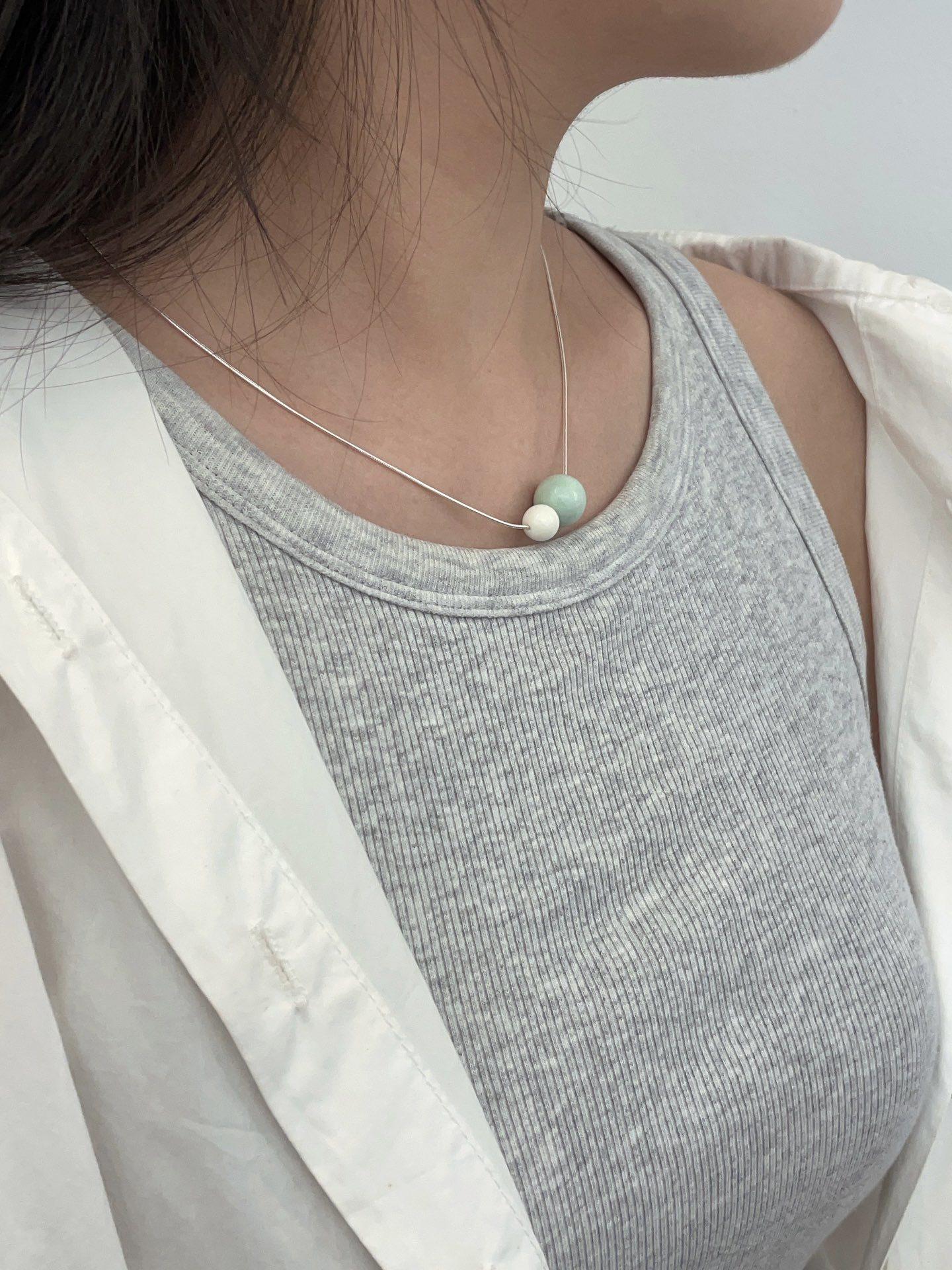 Collar de plata de ley S925 con ágata Alashan verde menta y marfil, personalidad, original, moda y versátil.