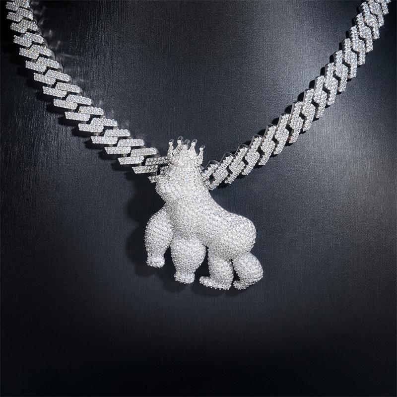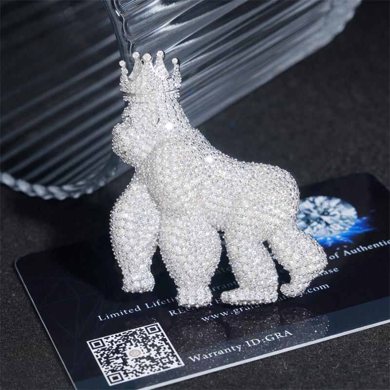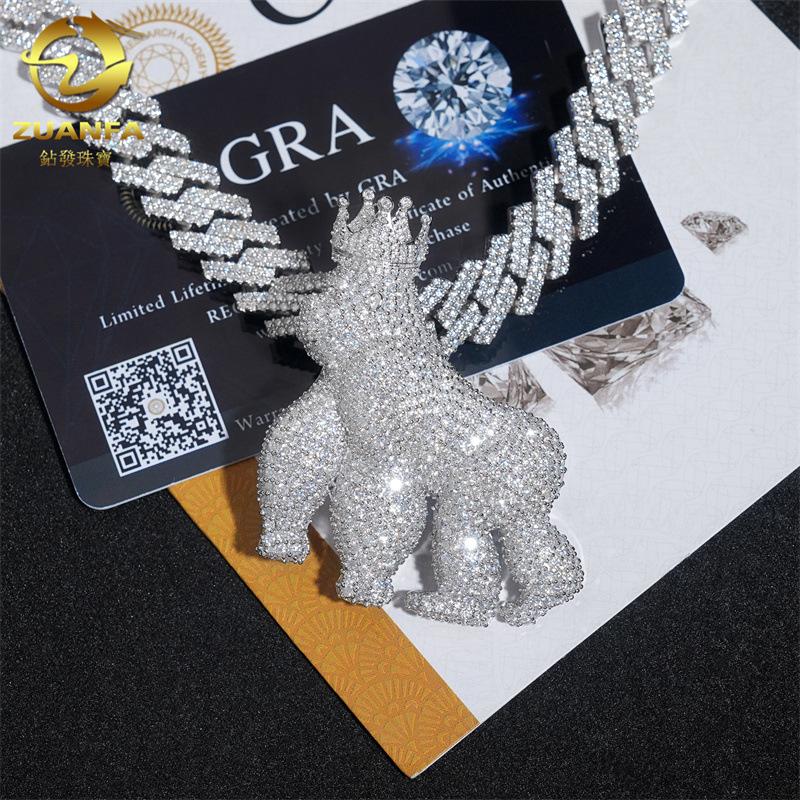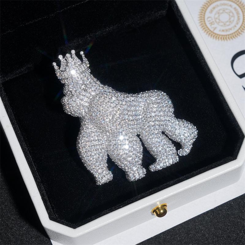 Colgante de animal personalizado con moissanita de plata 925 y diamantes de imitación, conjunto completo, accesorios de moda hip-hop para hombre.