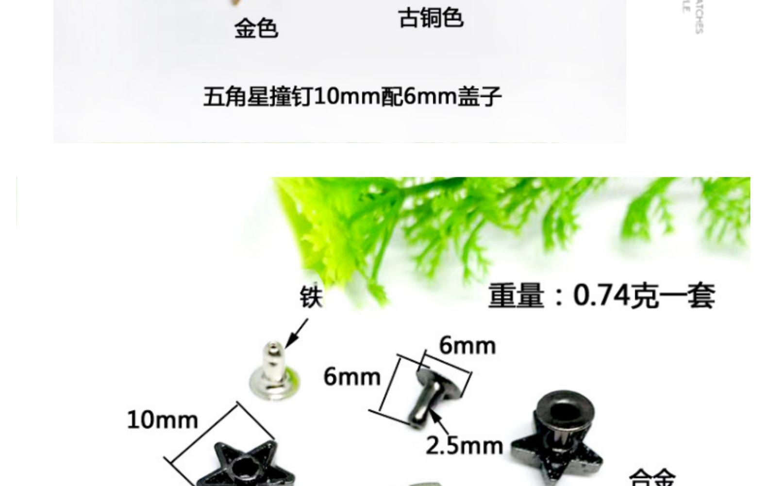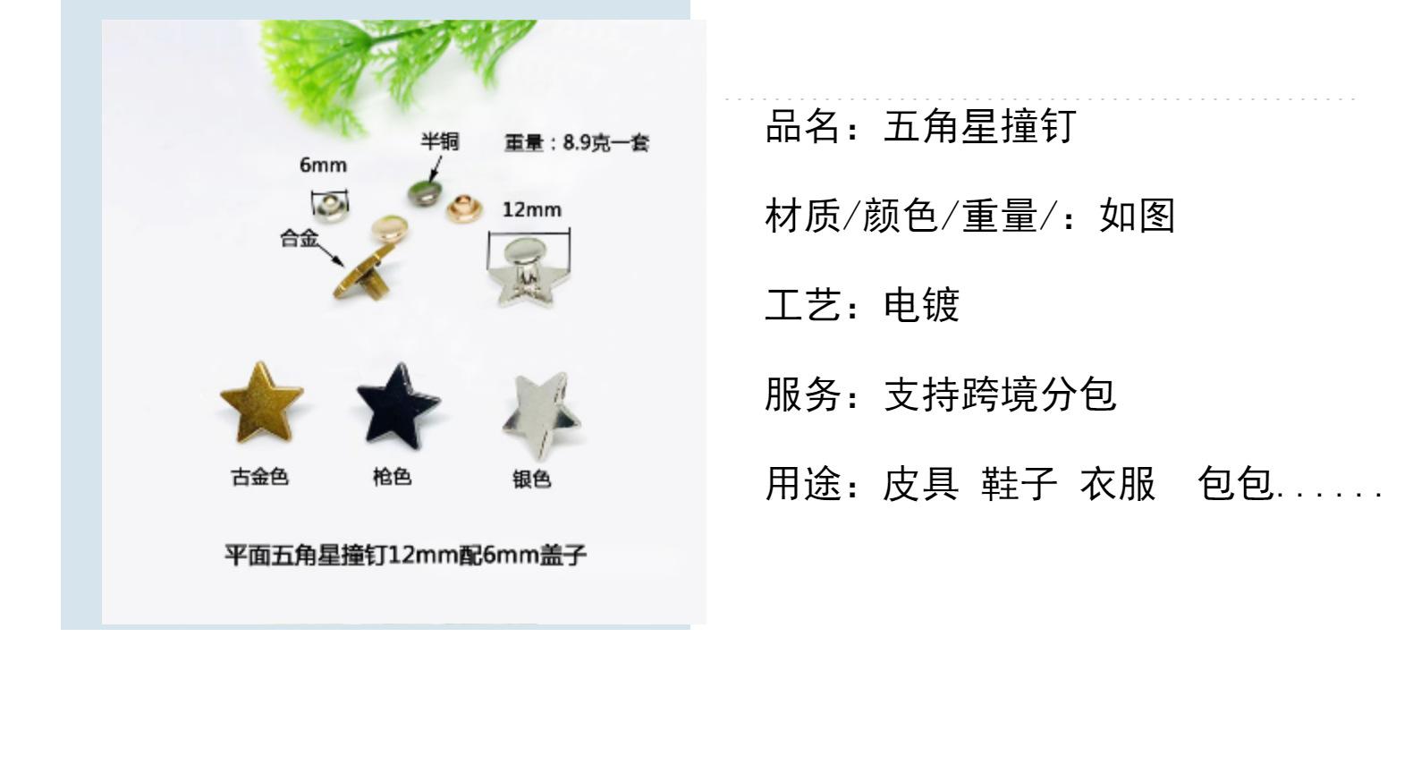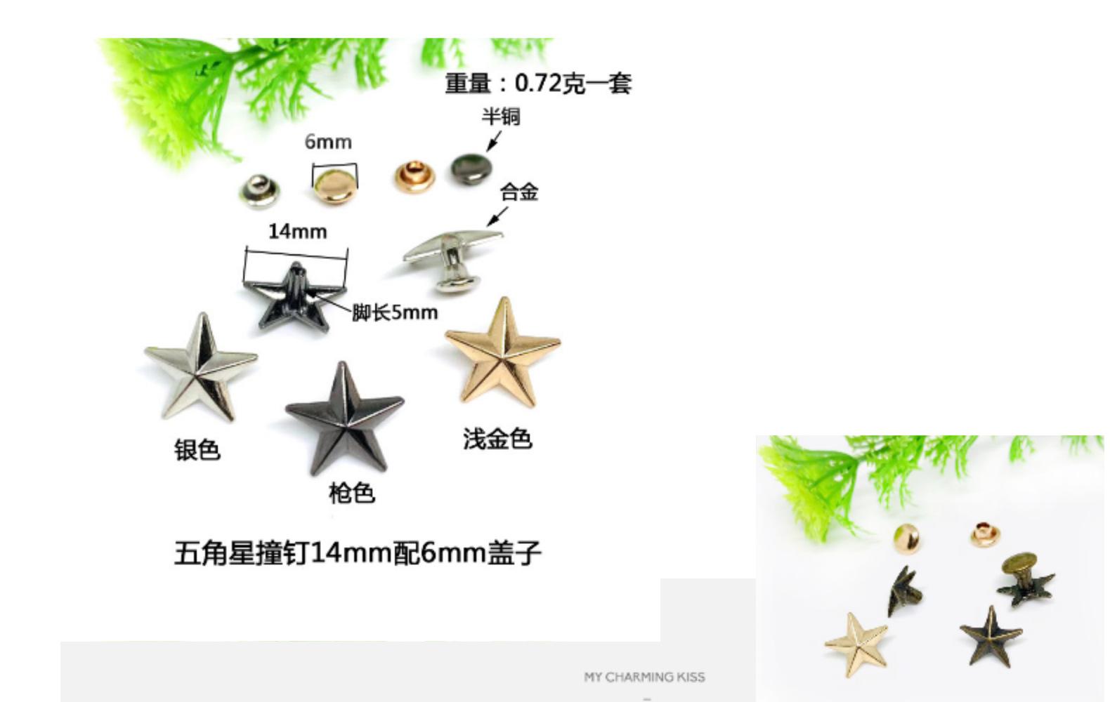 Botón de aleación de estrella de origen, bricolaje, ropa, equipaje, remache de cuero, accesorios de hardware, clavo de estrella de cinco puntas