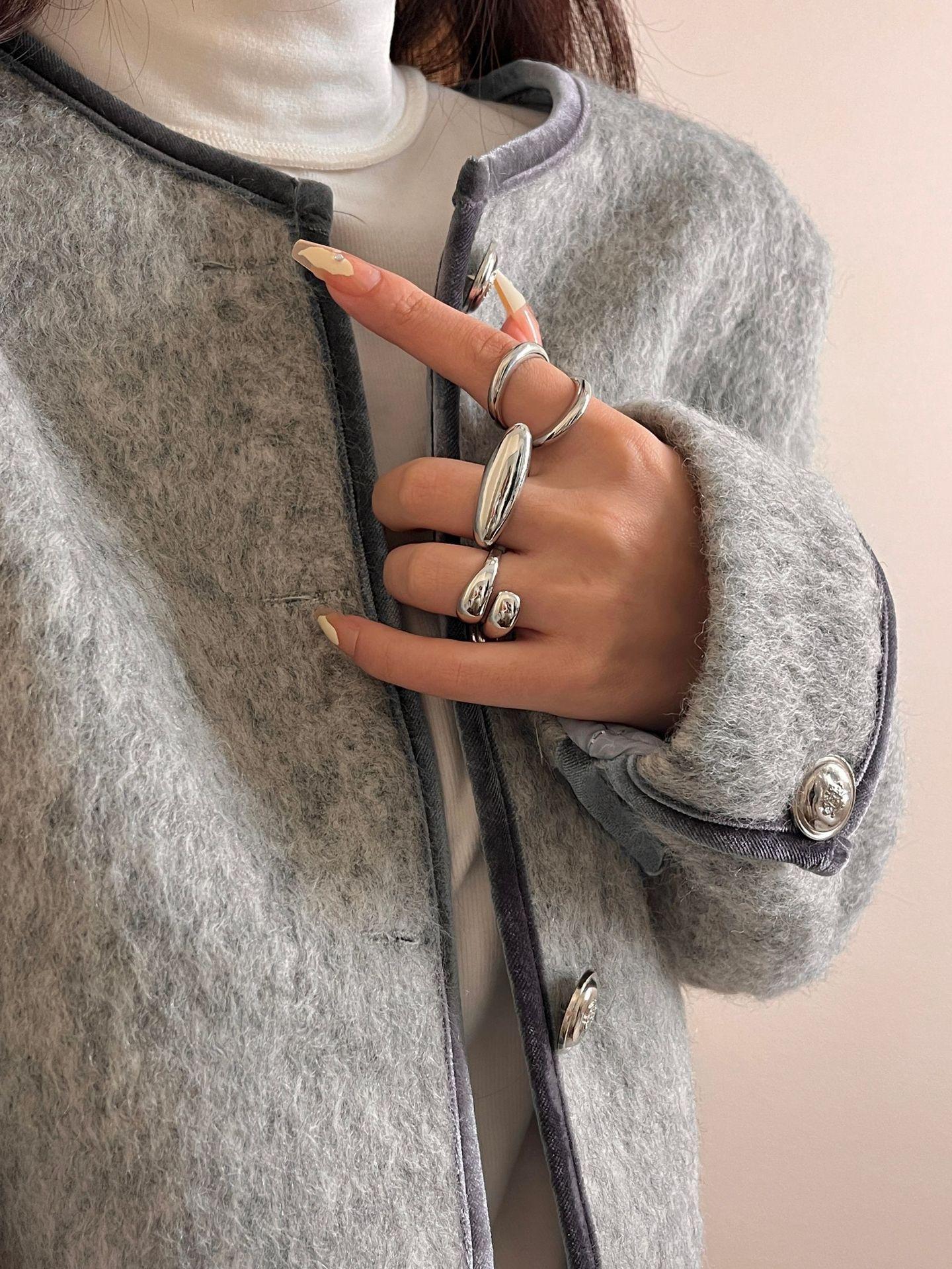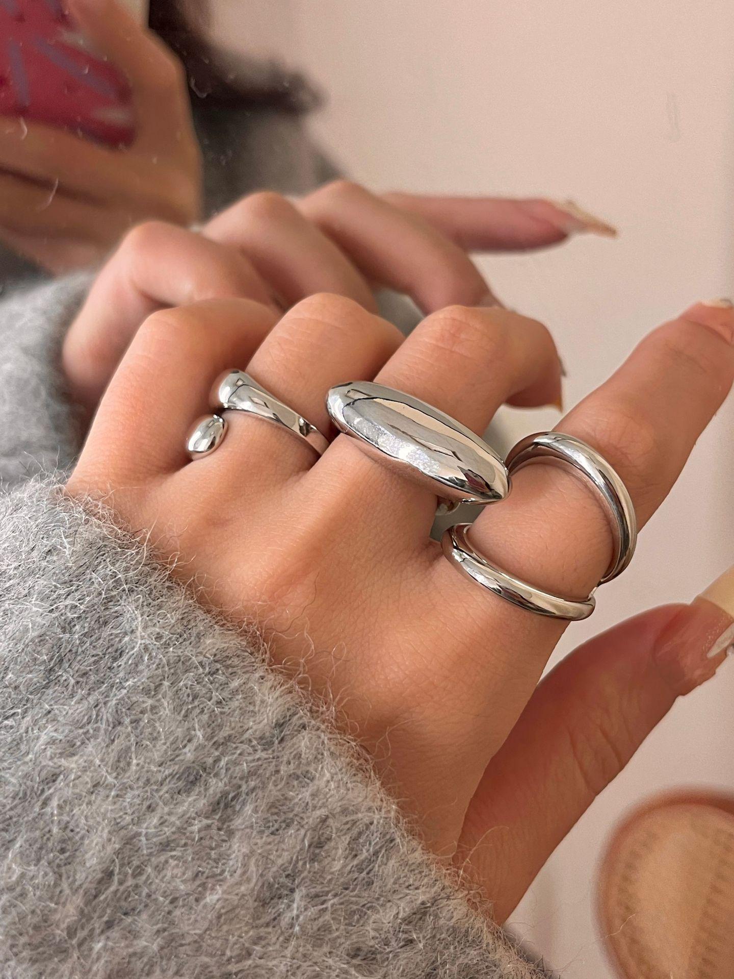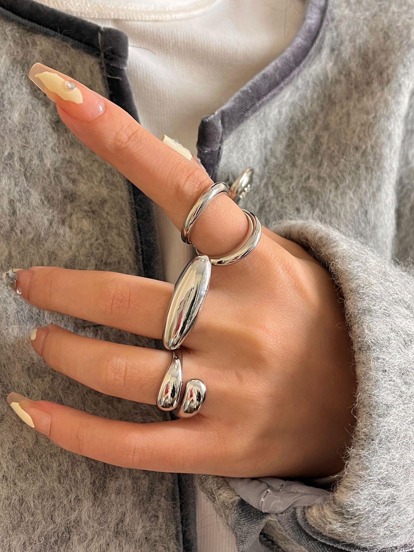 Anillo de apertura de metal estilo francés estilo frío con diseño de nicho para el dedo índice, anillo de personalidad de moda para pareja, anillo femenino