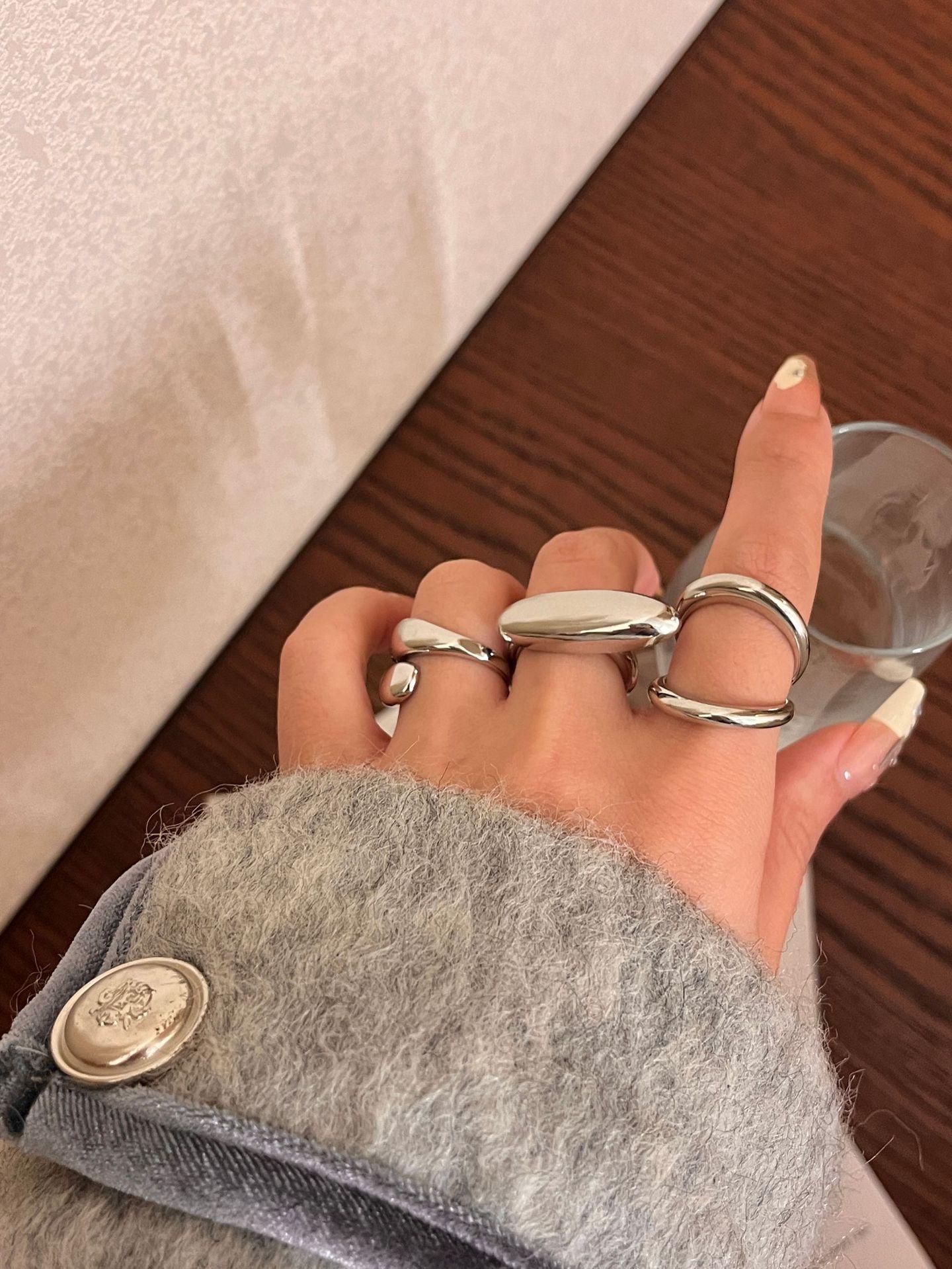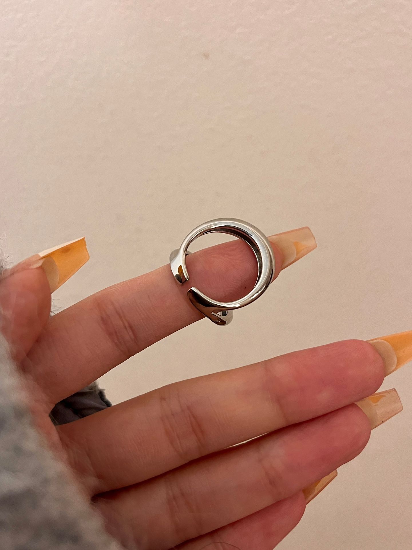 Double-layer ring, Round hollow ring, Glossy goose soft stone