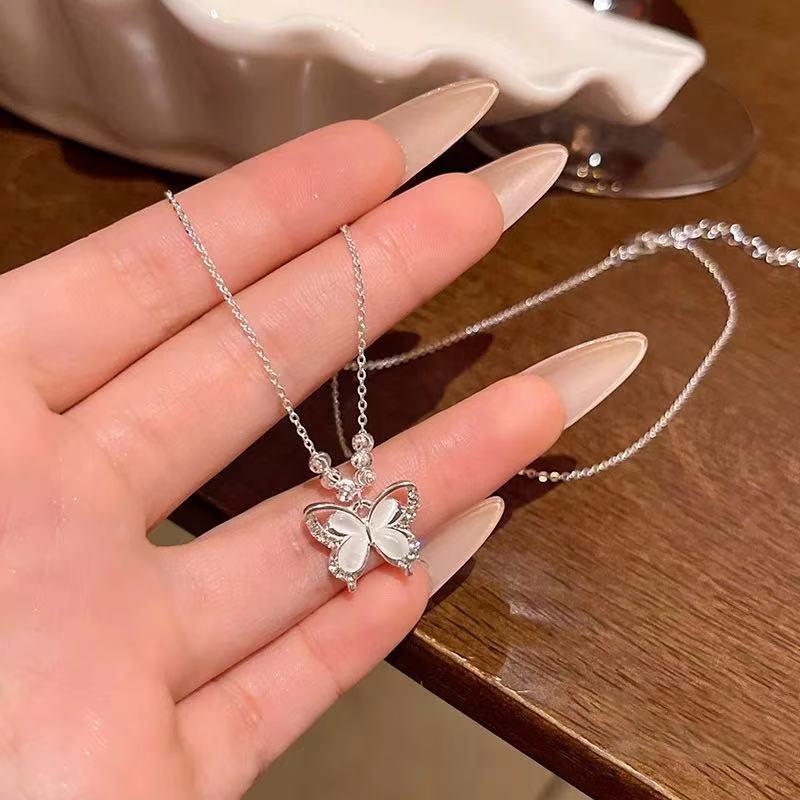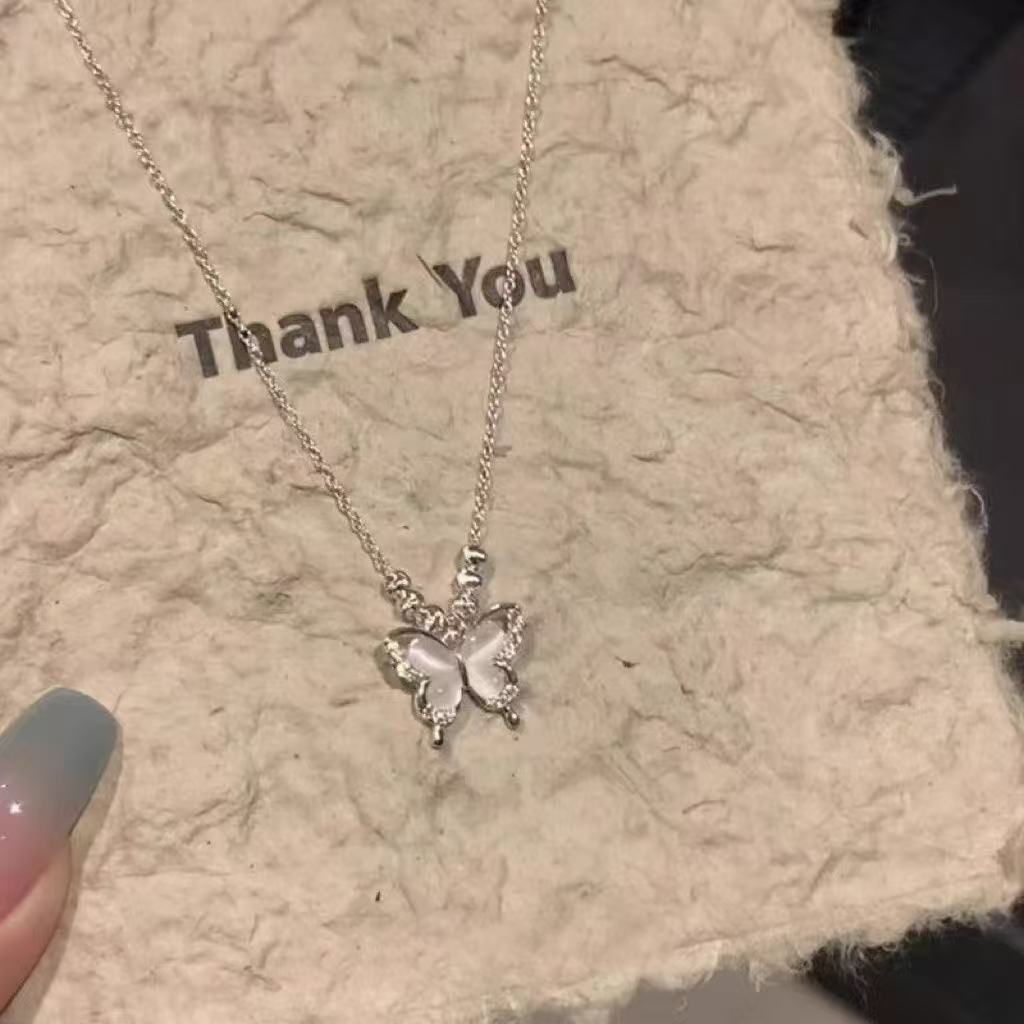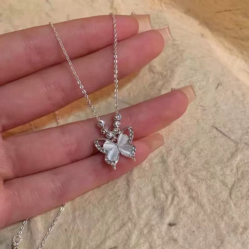 Collar de Mariposa con Piedra Ojo de Gato de Temperamento Dulce para Mujer, Estilo Nicho de Lujo Ligero, Collar de Cadena para Clavícula Estilo Igual de Celebridad de Internet