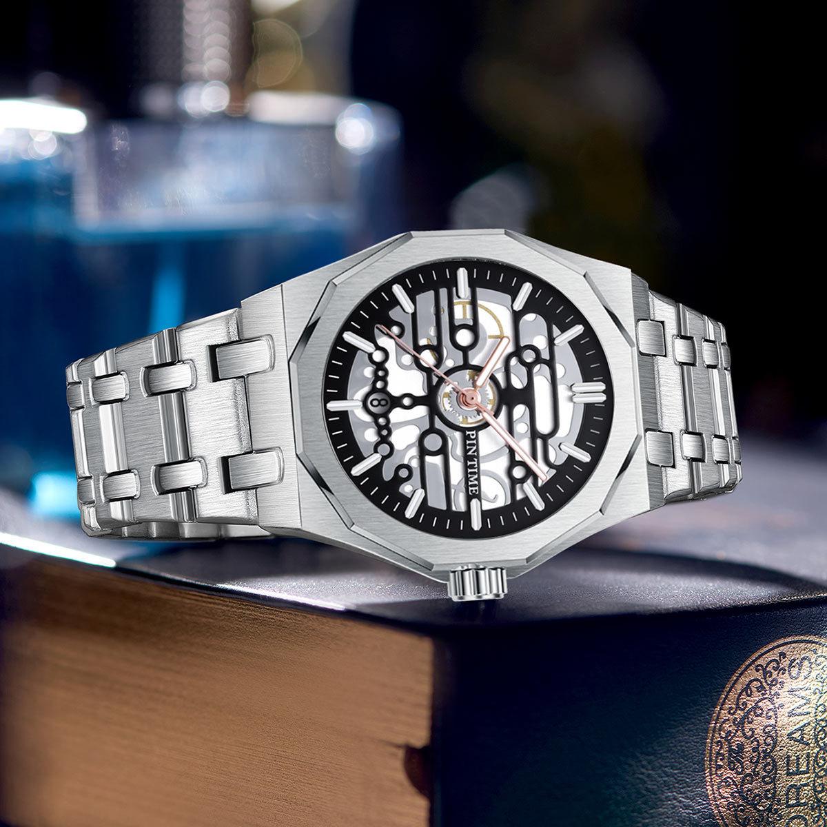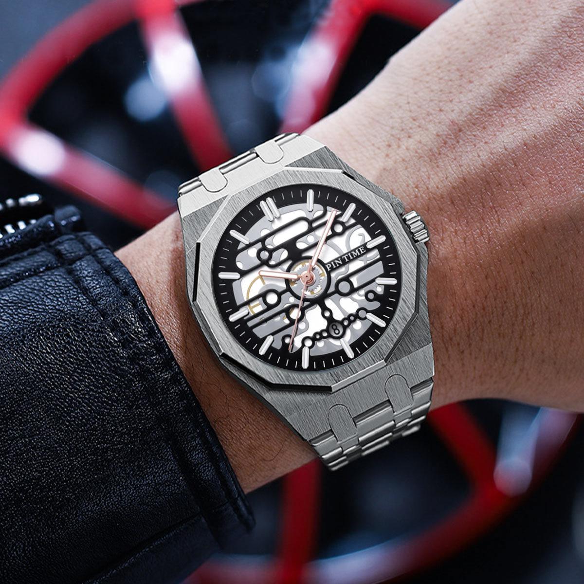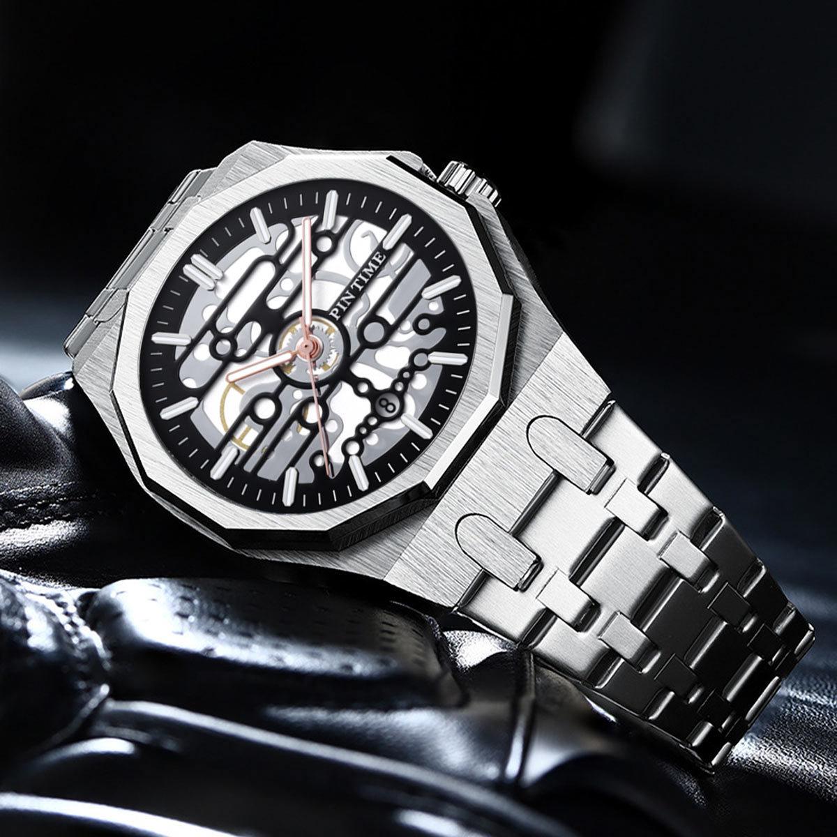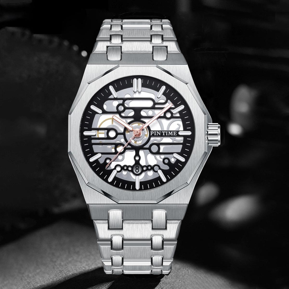 Reloj Mecánico para Hombre Reloj de Negocios Transfronterizo con Correa de Acero Reloj de Nicho de Alta Gama para Hombre Resistente al Agua
