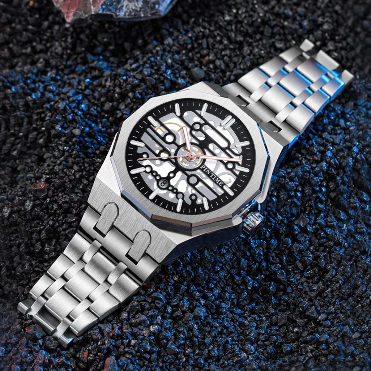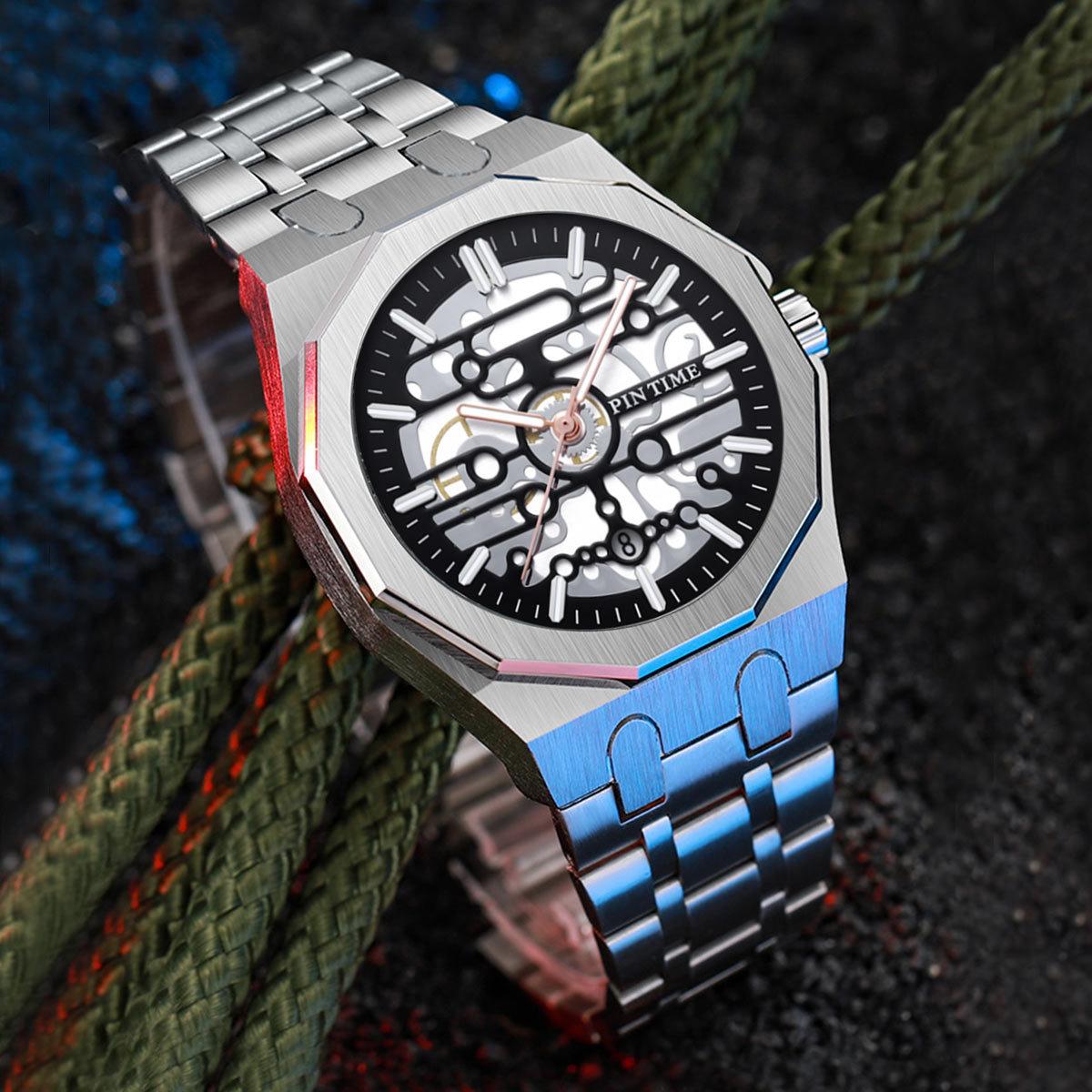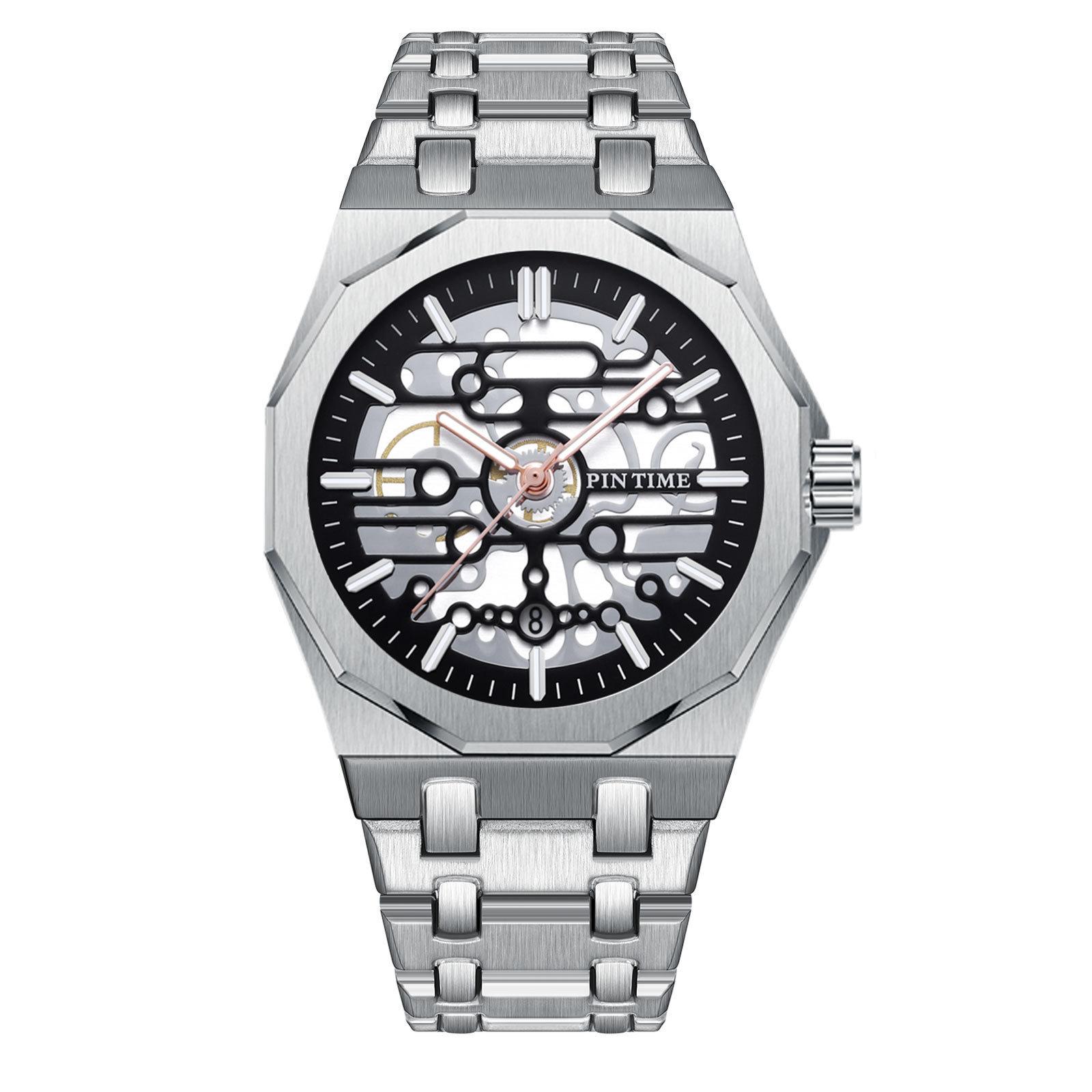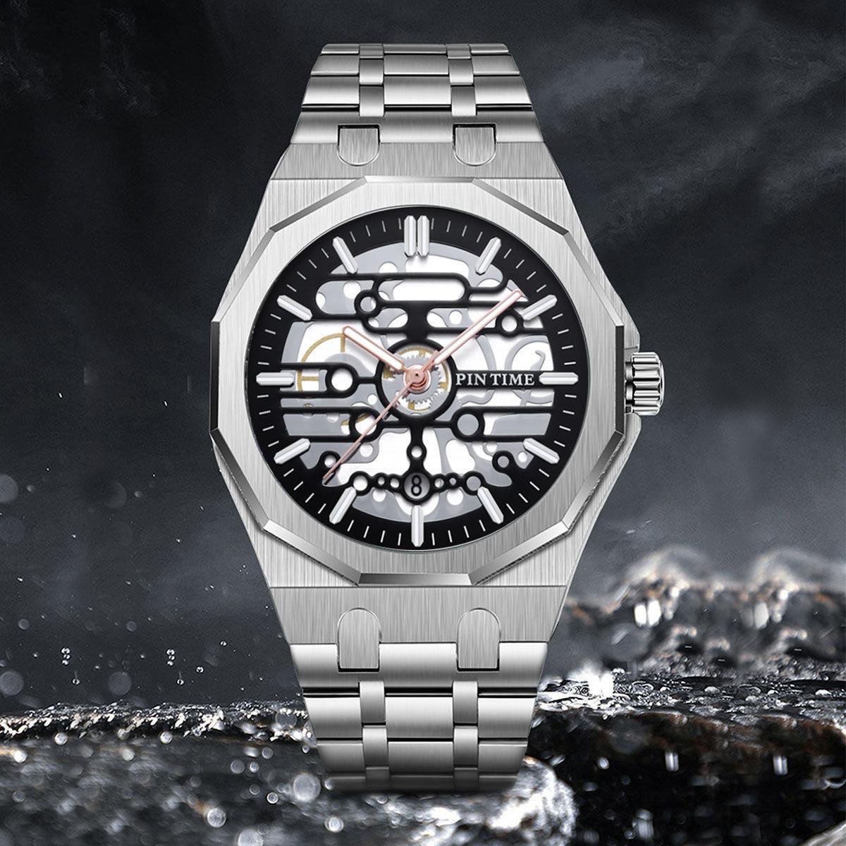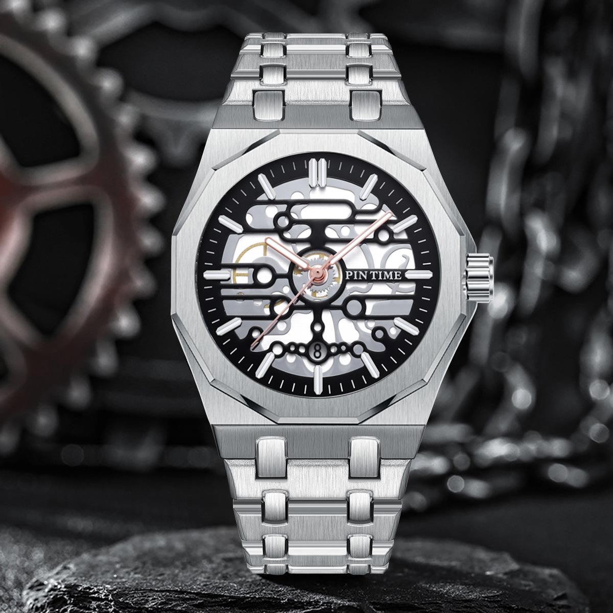 Reloj Mecánico para Hombre Reloj de Negocios Transfronterizo con Correa de Acero Reloj de Nicho de Alta Gama para Hombre Resistente al Agua