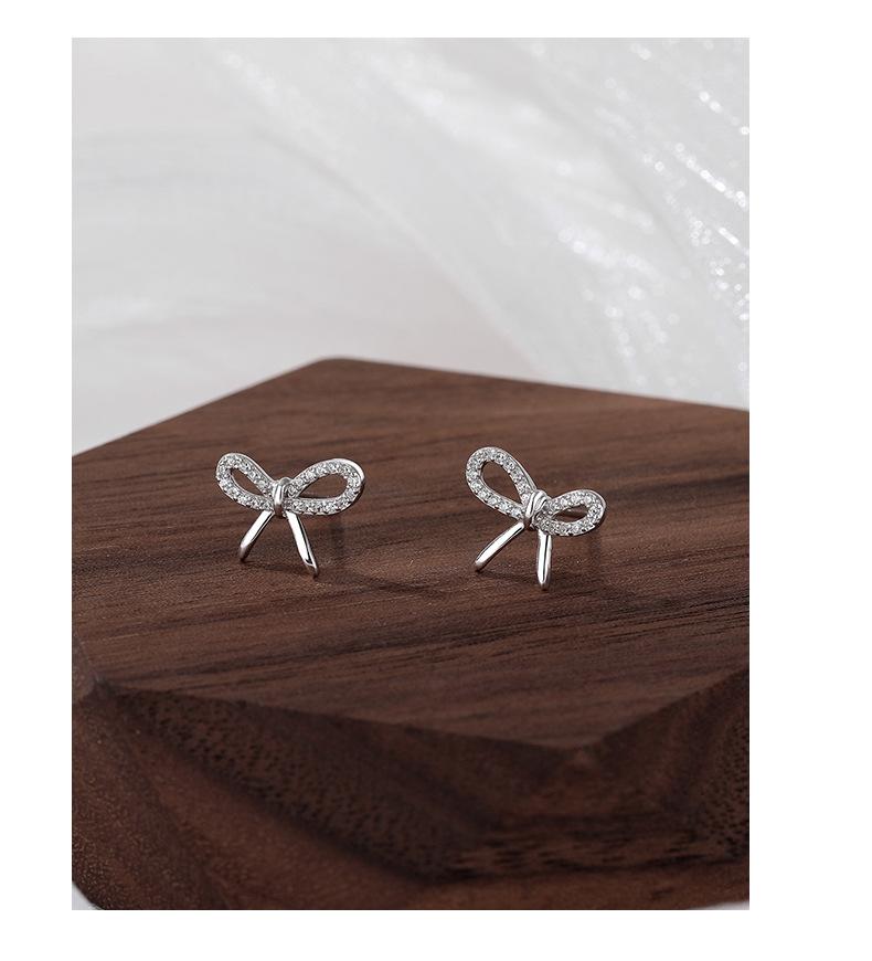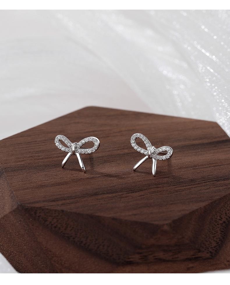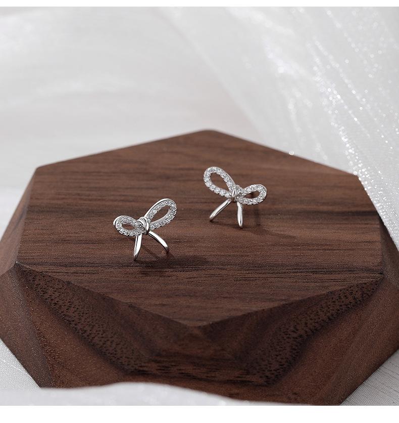 Aretes de Lazo de Diamantes de Plata Pura S999 de Alta Gama para Mujer Moda Coreana Versátiles Exquisitos Aretes Dropshipping