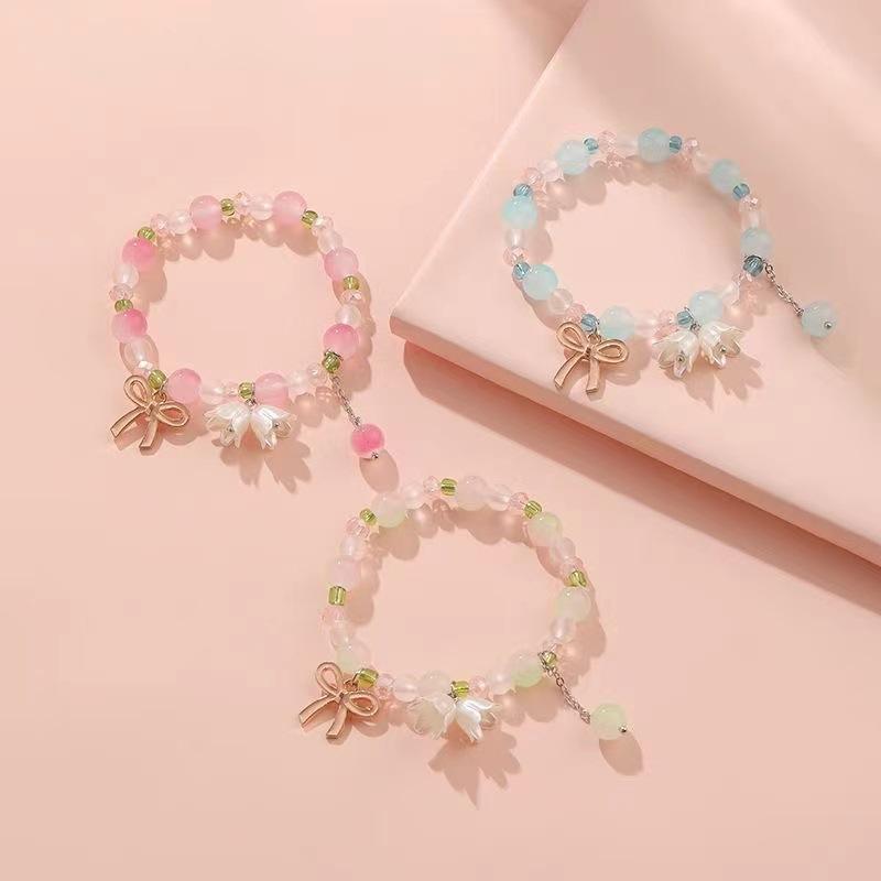 S446 pink bow bell orchid bracelet, S447 blue bow bell orchid bracelet, S448 light green Bow Blink Bracelet, L...