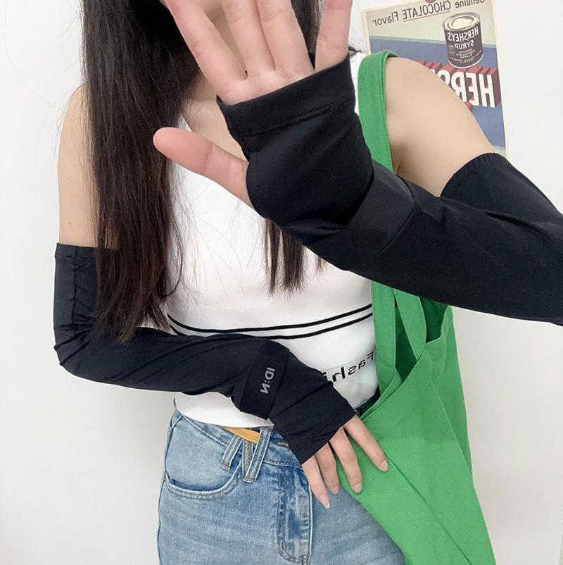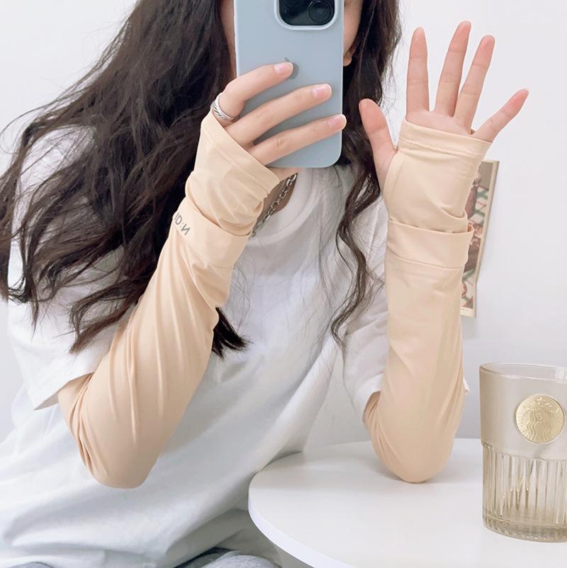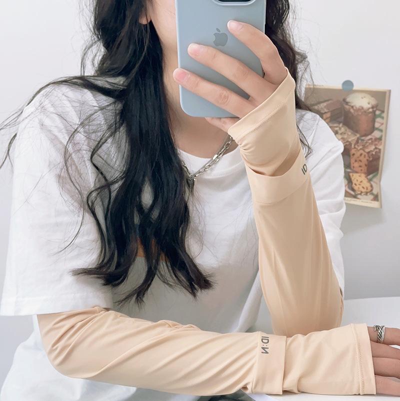Manga de hielo para mujer, de verano, de seda helada, con protección solar, para conducir, fina, con protección UV, para brazo, manga suelta para mano