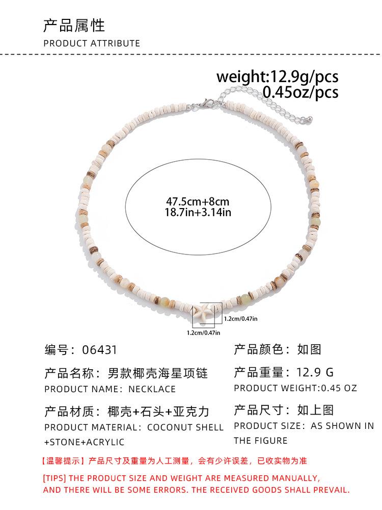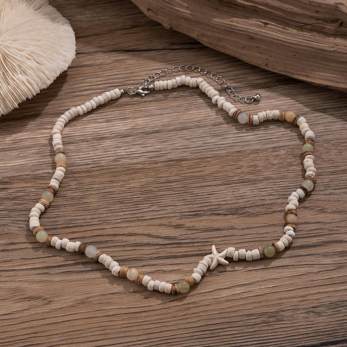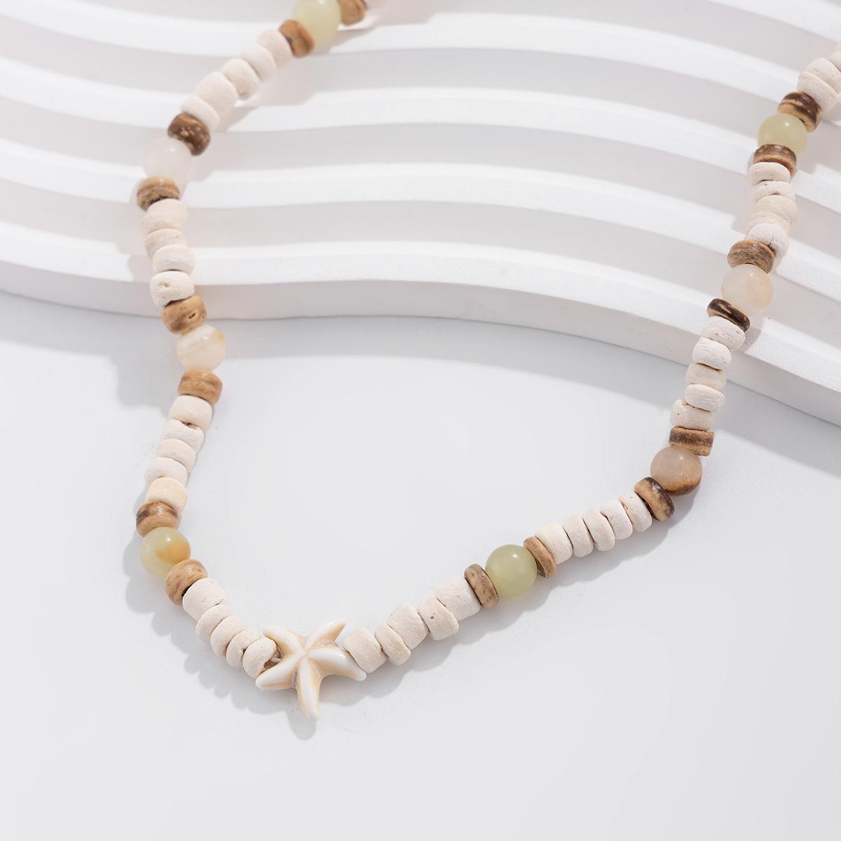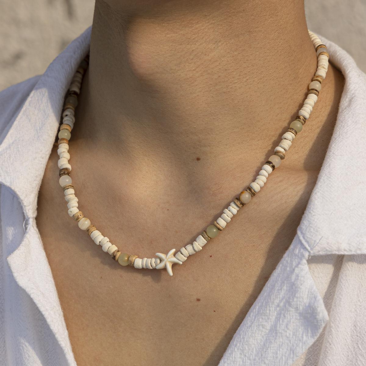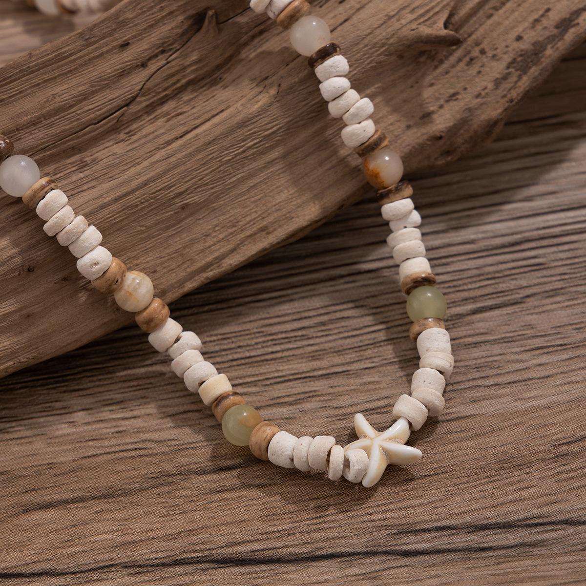 Collar de estrella de mar con concha de coco estilo surfista europeo y americano, joyería para hombre de estilo hip-hop, cadena de clavícula con cuentas de madera y costuras de alta calidad.