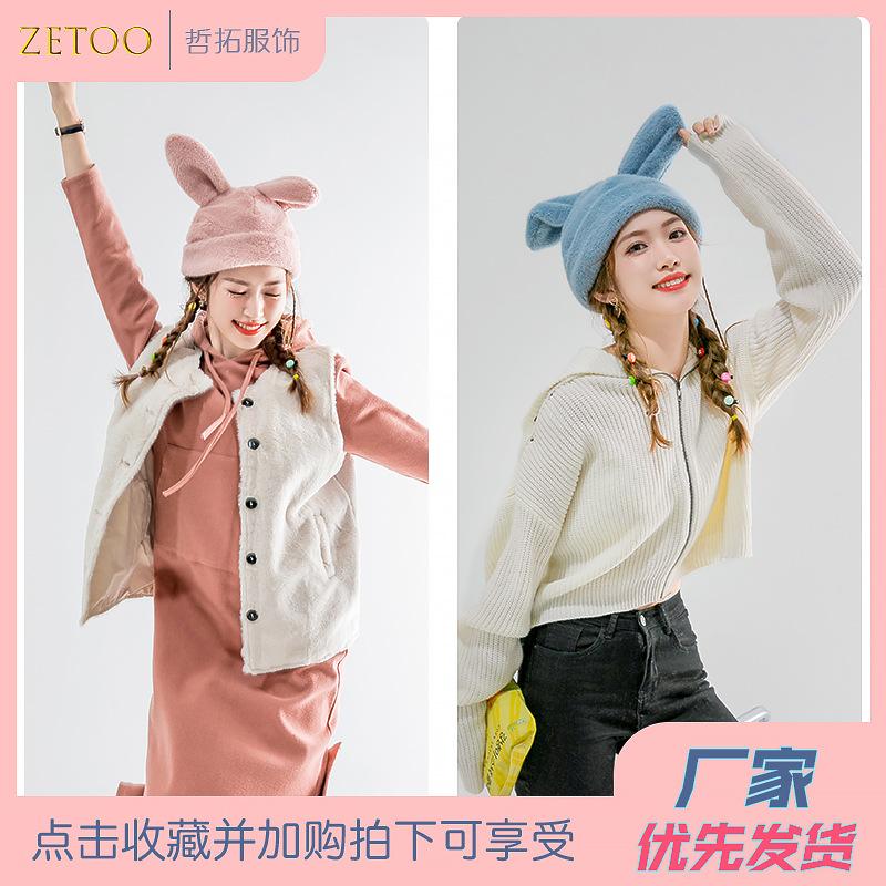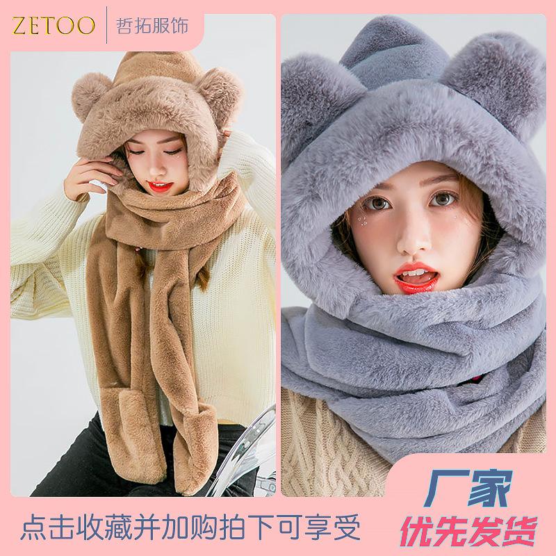 Boina con orejas de conejo para niña, gorro cálido de invierno, bonito y súper lindo, de felpa elástica, fabricante, 2021 | Bufanda de piel de conejo Rex de imitación estilo coreano para mujer, invierno 2021, cálida, con etiqueta de piel, fabricante transfronterizo. | Versión coreana 2021 de cómoda bufanda de dos piezas de terciopelo de algodón para niñas, linda y cálida bufanda con capucha, nuevo estilo de invierno, fabricantes al contado | ||
