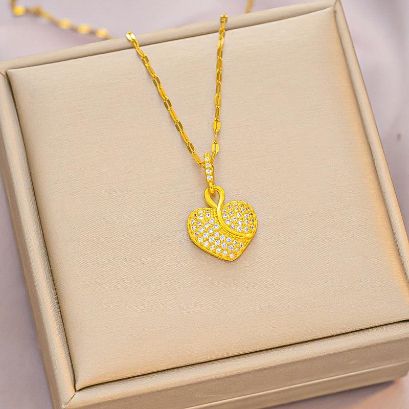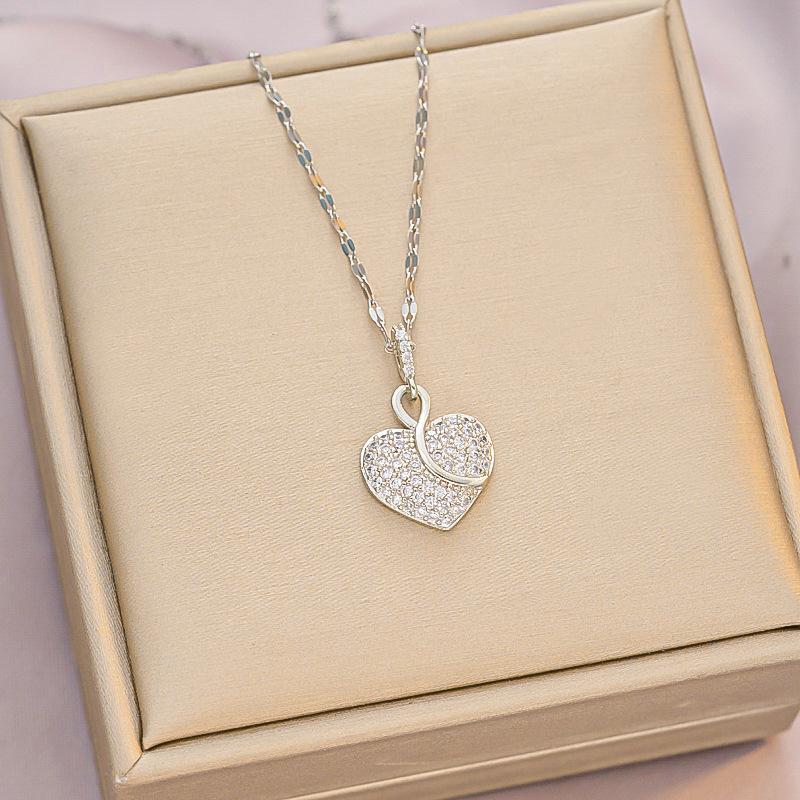 Collar de acero y titanio con colgante vintage en forma de corazón y circonitas microincrustadas, estilo IMS, sencillo, combinable con todo, con cadena de clavícula y amor.