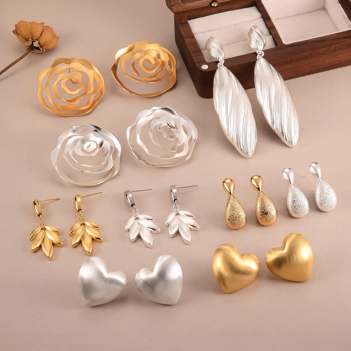 Pendientes sencillos de flores con forma de amor, de metal, modernos, combinables, con borlas, de alta gama.