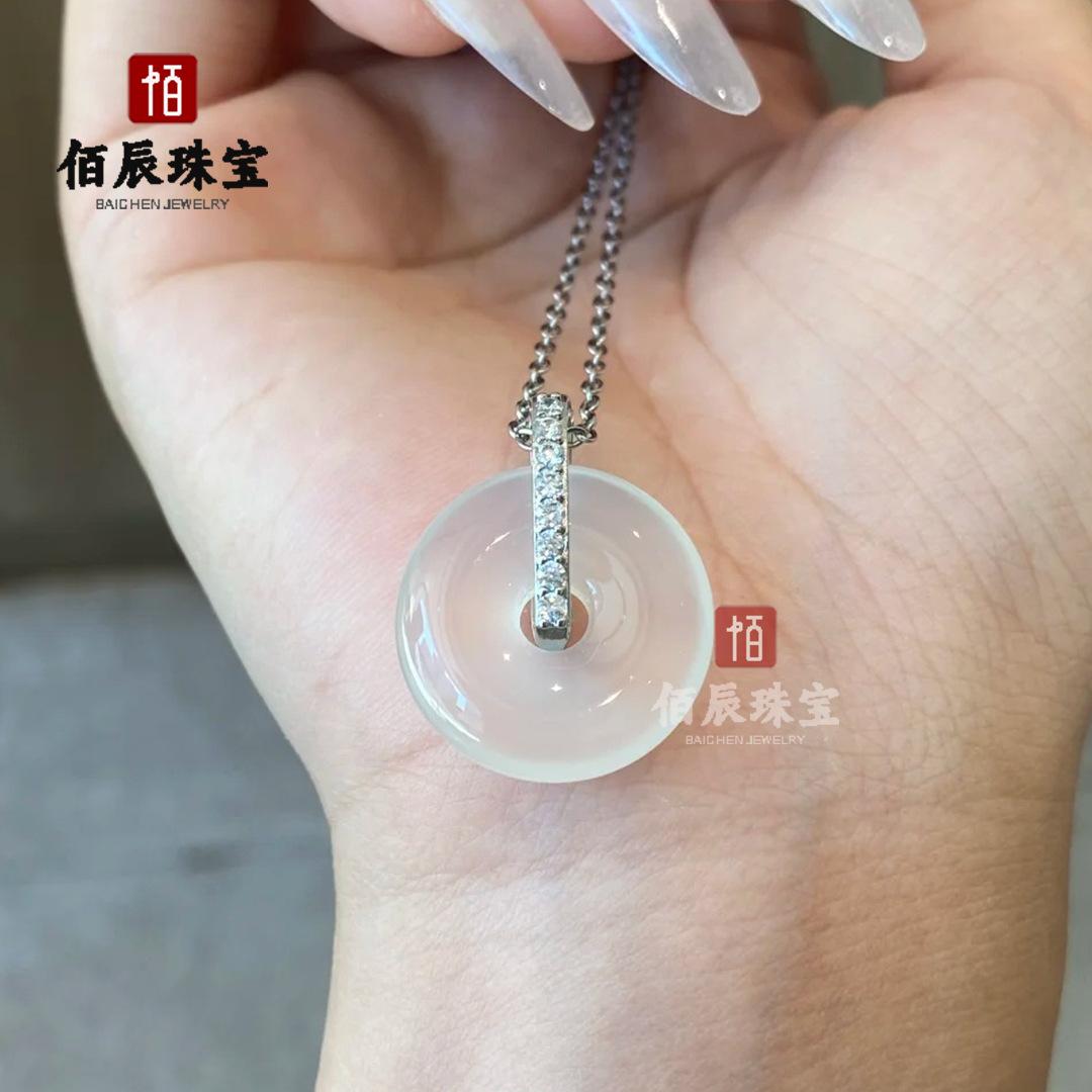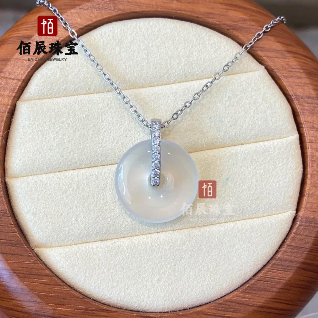 Colgante de Calcedonia Blanca Plateado con Hielo Hebilla Ping An Pequeña Ágata Blanca Collar de Jade para Mujer Artesanías al Por Mayor