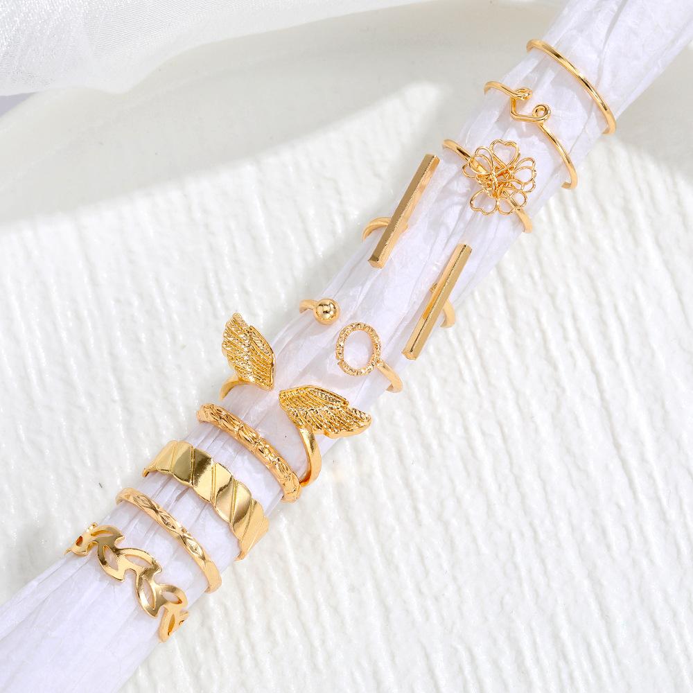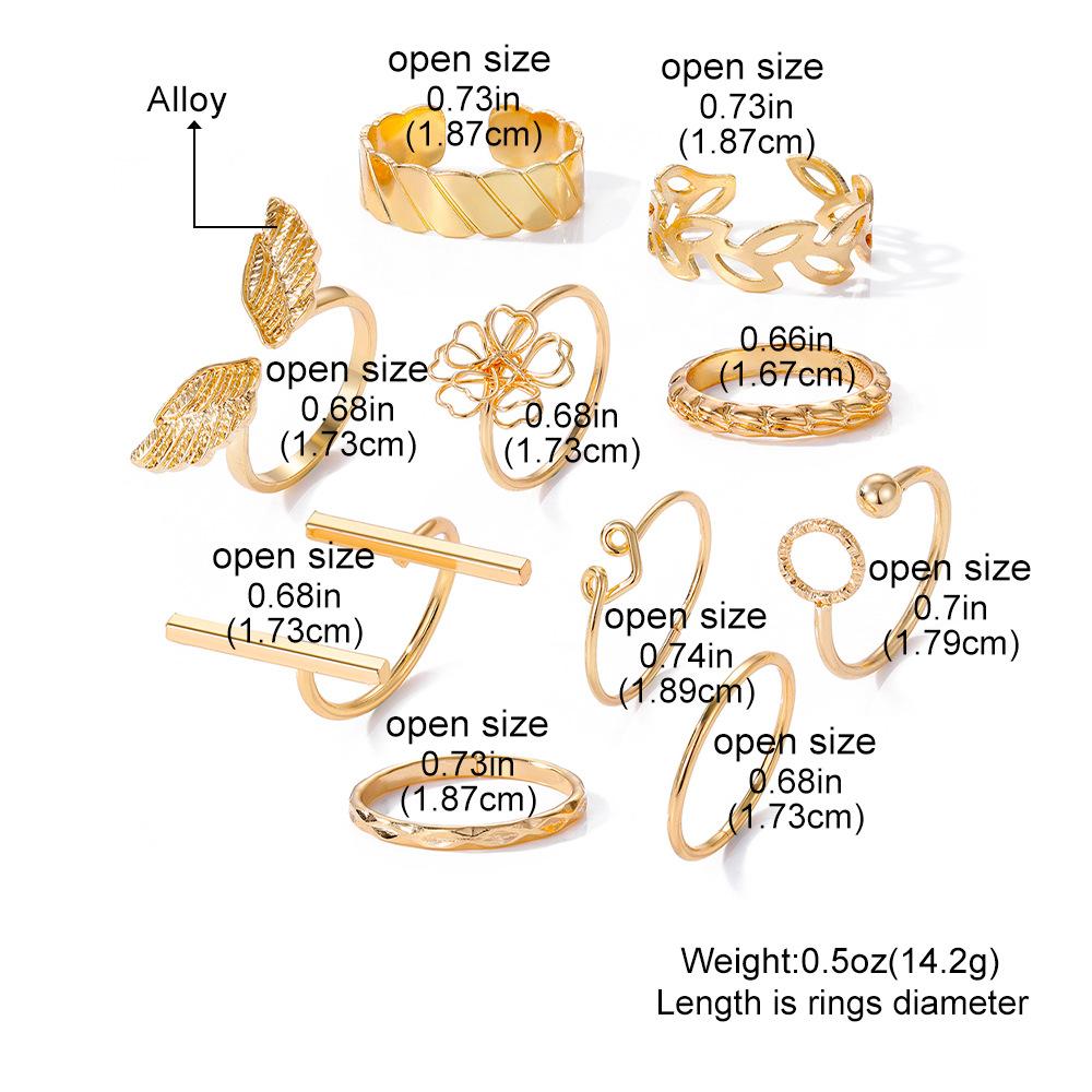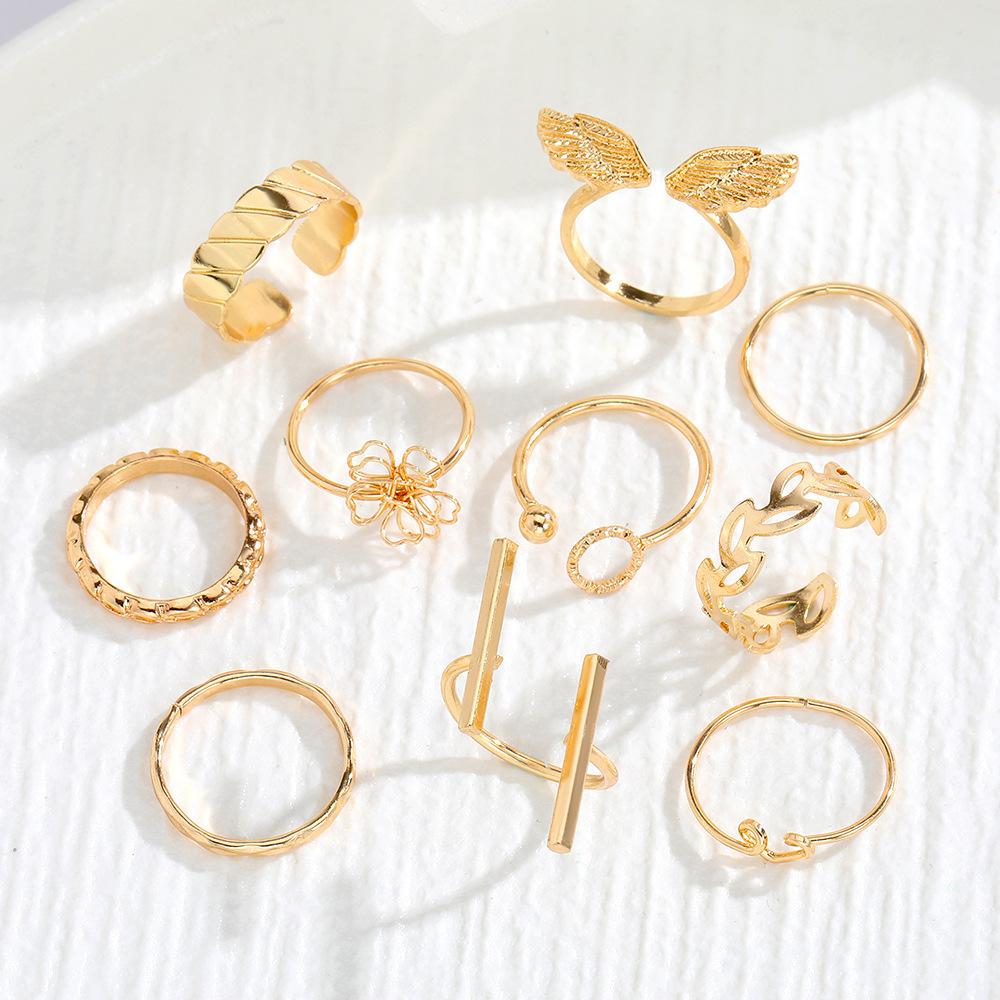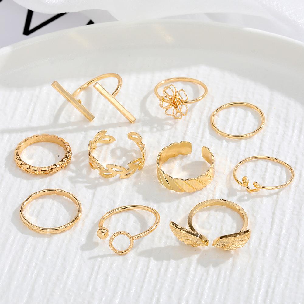Conjunto de anillos geométricos nuevos transfronterizos de Europa y Estados Unidos, anillo de alas de trigo de nicho de estilo retro para mujer, 10 piezas al por mayor