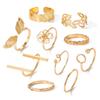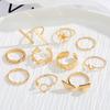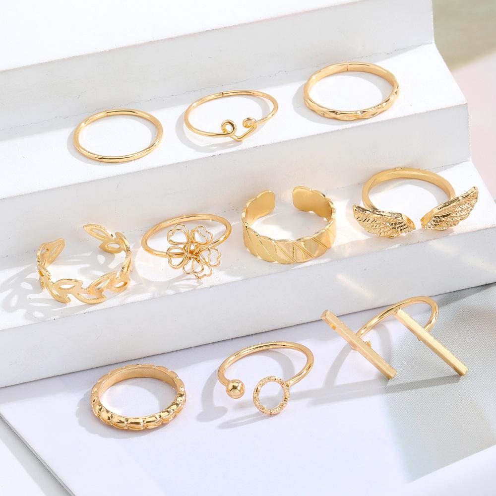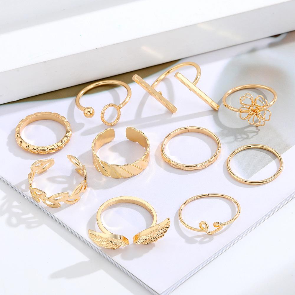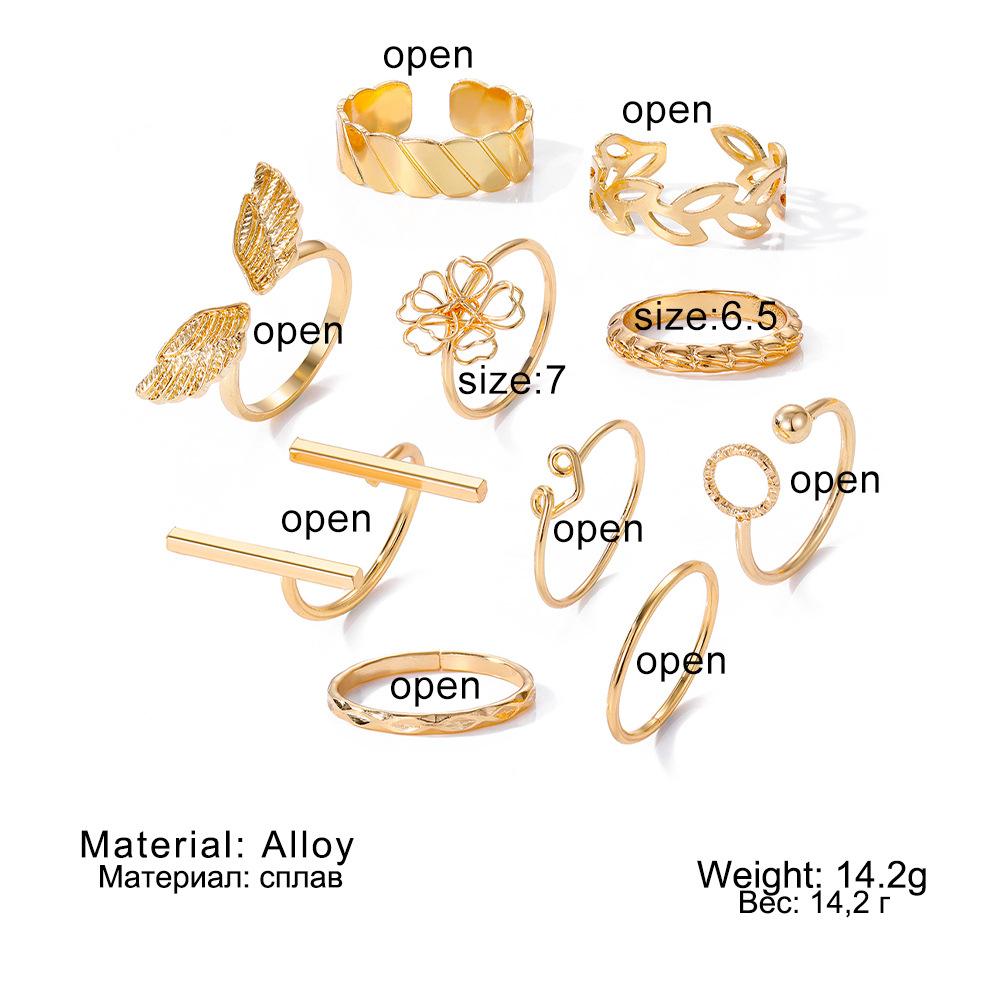 Conjunto de anillos geométricos nuevos transfronterizos de Europa y Estados Unidos, anillo de alas de trigo de nicho de estilo retro para mujer, 10 piezas al por mayor