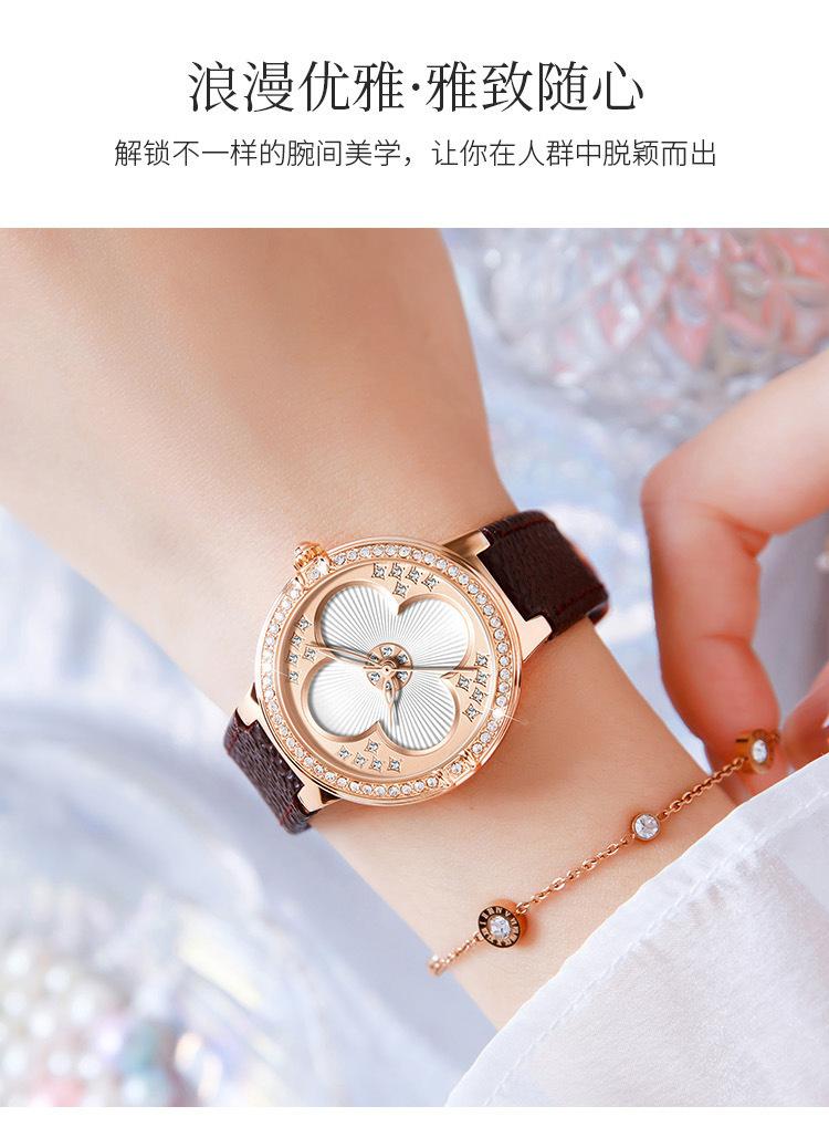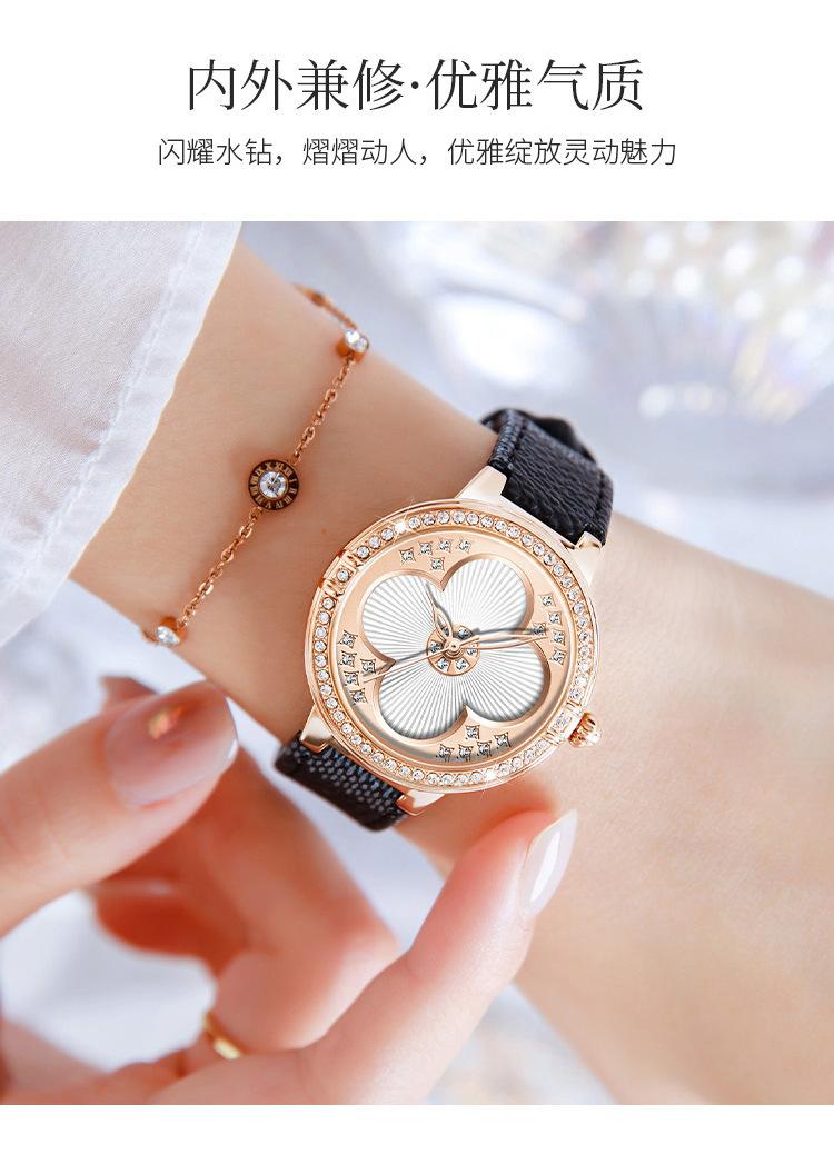 Meibin nuevo reloj de cinturón de moda comercio exterior reloj de mujer trébol de cuatro hojas retro esfera de diamantes gypsophila transfronterizo
