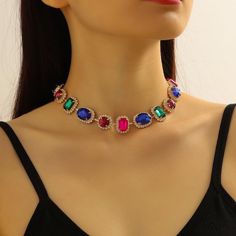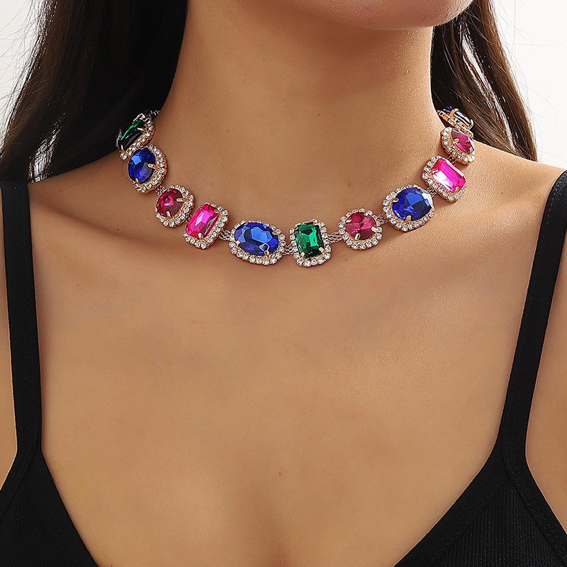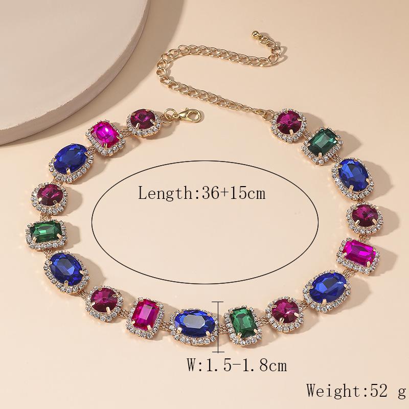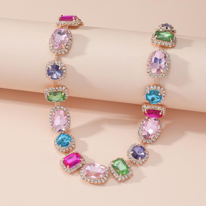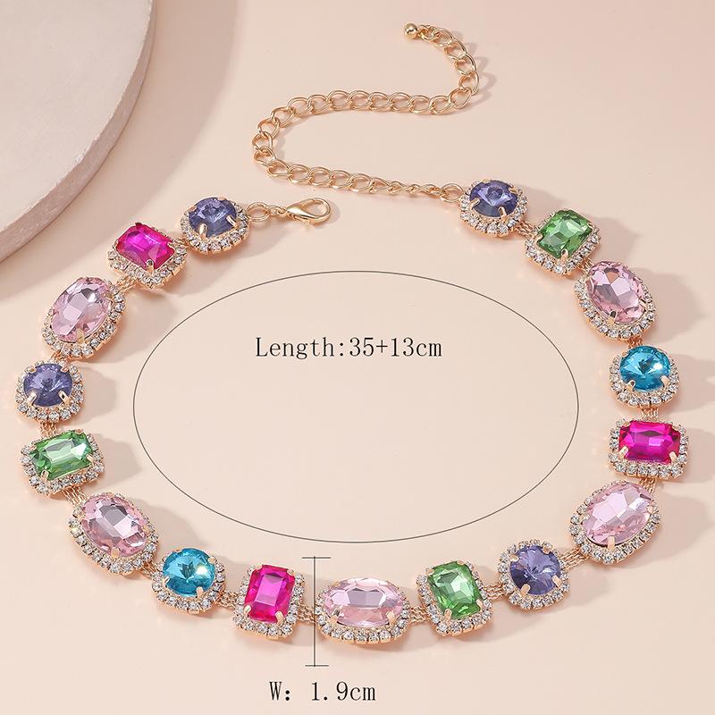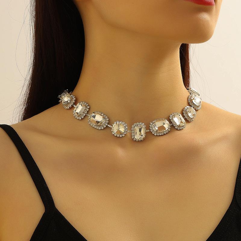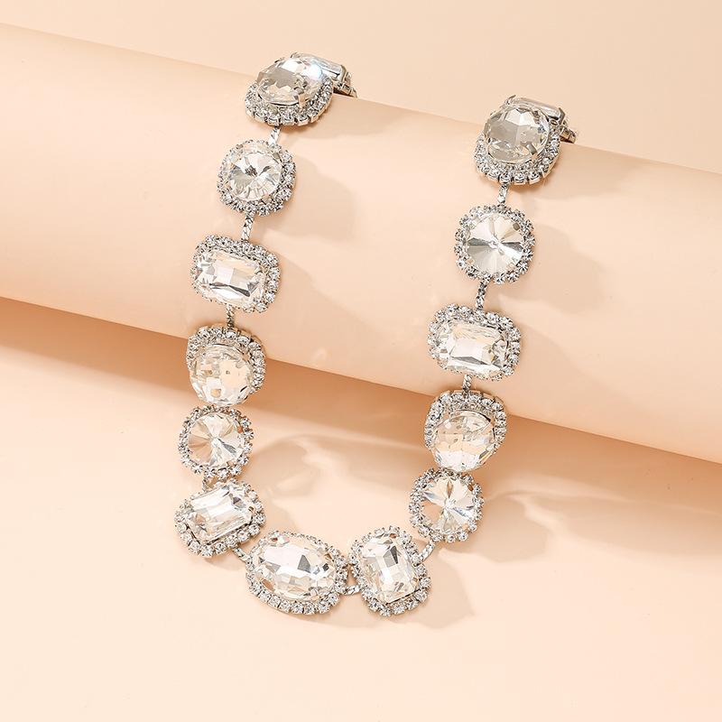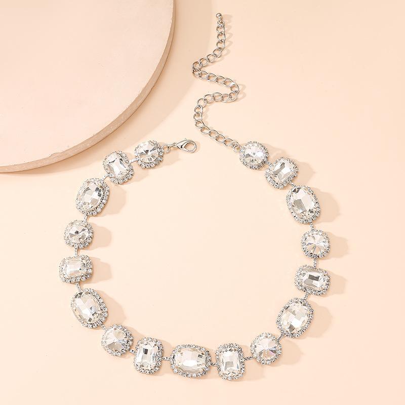 Cadena de garras con destellos superbrillantes de comercio exterior transfronterizo, cadena de cuello de cristal con diamantes de imitación de cristal geométrico, accesorios de cena europeos y americanos para mujeres, collar de clavícula