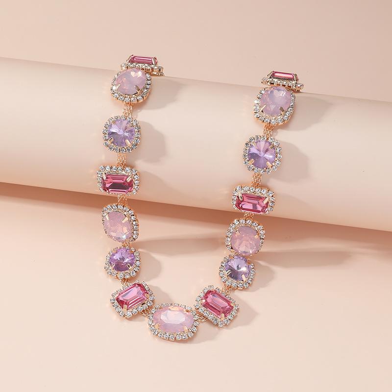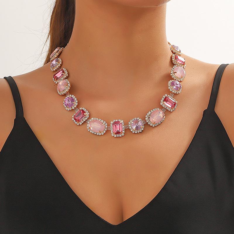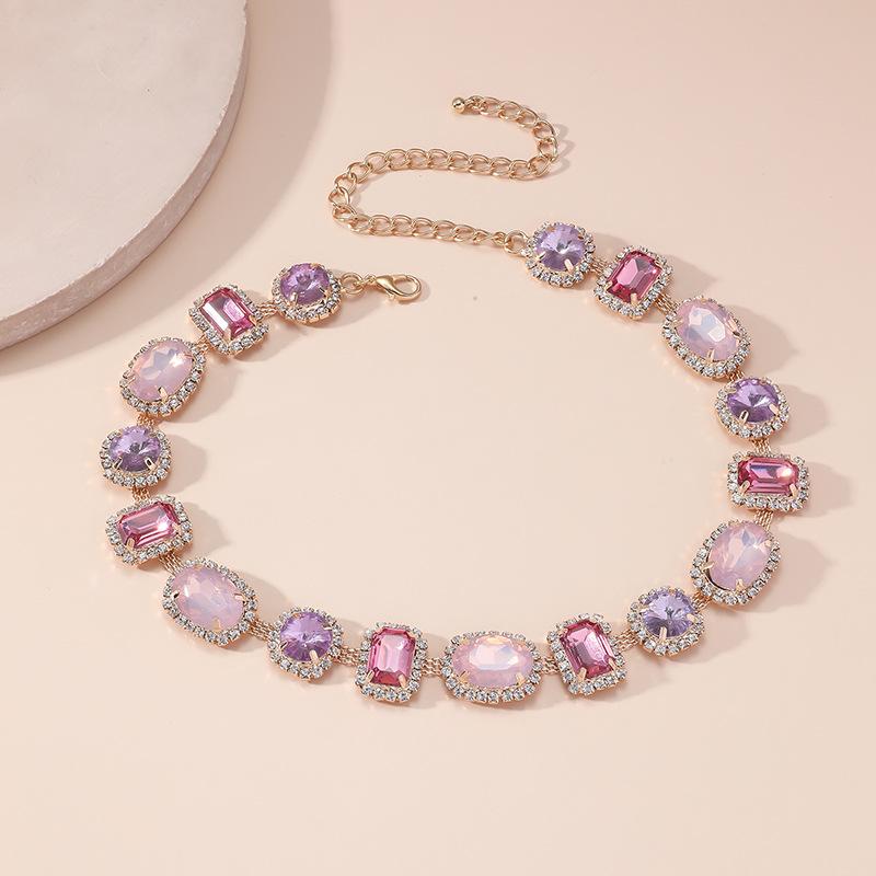 JXJL21108 color necklace, JXJL21108 white crystal necklace, JXJL21108 blue green pink purple, JXJL21108 Pink Purple