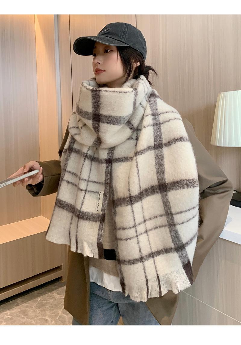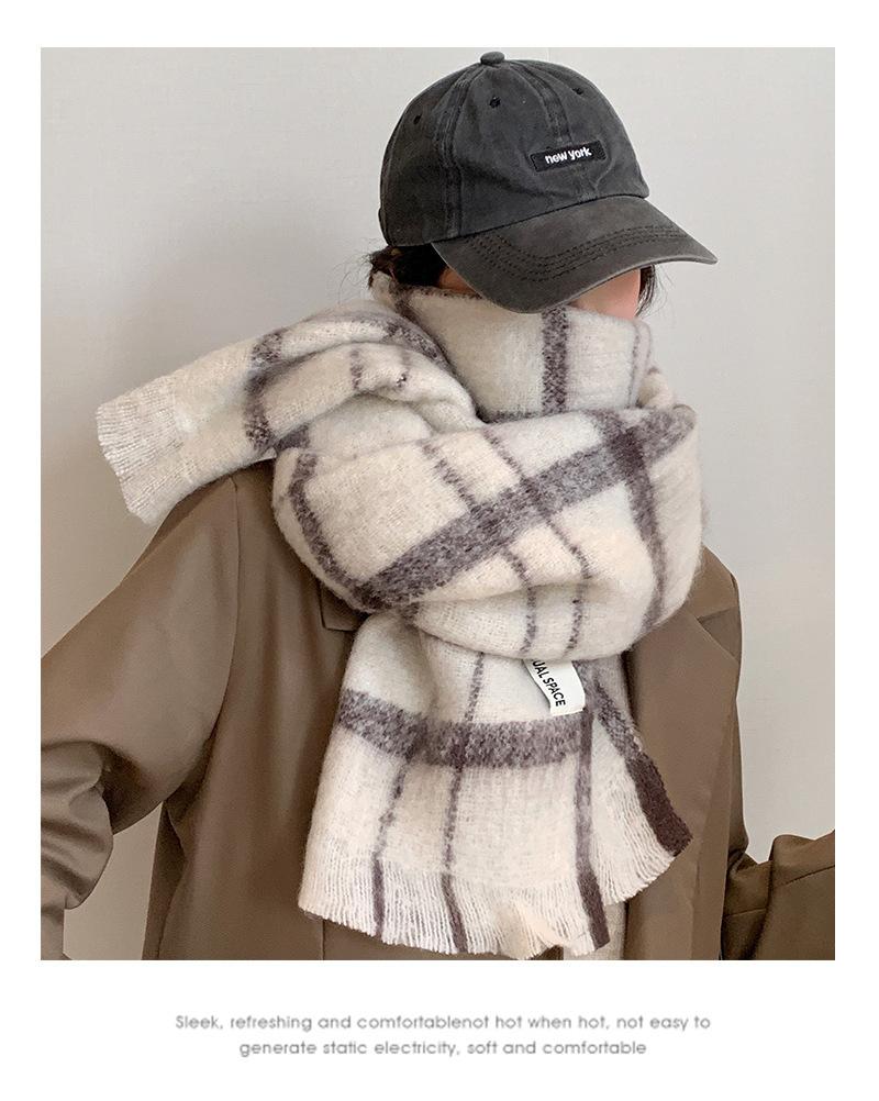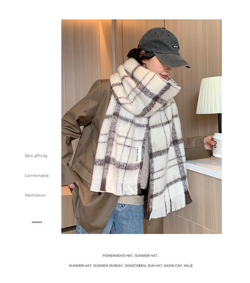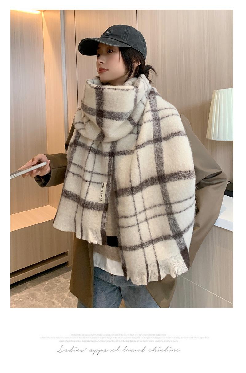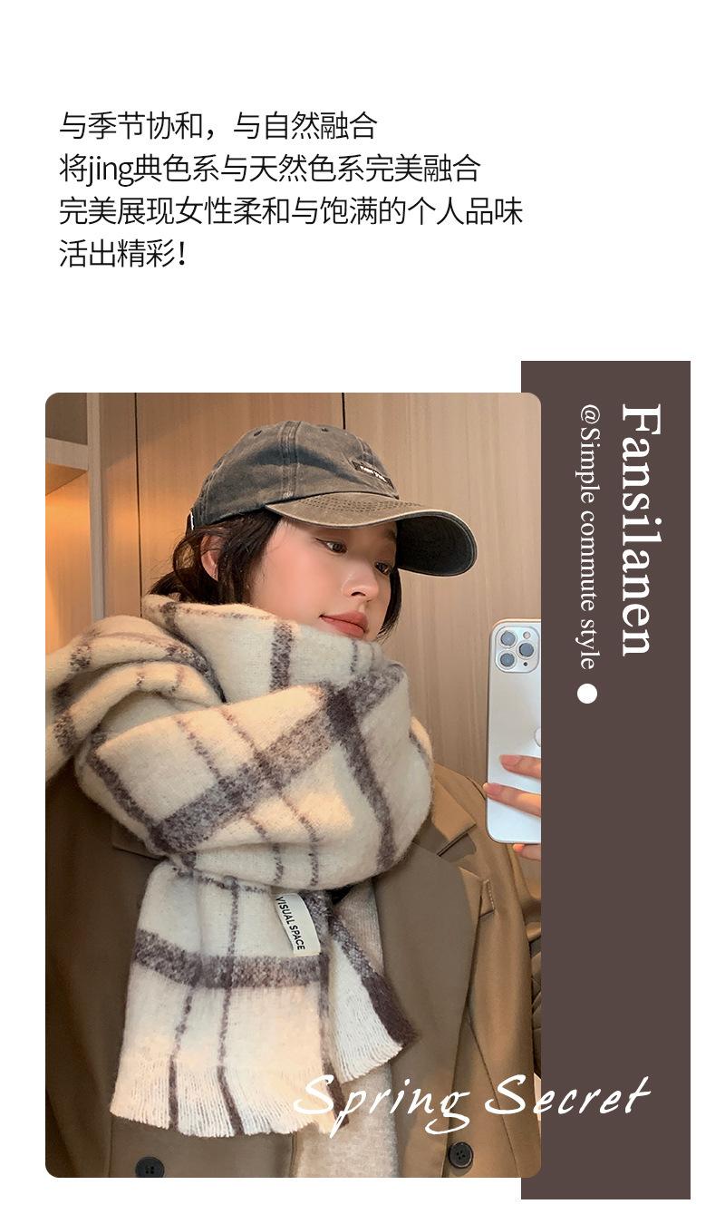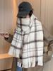 Invierno nuevo estilo de alta calidad versátil estilo coreano bufanda de cuadros con borlas cortas chal cálido grueso estilo estudiante pareja