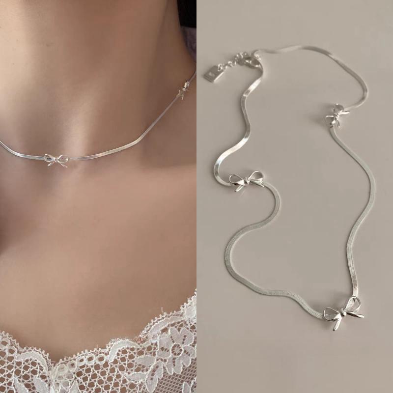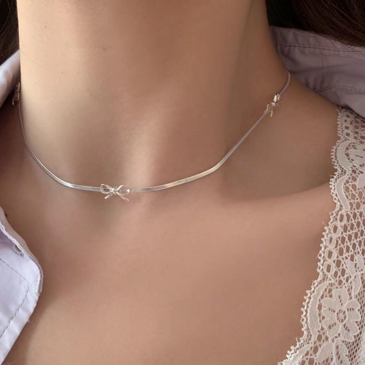 Collar de hueso de serpiente con lazo estilo coreano, cadena con temperamento de corazón femenino, diseño de nicho simple, estilo Pure Desire, cadena de clavícula.