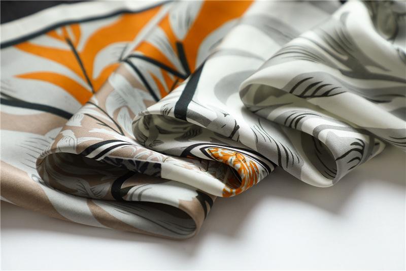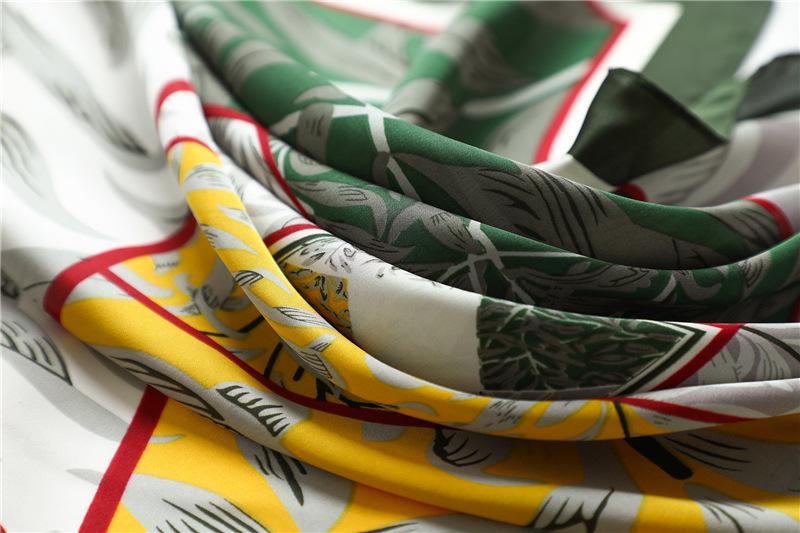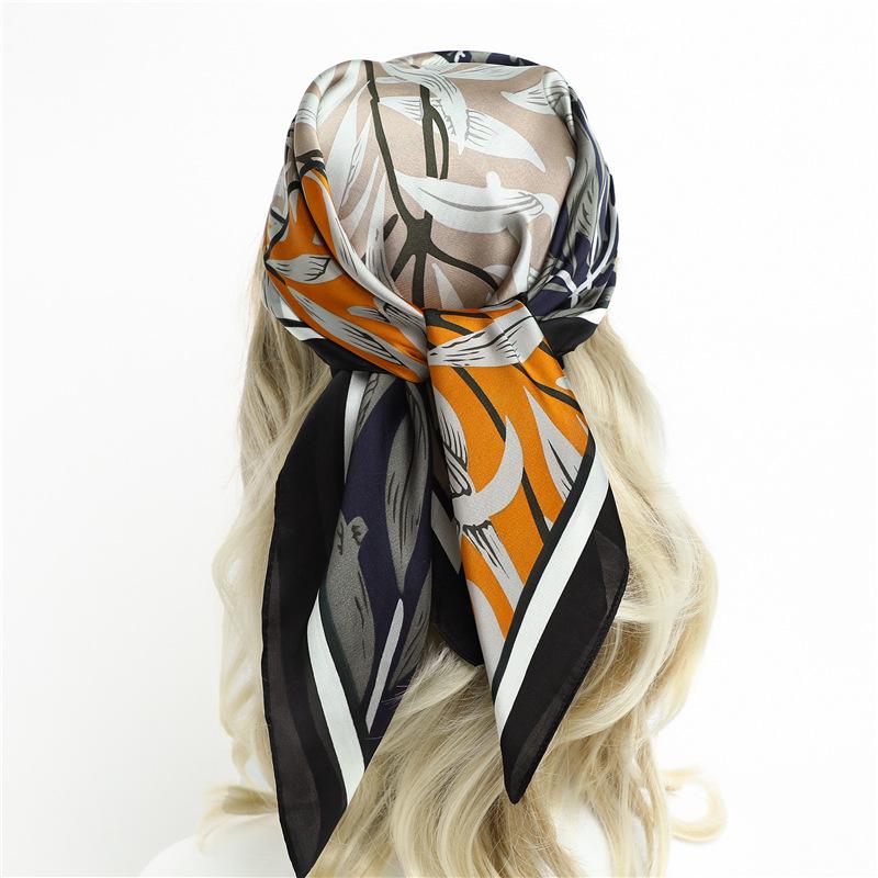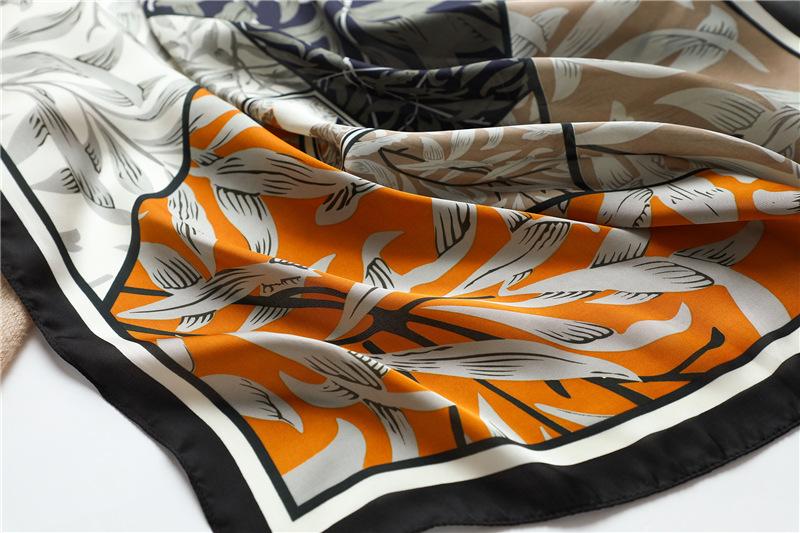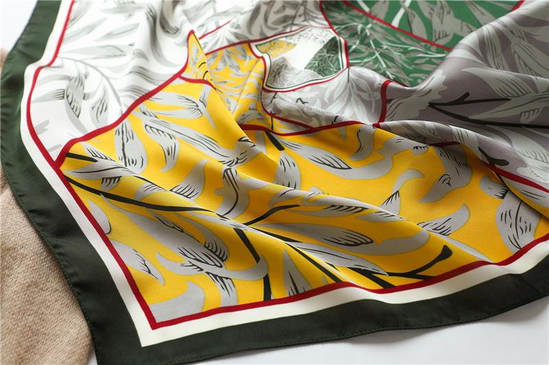 Bufanda de seda con combinación de colores geométricos bufanda decorativa de primavera y verano bufanda cuadrada de 70 cm bufanda de hojas de moda europea y americana bufanda para mujer chal