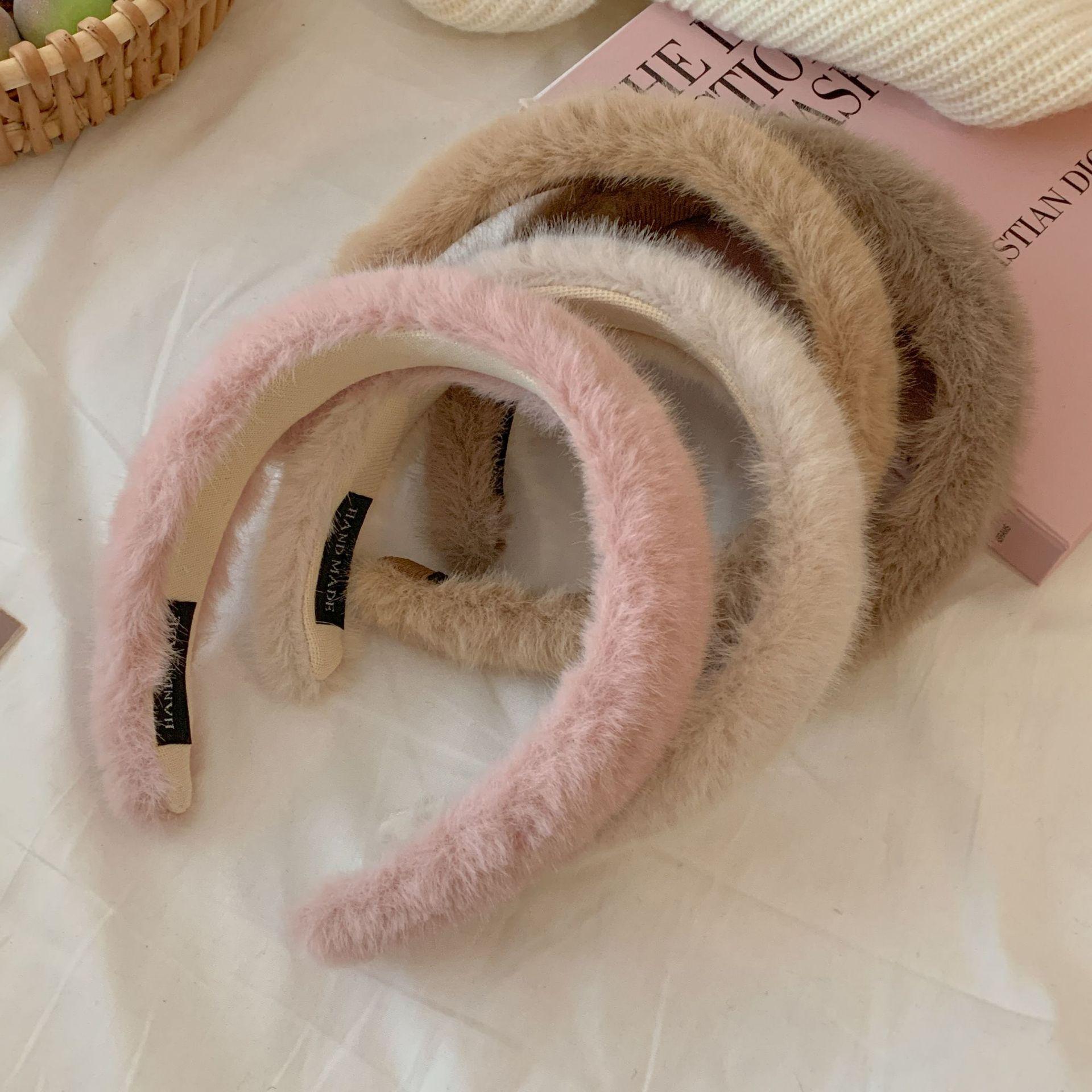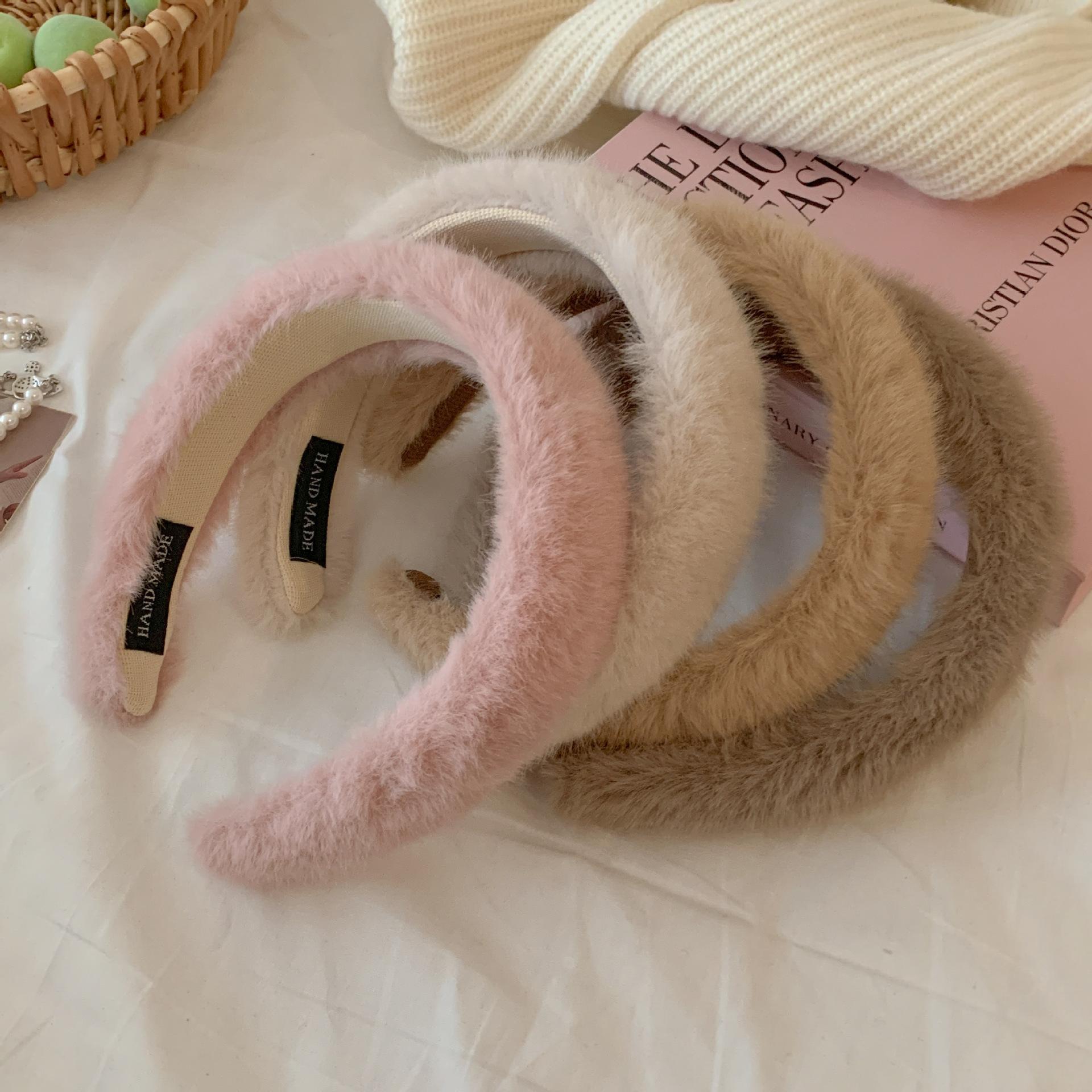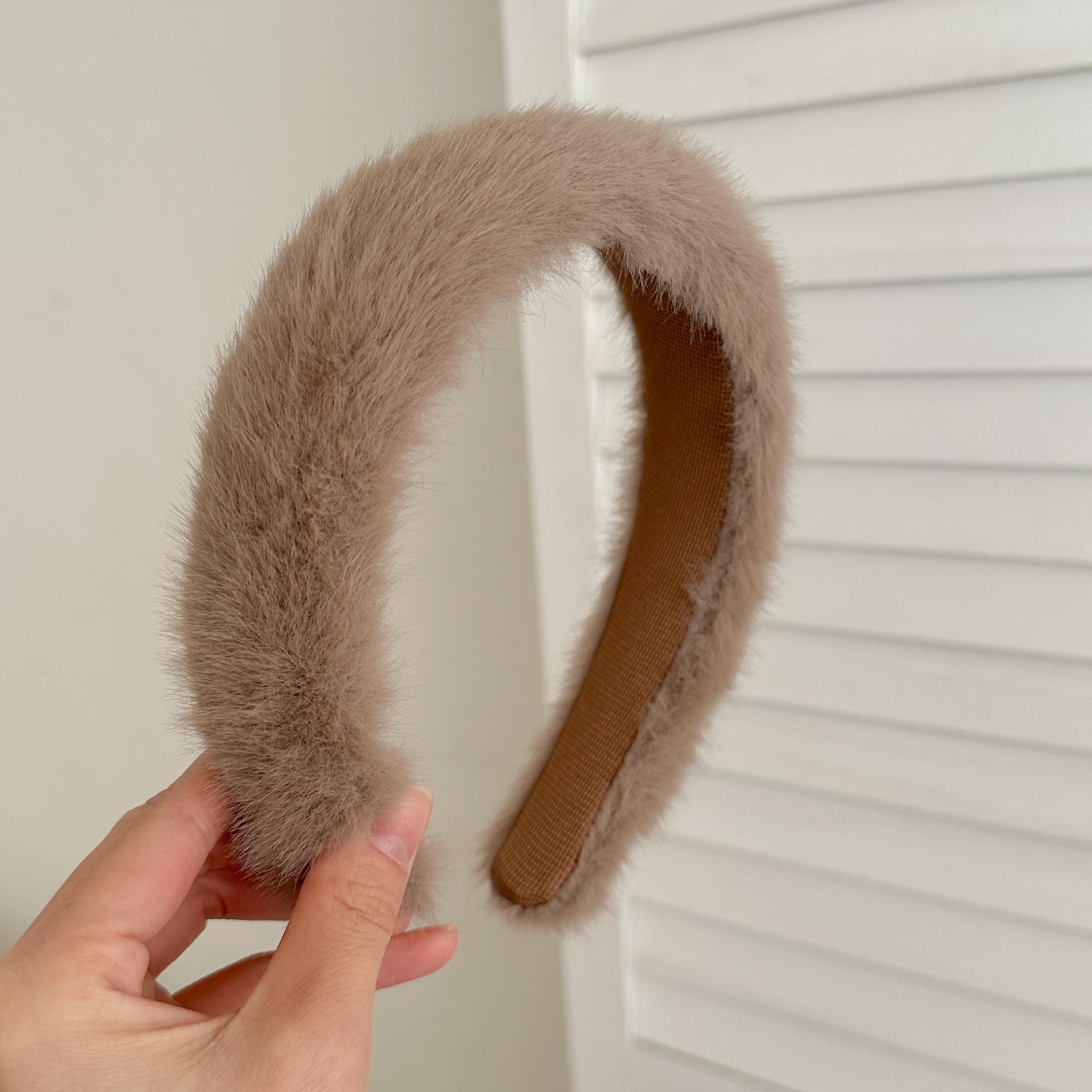 3665-1-milky white faux mink hair band, 3665-2-khaki faux mink hair band, 3665-3-camel faux mink hair band, 36...