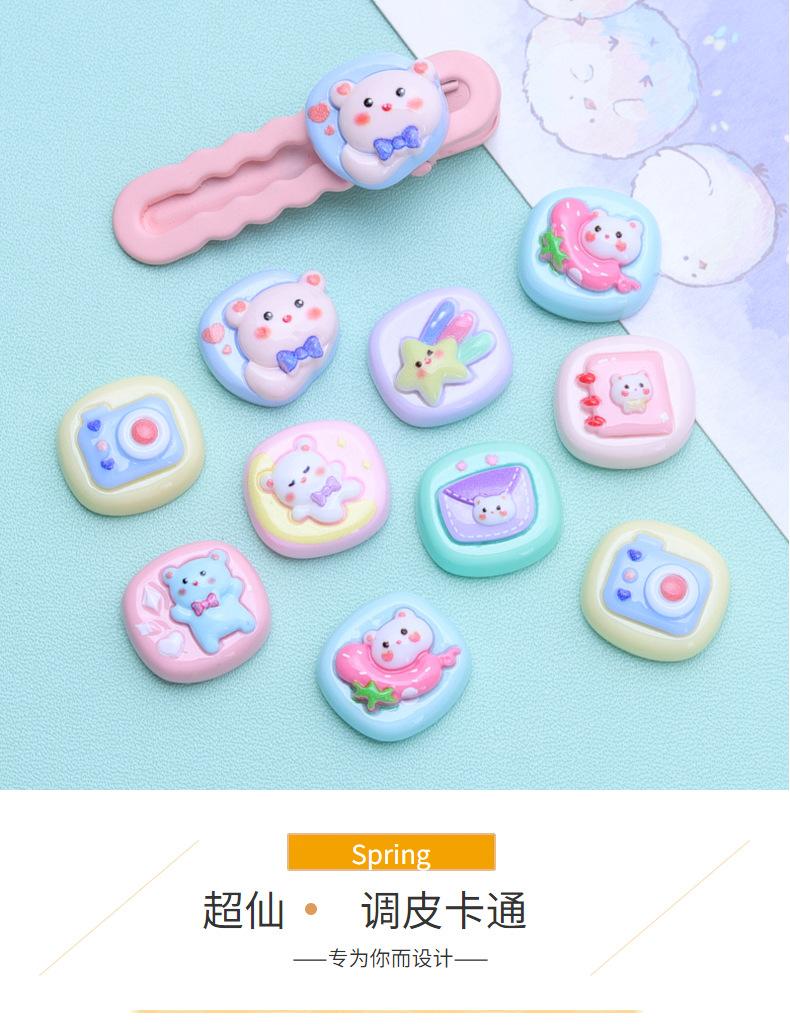 Panel trasero de color de contraste de dibujos animados, nuevos accesorios pequeños de bricolaje, accesorios de pegamento crema, accesorios de resina, hebilla de zapato creativa, material de horquilla