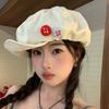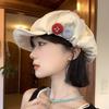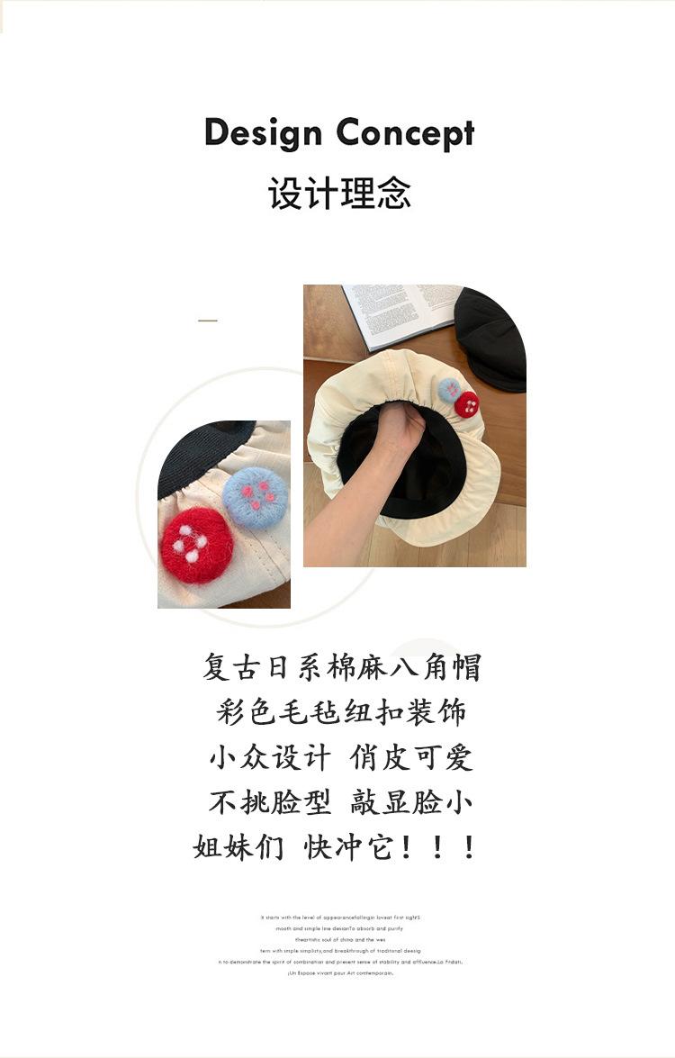 Sombrero Octagonal de Algodón y Lino Japonés Vintage Color Fieltro Botón Sombrero de Pintor Diseño Asimétrico Sombrero de Mujer Sombrero Bailey Trendy
