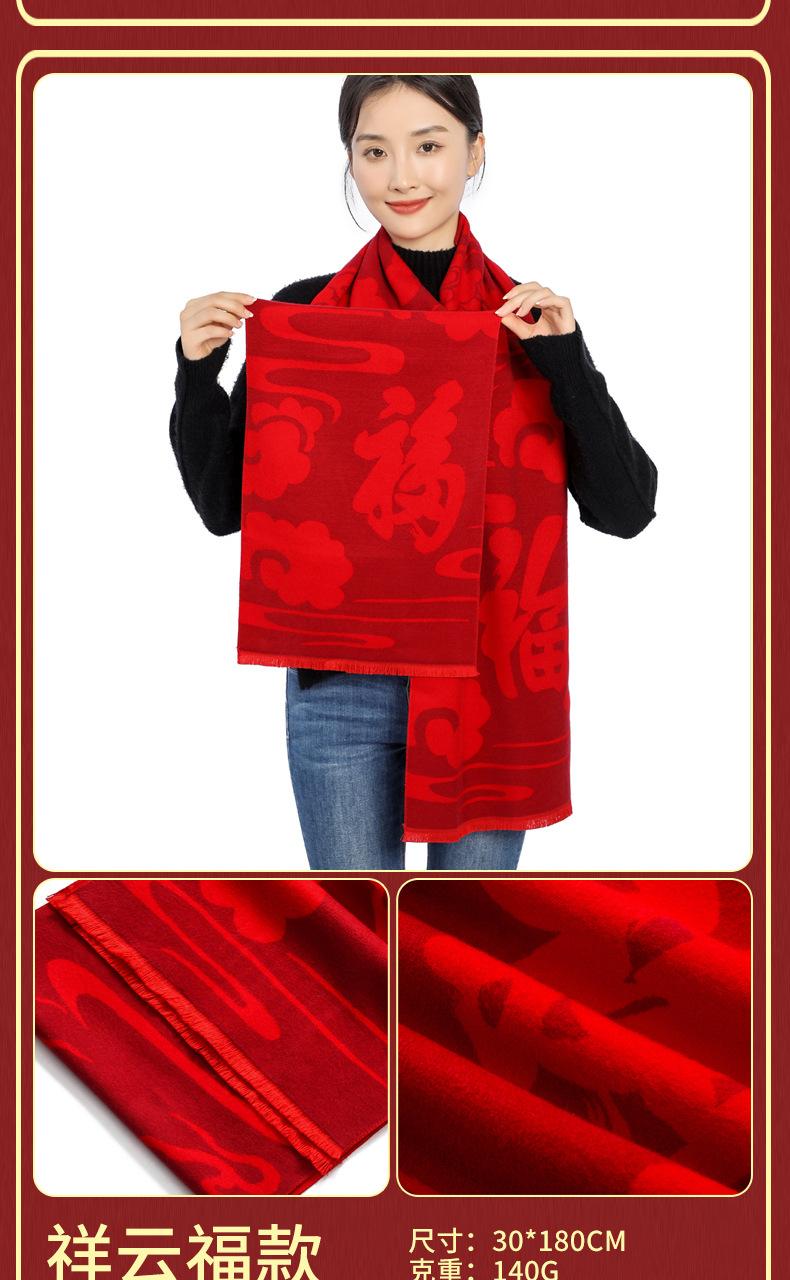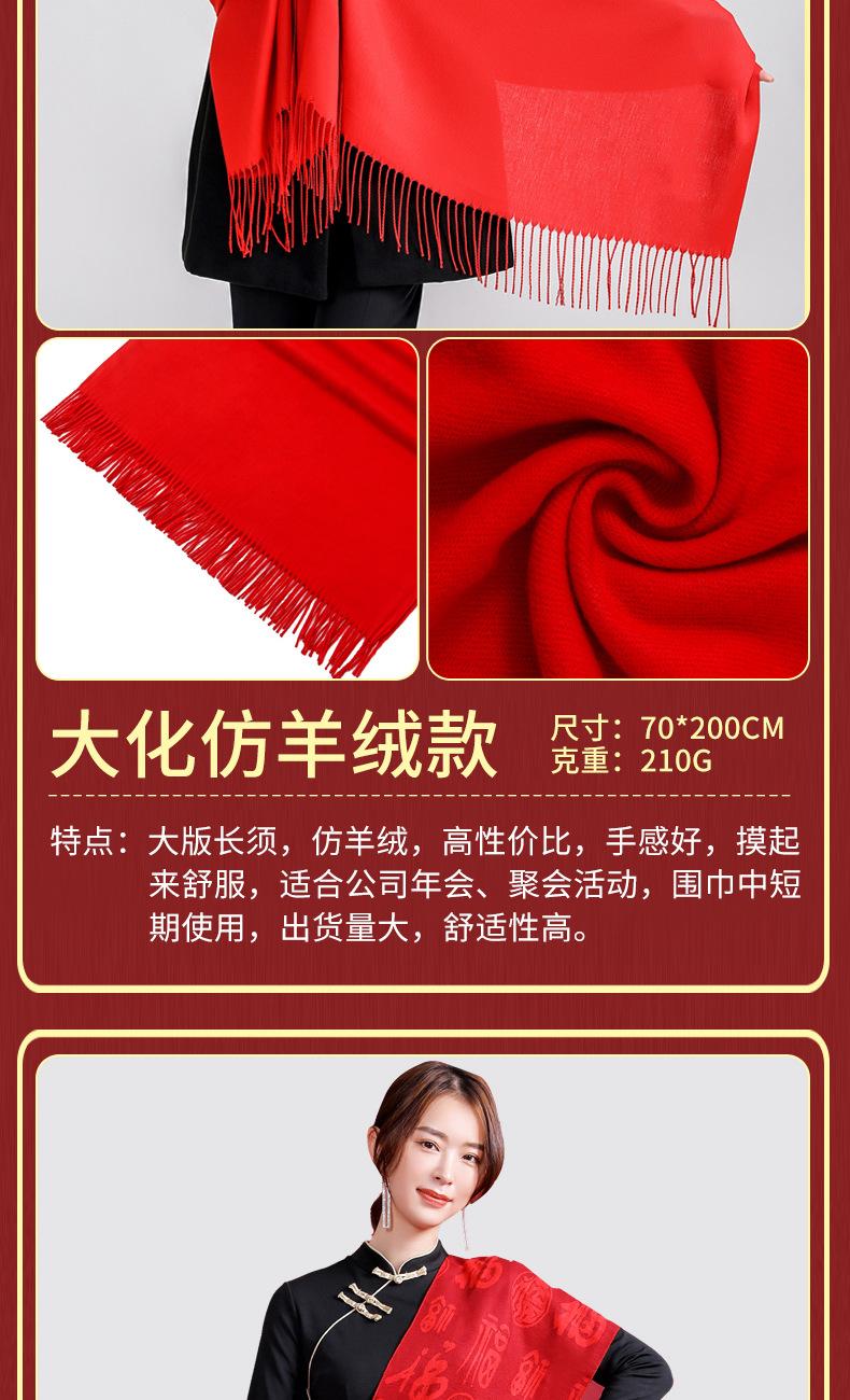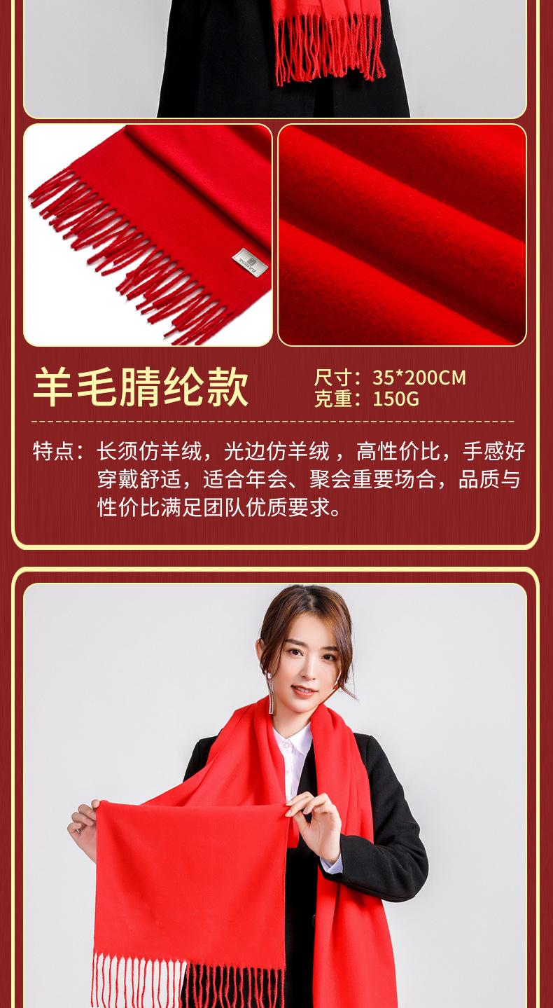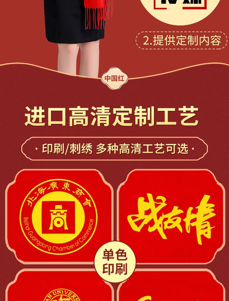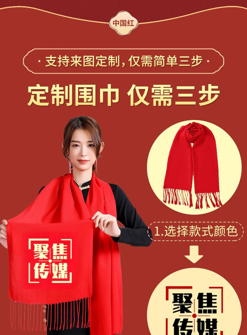 Bufanda Roja Roja Logotipo Impresión Bordado Fiesta de Apertura de Empresa Rojo Chino Bufanda de Cachemira