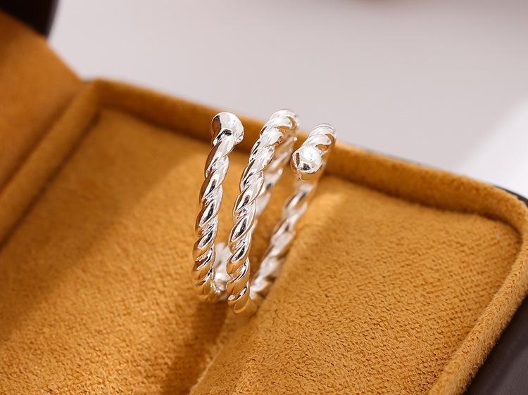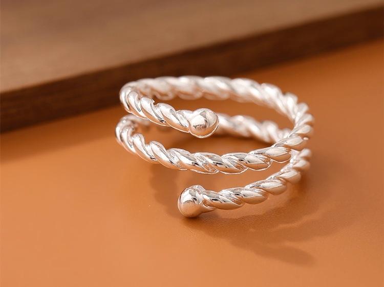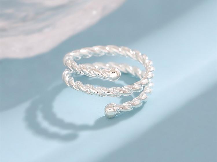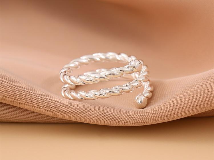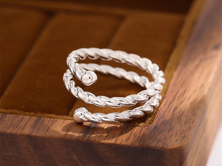 Anillo abierto de personalidad de plata lisa trenzado de tres capas simple y a la moda, joyería coreana