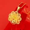 Colgante de pavo real con pantalla abierta bañado en latón y oro de 24 quilates para mujer, colgante de flor de oro de arena de Vietnam, joyería nupcial al por mayor