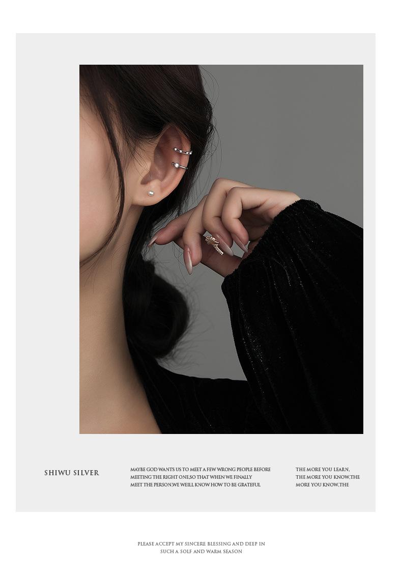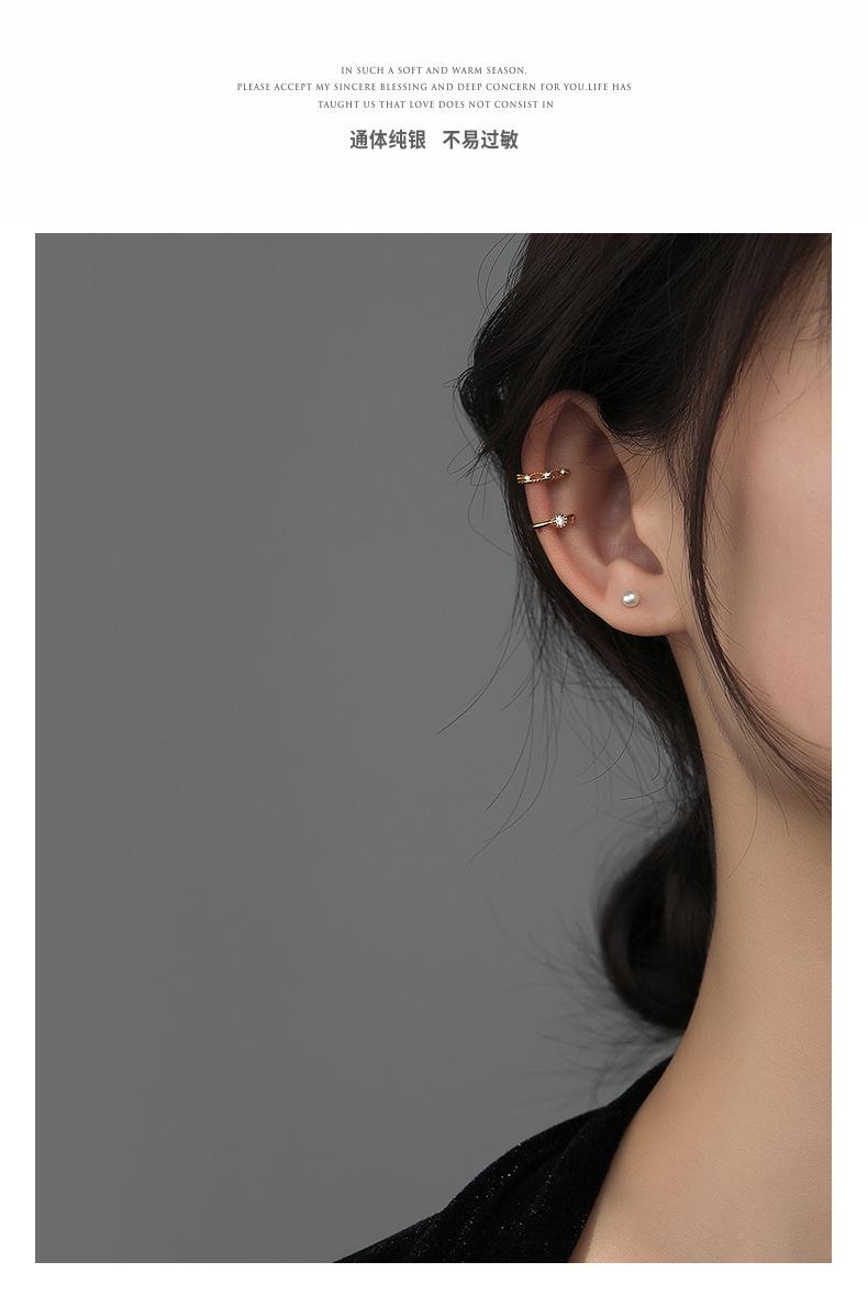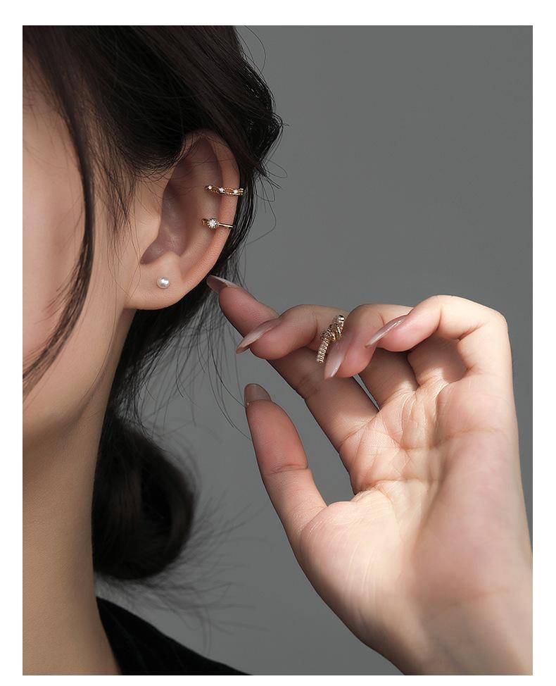 Clip de oreja de circón sin perforaciones, personalidad femenina de plata, temperamento, moda, clip de hueso de oreja simple, sensación femenina, estilo frío