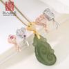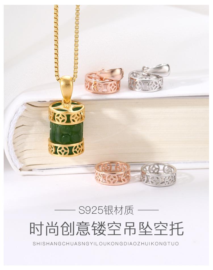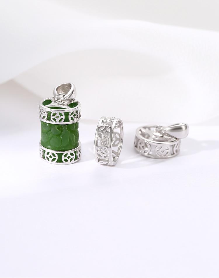 Colgante de plata esterlina S925 con soporte vacío para hombres y mujeres, hebilla de plata, joyería DIY, cuentas redondas de cera de abejas de jaspe, cuentas de barril, accesorios de hebilla colgante