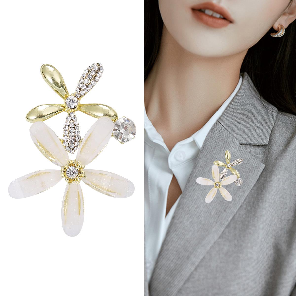 Broche de flor de diamante de moda simple de estilo coreano, pequeño y exquisito, con personalidad, para combinar con todo, elegante y a la moda.