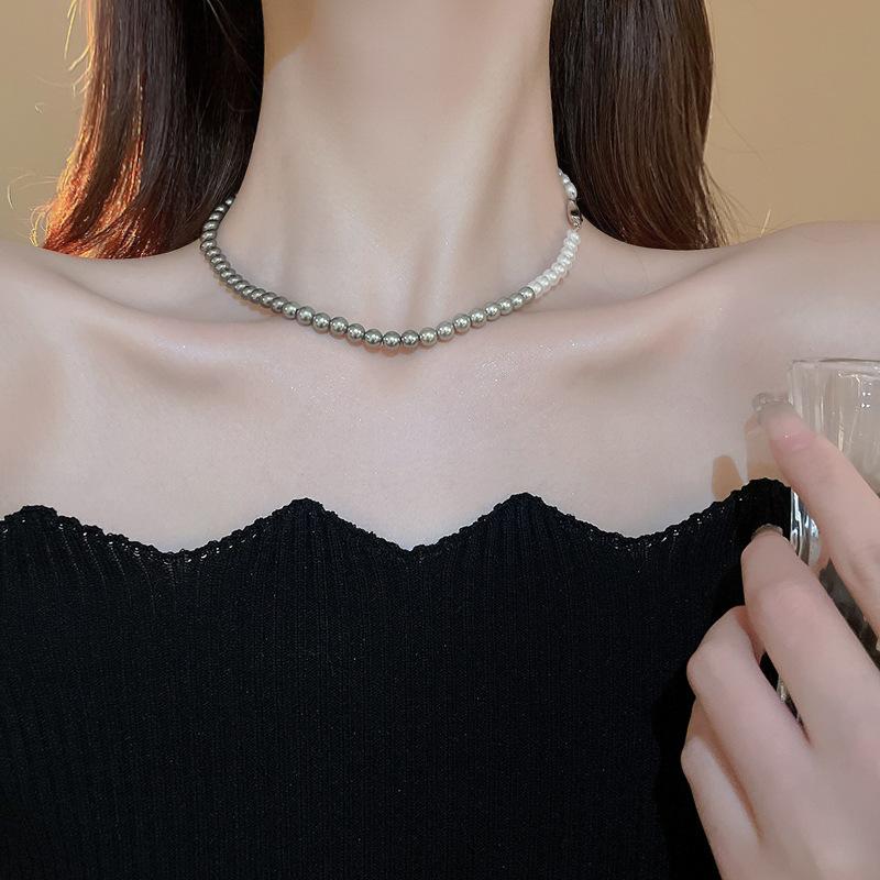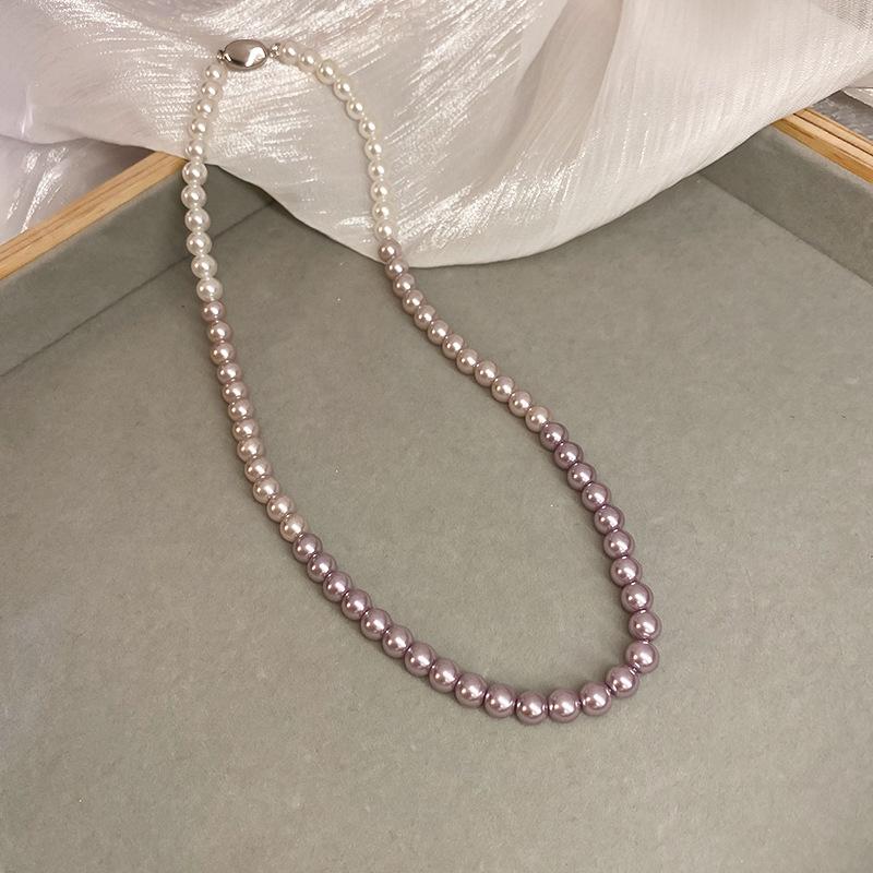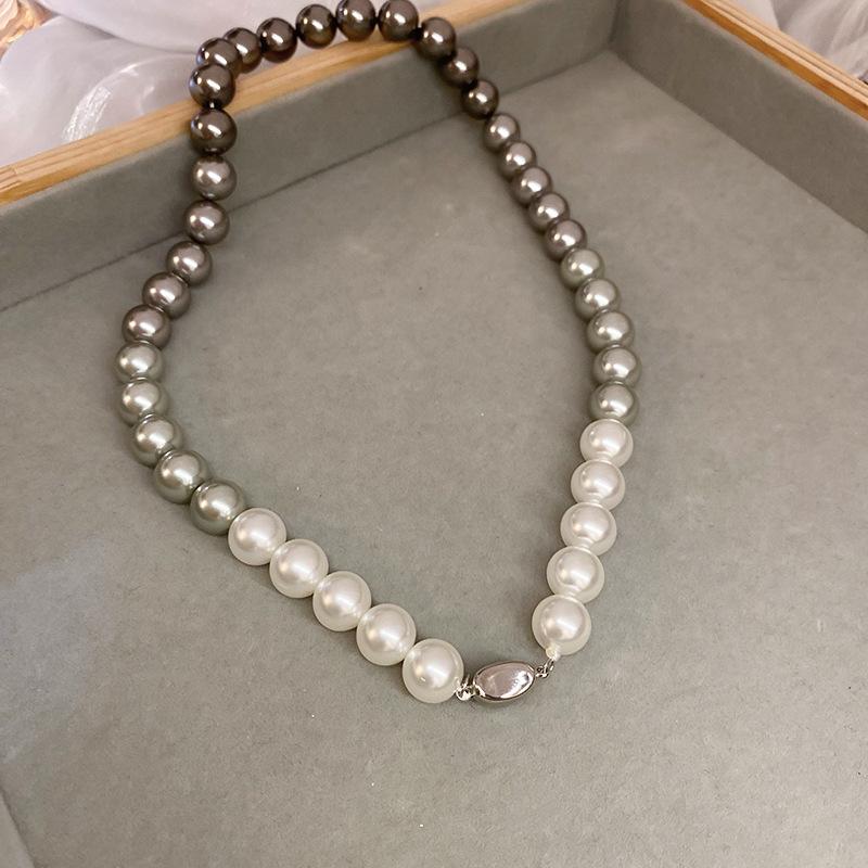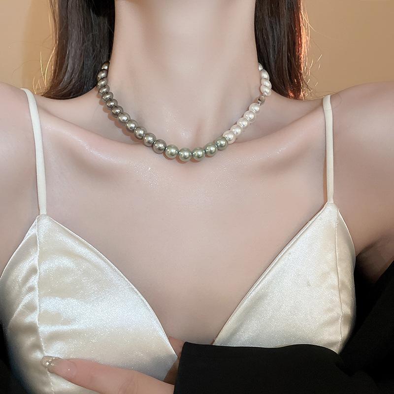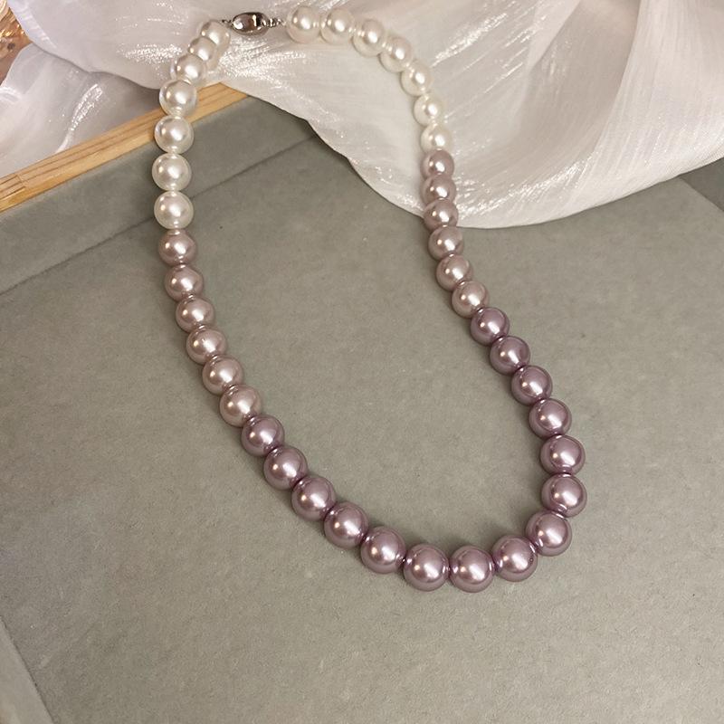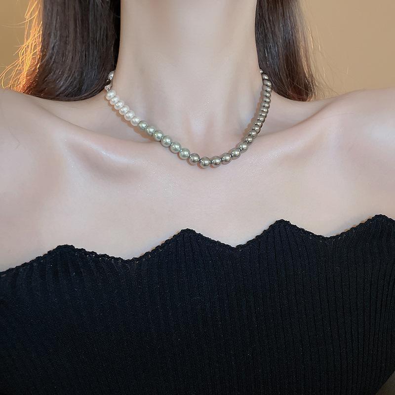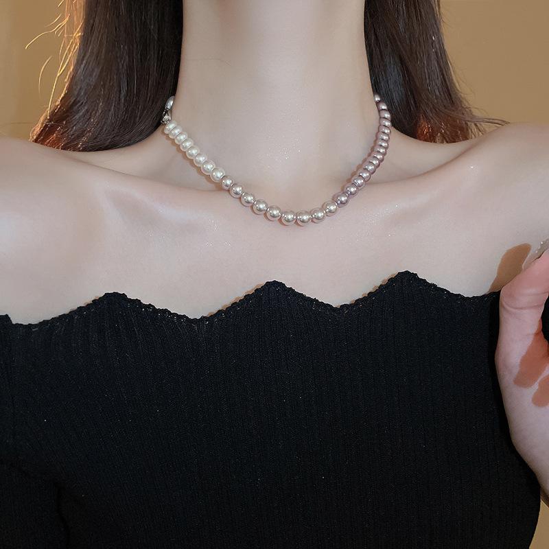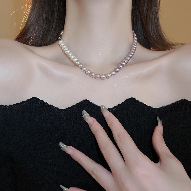 Collar Versátil de Perlas de Degradado de Color de Alta Gama Francés Temperamento de Lujo Ligero Cadena para Clavícula Diseño de Moda Nicho Joyería