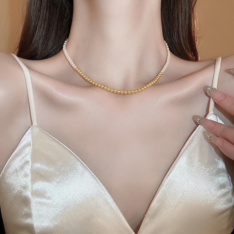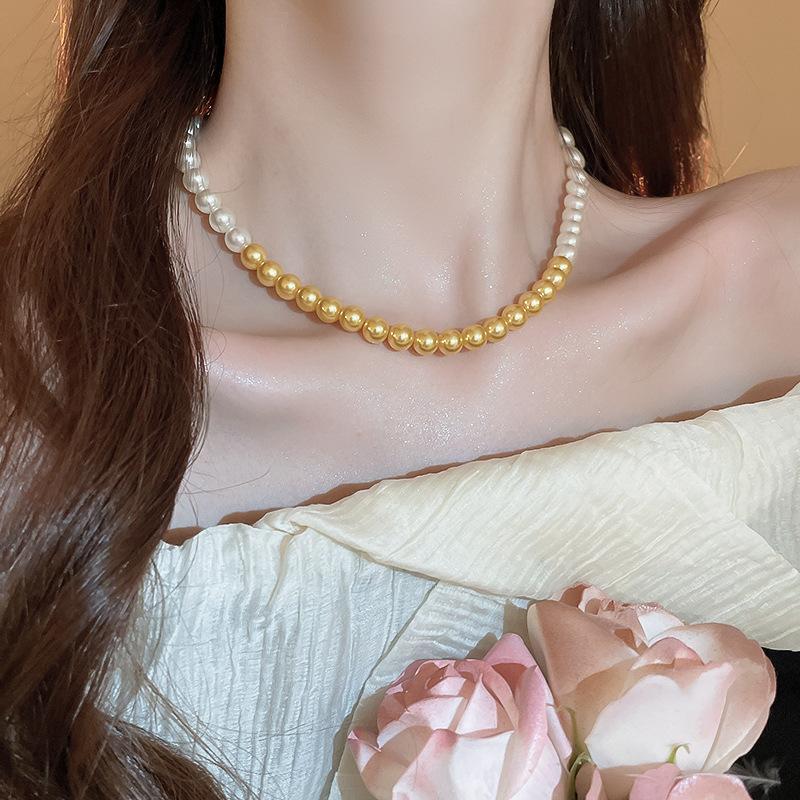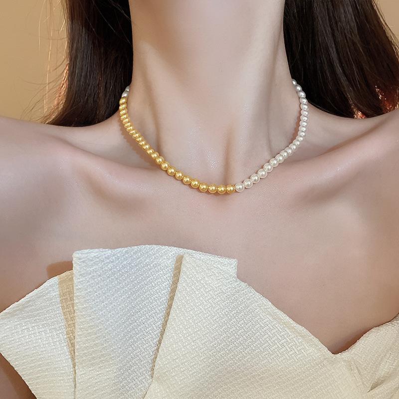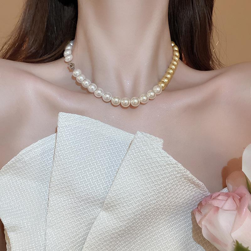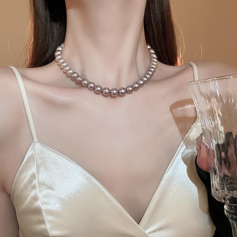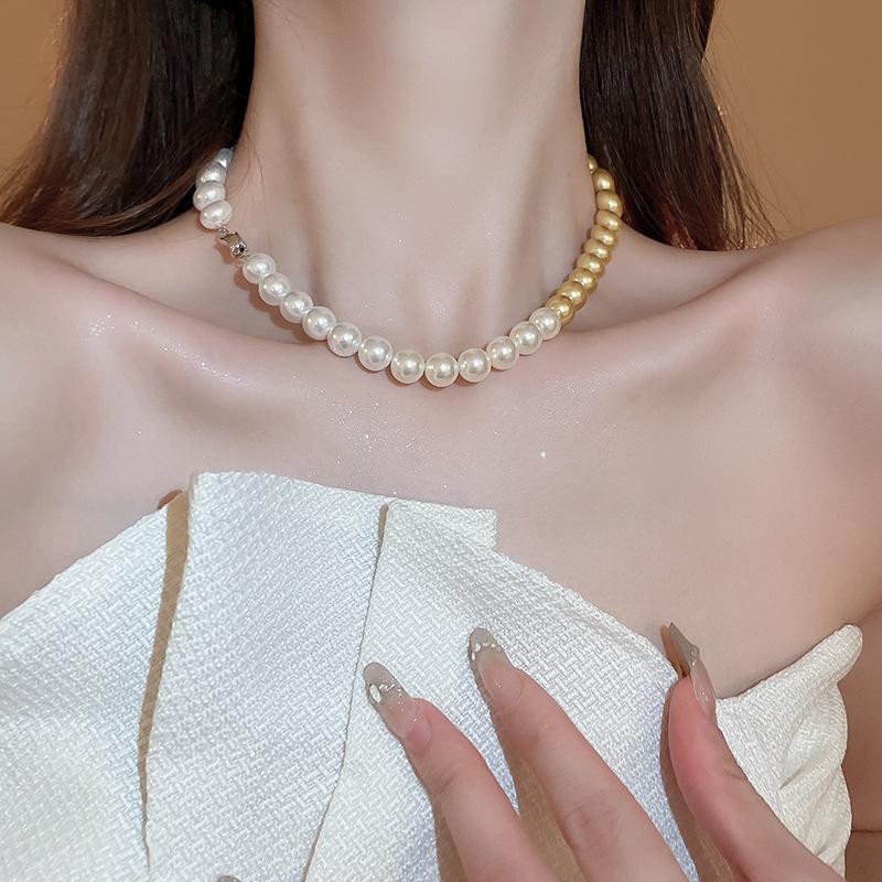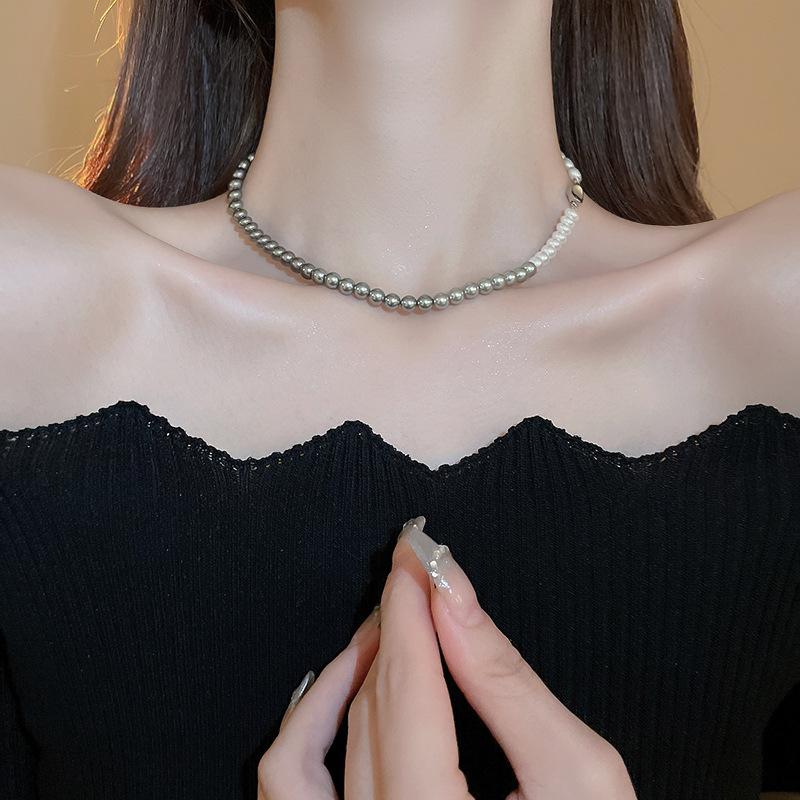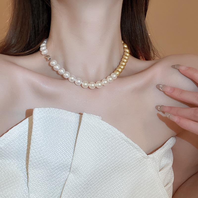 Collar Versátil de Perlas de Degradado de Color de Alta Gama Francés Temperamento de Lujo Ligero Cadena para Clavícula Diseño de Moda Nicho Joyería