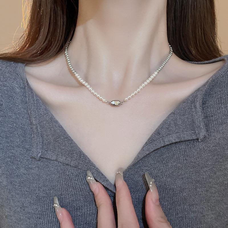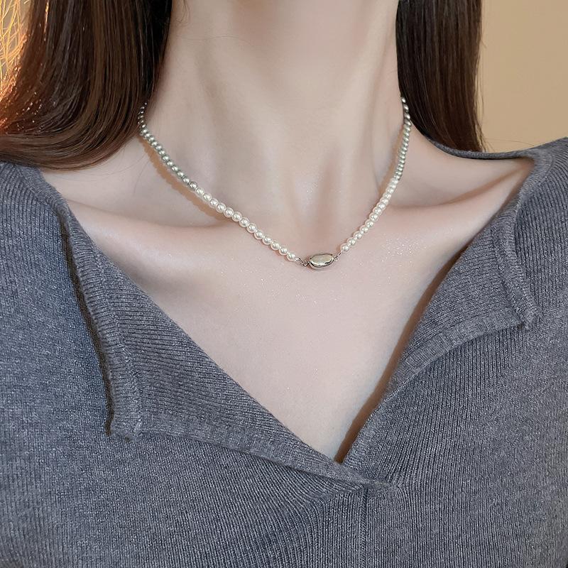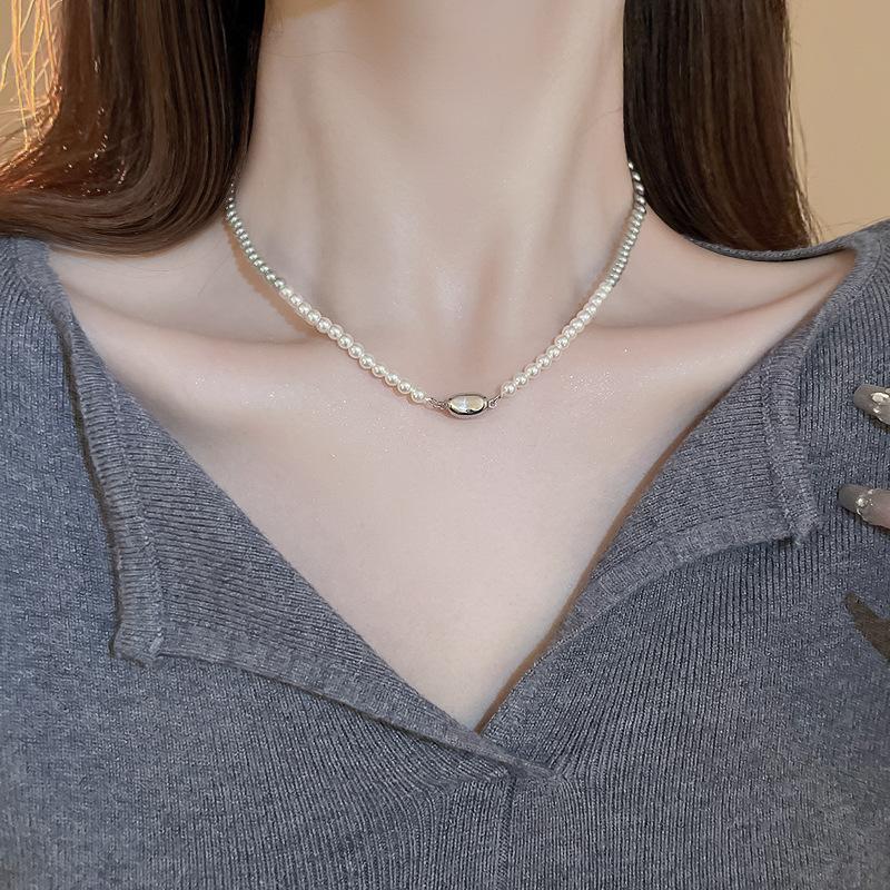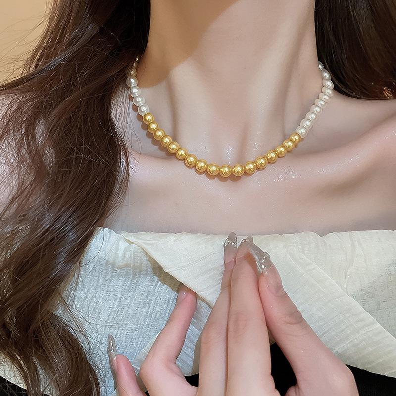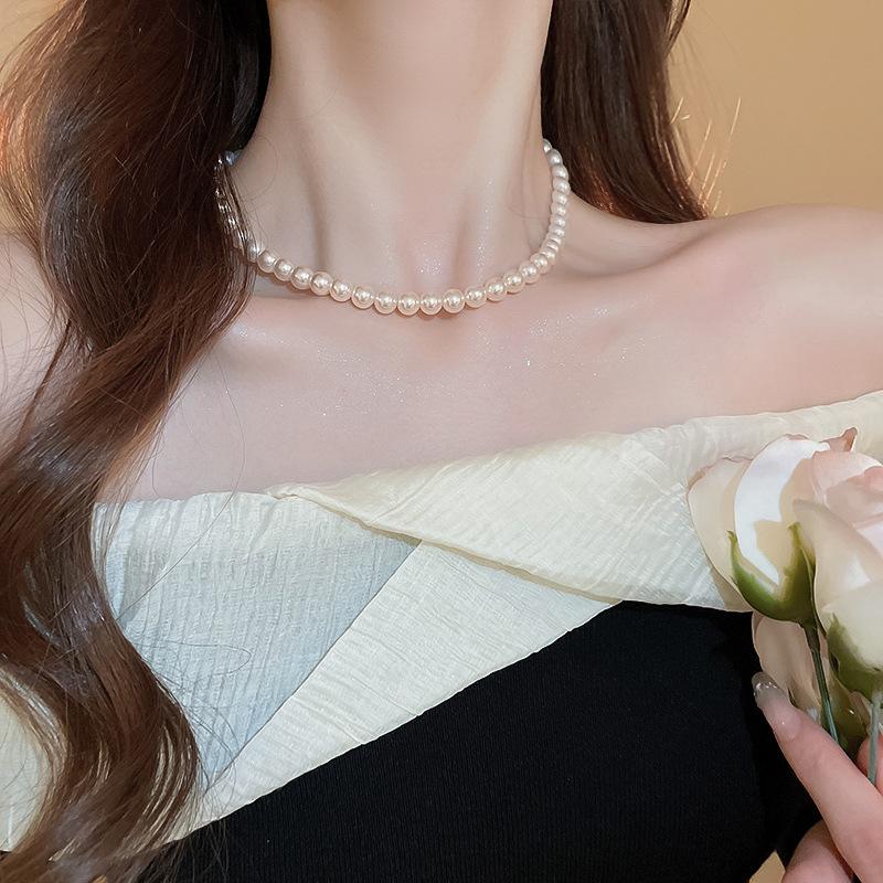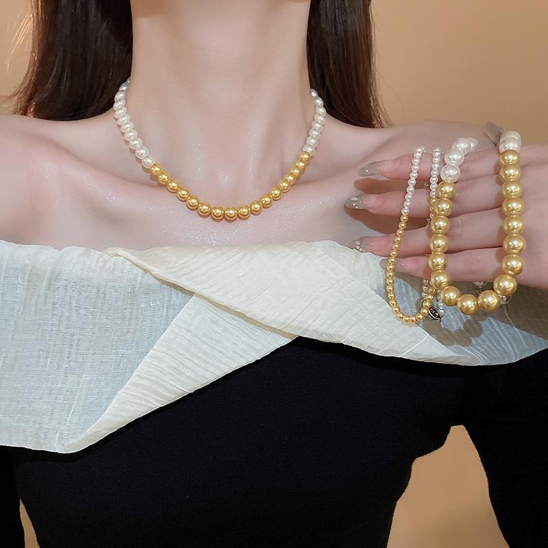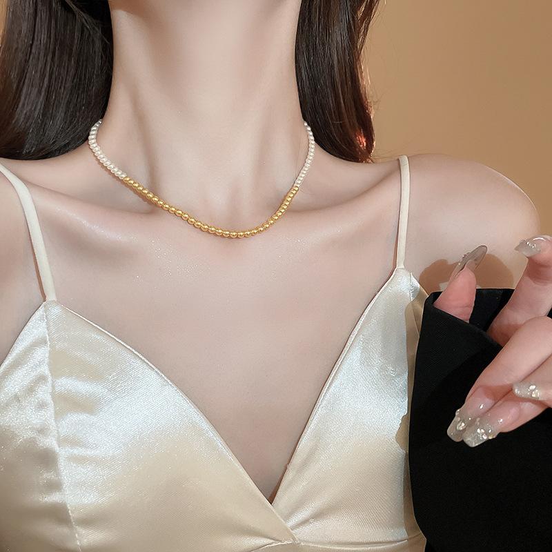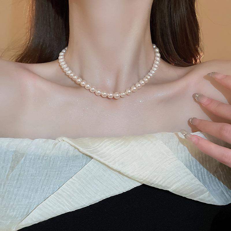 Collar Versátil de Perlas de Degradado de Color de Alta Gama Francés Temperamento de Lujo Ligero Cadena para Clavícula Diseño de Moda Nicho Joyería